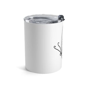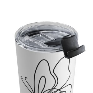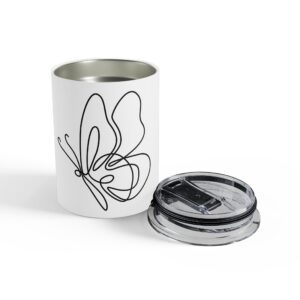 A sleek 10oz stainless steel tumbler finished with a minimalist, continuous-line butterfly illustration. Lightweight and compact, it slips into small bags and sits comfortably in hand for morning commutes or mindful pauses. The vacuum-insulated double-wall body keeps coffee warm or iced drinks cold, while the clear push-on lid with rubber gasket prevents spills during movement. Durable, dishwasher-safe construction and a BPA-free lid make it a practical everyday companion for slow sips, creative work sessions, or quiet outdoor breaks. Its clean design and rounded corners give it a modern, calming presence—great for someone who appreciates simple, artful details in daily objects.