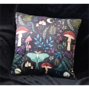 Add a touch of magic to your home with this beautiful Dark Forest Print Cushion. Featuring a rich woodland design filled with mushrooms, moonlit moths, leaves, and botanical elements, this cushion brings a mysterious forest-inspired aesthetic to your décor.