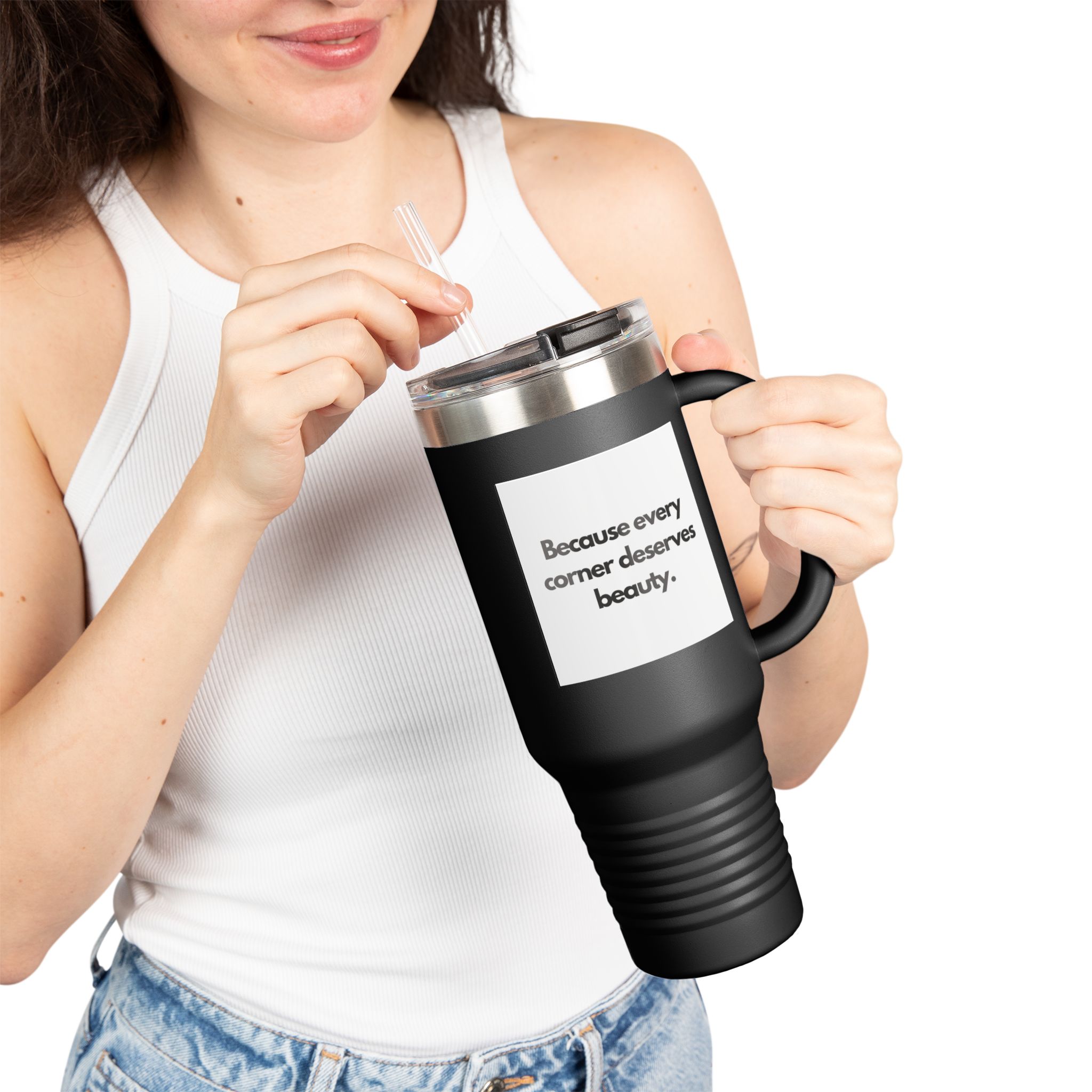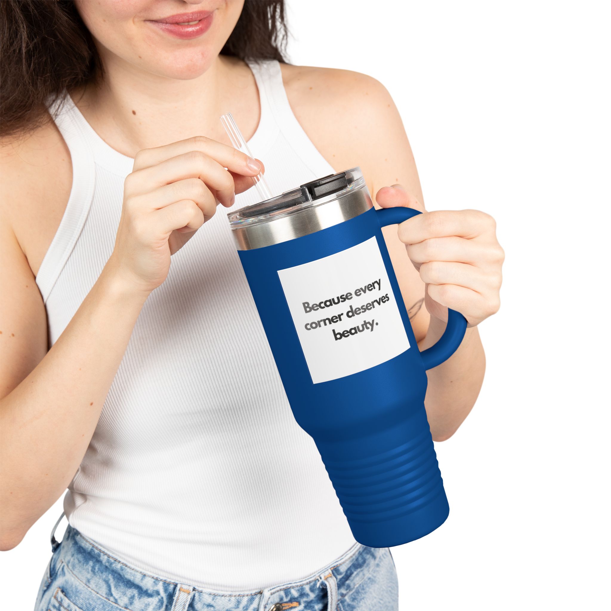 This 40oz insulated travel mug is built for long days, long drives, and slow mornings. The double-wall stainless steel keeps hot coffee steaming and iced drinks chilled for hours while the leak-proof push-on lid with latch and included straw make sipping on the move effortless. An ergonomic handle and large-capacity design mean you won’t be refilling constantly—perfect for road trips, work shifts, or weekend adventures. The powder-coated finish gives a clean, modern look and comes in eight color options. Durable, BPA-free construction and a rust-resistant body make it a reliable companion wherever your day takes you.