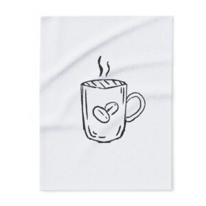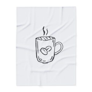 A cozy, cloud-soft fleece blanket featuring a simple hand-drawn steaming coffee mug. Lightweight yet plush, it wraps you in warmth during quiet mornings, late-night reading sessions, or while curled up with your favorite brew. The minimalist sketch sits on a clean white field, letting the design breathe and the texture of the fleece take center stage. Durable hemmed edges and vibrant one-sided printing keep the illustration crisp wash after wash. Available in three sizes, this blanket becomes the go-to layer for slow mornings, coffee breaks on the couch, and gentle, peaceful moments at home.