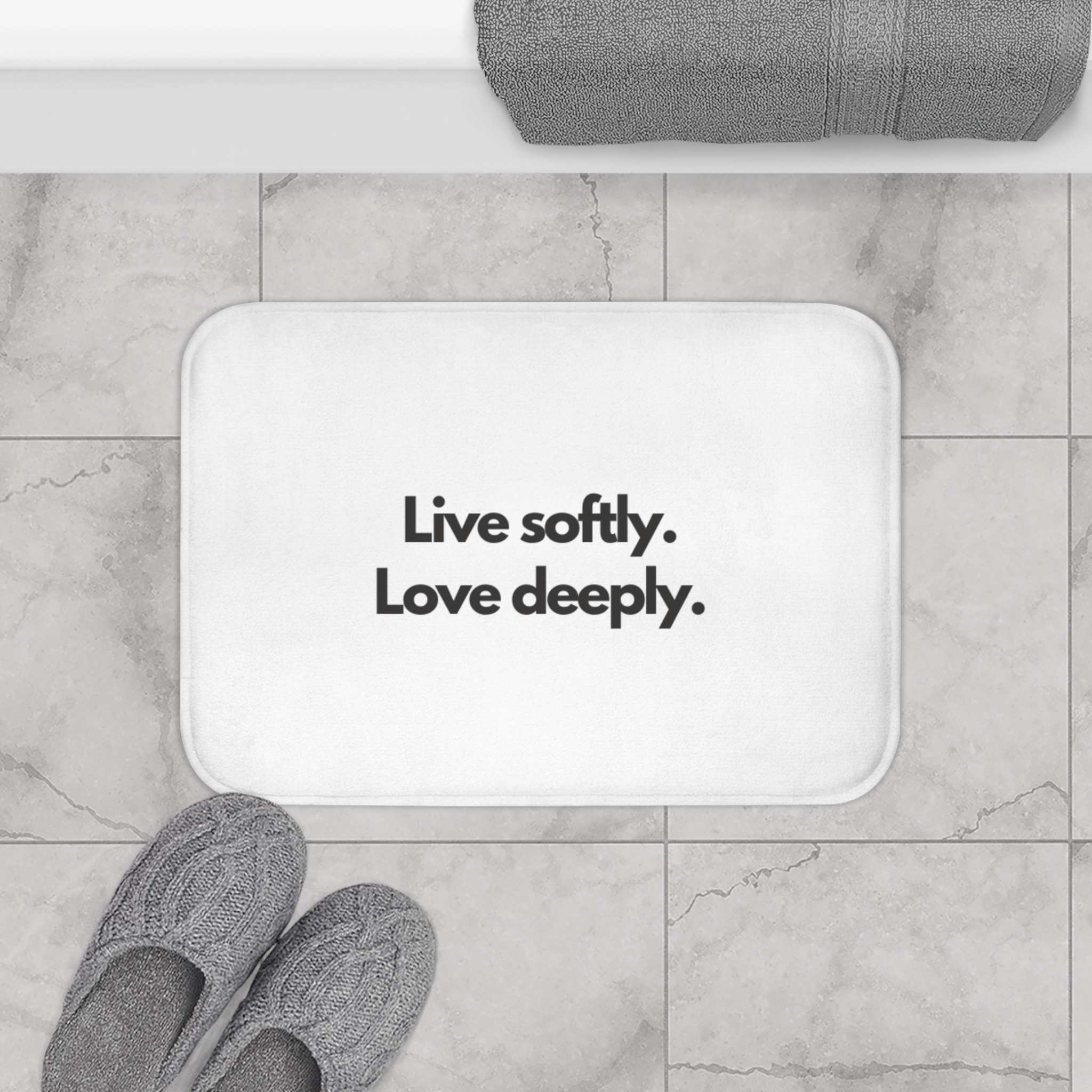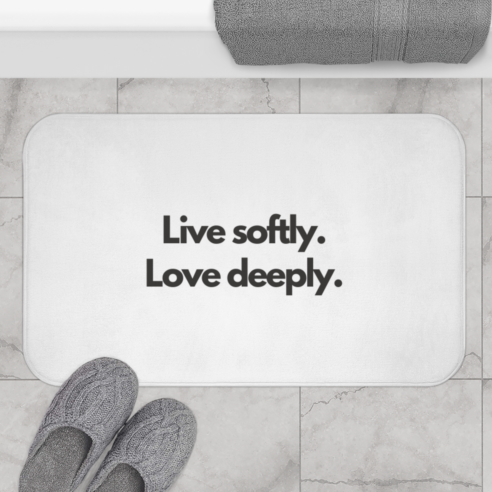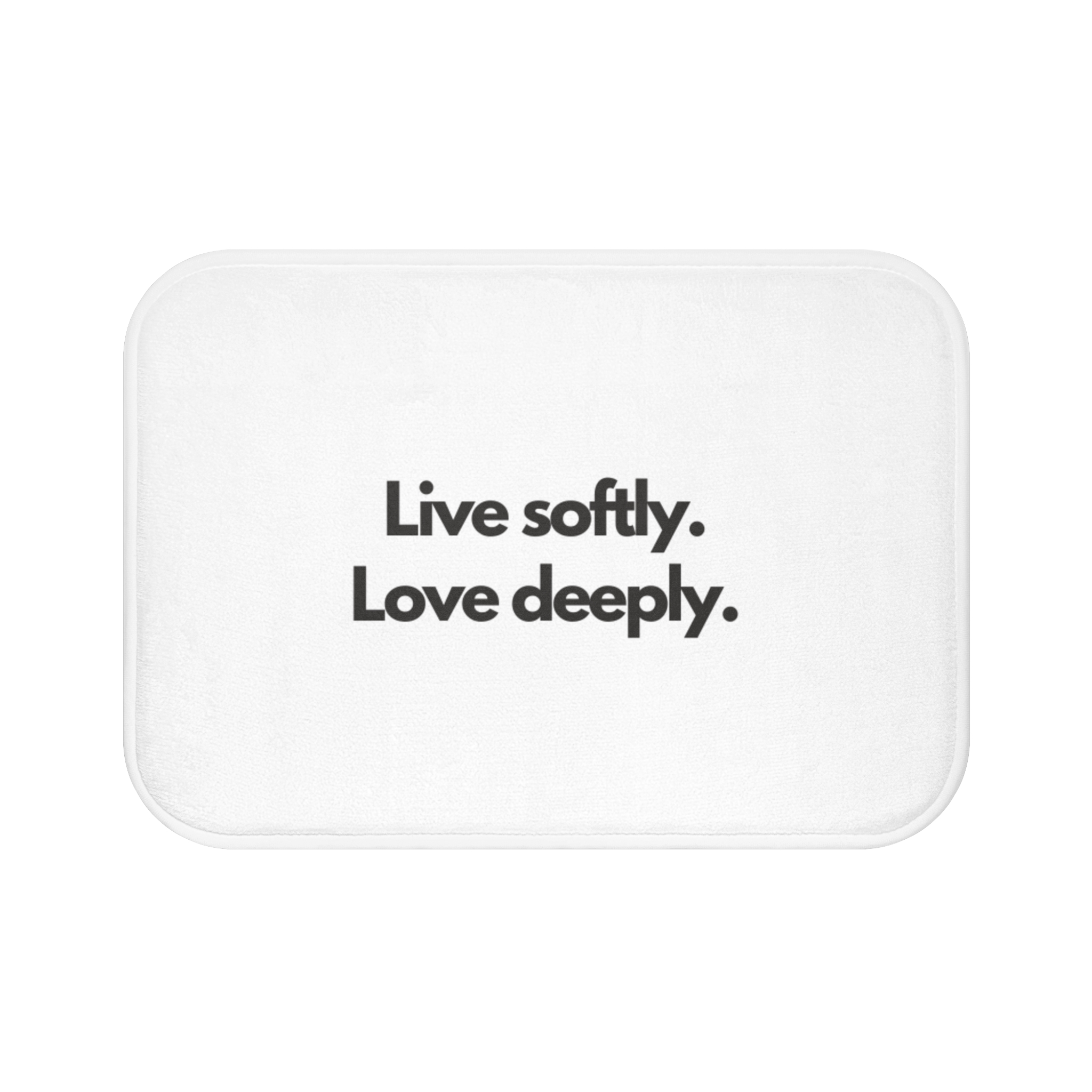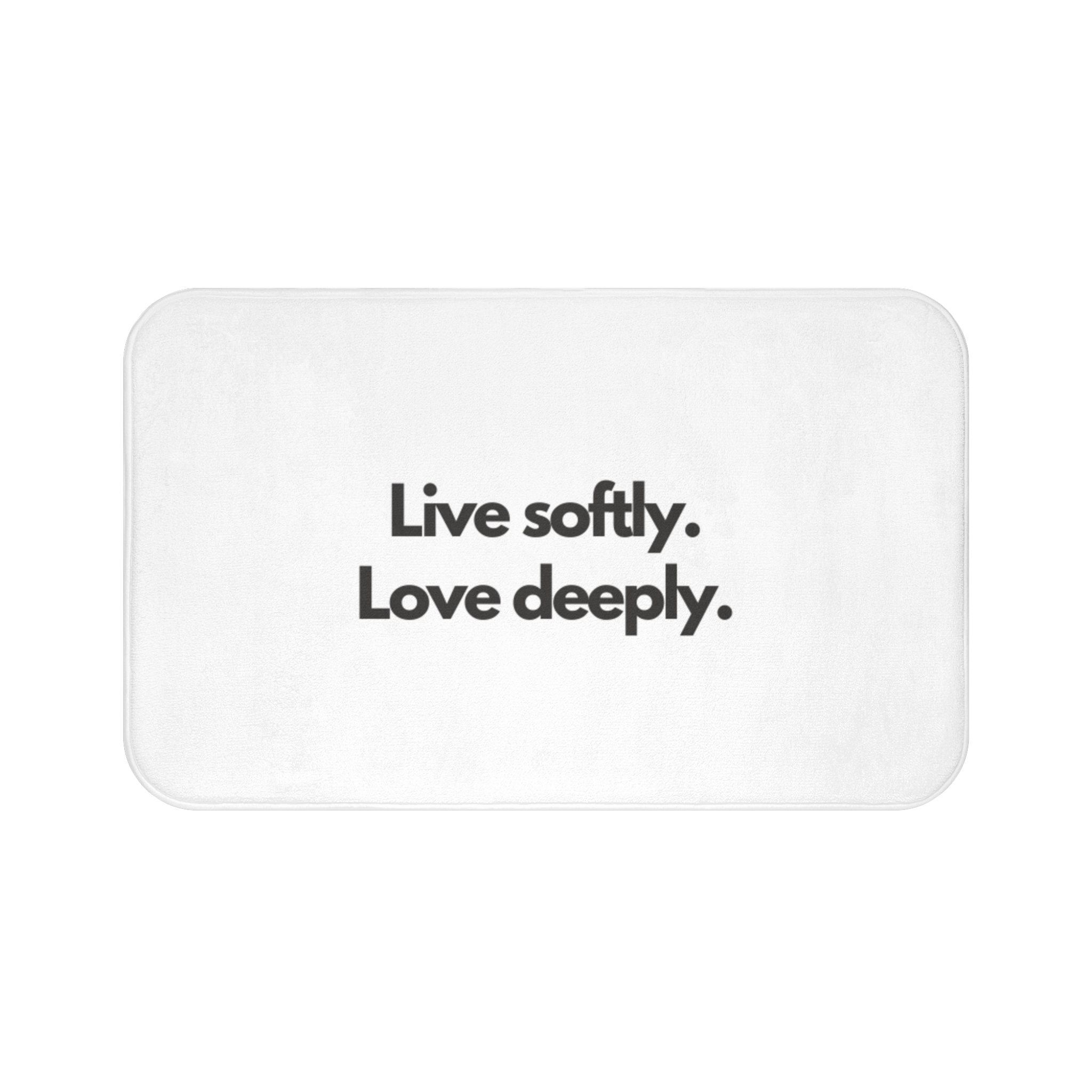 Bath Mat — “Live softly. Love deeply.” Minimalist Inspirational Bathroom Mat