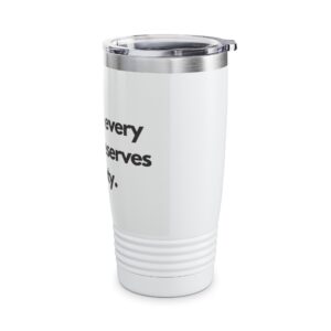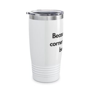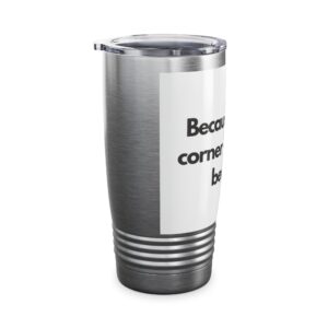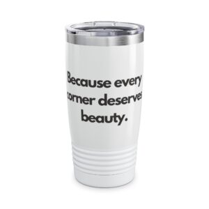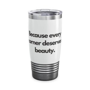 This 20oz ringneck tumbler keeps mornings calm and drinks company. Its double-wall stainless steel construction holds coffee warm through early errands and keeps iced drinks cold during long skate sessions. The narrow mouth and clear push-on lid make sipping easy and spill-resistant while the ribbed base gives a confident grip when you’re juggling bags, a phone, or a map. Glossy, vibrant prints sit on a smooth varnished finish that reads bold and clean — a quiet statement that sits well on a kitchen counter or a cluttered studio desk. Hand wash recommended to preserve color and insulation performance.