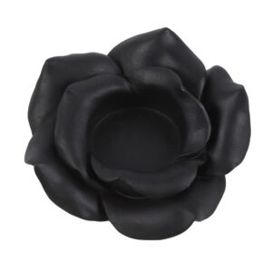 Crafted from durable resin, the intricate rose petals surround a space designed to hold a standard tealight candle, allowing the soft glow of candlelight to highlight the delicate details of the design. The deep black finish gives it a sophisticated look that fits perfectly with gothic, vintage, or romantic home décor themes.