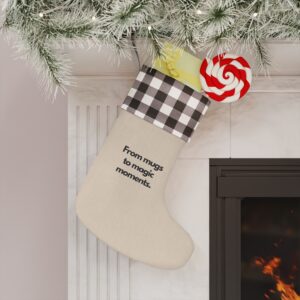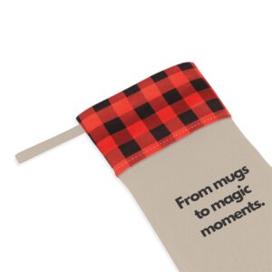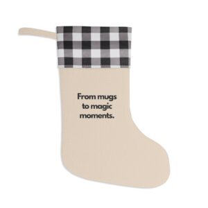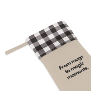 This linen Christmas stocking carries a warm, lived-in charm — soft beige linen body paired with a bold buffalo-plaid cuff for a cozy, vintage holiday look. Lightweight but sturdy, the stocking holds a generous amount of treats and keeps its shape thanks to the durable polyester cuff. A stitched hanging loop makes it easy to display on a mantel or peg, while the one-sided print offers a subtle, modern message that blends with farmhouse and rustic decor. Choose red/black or white/black cuff to match your seasonal palette and create a welcoming, nostalgic atmosphere on Christmas morning.