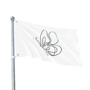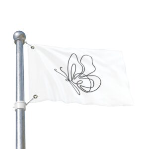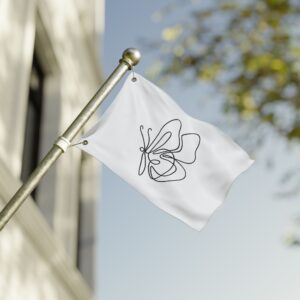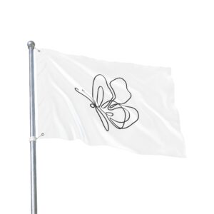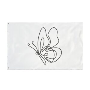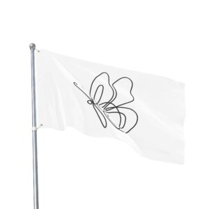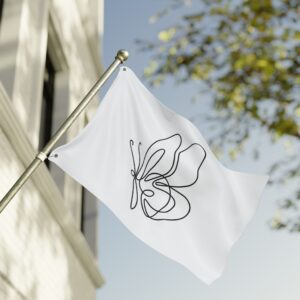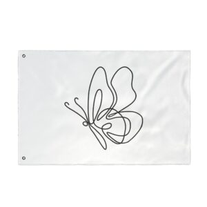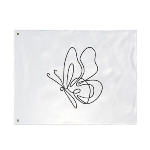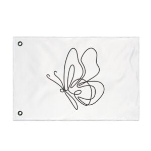 A breezy, minimalist flag that speaks in quiet lines. The single-line butterfly floats across a clean white field, its graceful loops catching sunlight and breeze. Lightweight and double-sided, it moves easily on a porch, balcony, or garden stake — a subtle nod to calm mornings, slow afternoons, and moments when you want your space to feel gentle and intentionally curated. It pairs with cottage windows, studio doors, and outdoor nooks where simplicity and soft movement matter. Bring a little whimsical motion to a reading corner, a plant-filled patio, or a maker’s workspace; the design reads from both sides so the delicate outline never gets lost as it turns.