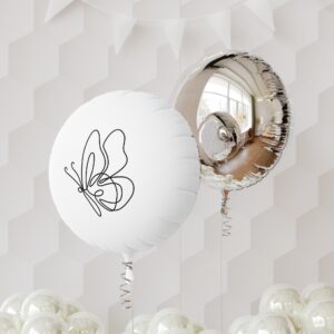 A graceful mylar balloon that floats like a small celebration. The minimalist continuous-line butterfly at the center feels delicate and modern against a clean white-silver field. It brings a quiet, uplifting moment to gatherings — imagine it bobbing above a table at a baby shower, drifting by a patio light at a garden party, or tied to a bouquet for someone who loves simple, artful details. The waterproof, high-resolution coating keeps that drawn line crisp outdoors; the self-sealing, helium-ready valve and reusable construction mean the same balloon can return to future moments with you. Lightweight and understated, it reads as thoughtful décor for those who prefer subtle style to loud statements.