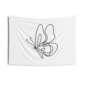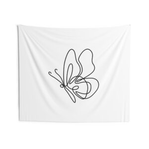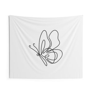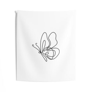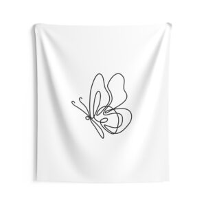 A soft, modern wall tapestry that brings quiet, artistic charm to any room. A single continuous-line butterfly floats across a clean white field, offering a minimal, meditative focal point that complements Scandinavian, boho, or modern decor. Lightweight and quick-drying polyester means it hangs smoothly and is easy to care for — perfect for creating a calm corner for reading, stretching, or morning coffee. Available in multiple sizes to suit a small nook or a full accent wall, this tapestry adds subtle movement and a handcrafted feeling without overwhelming the space.