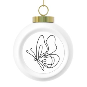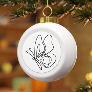 Hand-painted warmth in a glossy, vintage-inspired ornament. This ceramic ball carries a bright aluminum insert printed with crisp colors — poinsettias and candlelight wrap the sphere, while a minimalist butterfly sketch offers a quiet, modern contrast. Hung from its gold ribbon, it brings a gentle, nostalgic glow to a tree, mantle, or wreath. Those who treasure handmade-style details will notice the vintage motifs and thoughtful back-side tree/bell accent. Lightweight but substantial, it settles into holiday displays and keepsakes with ease.