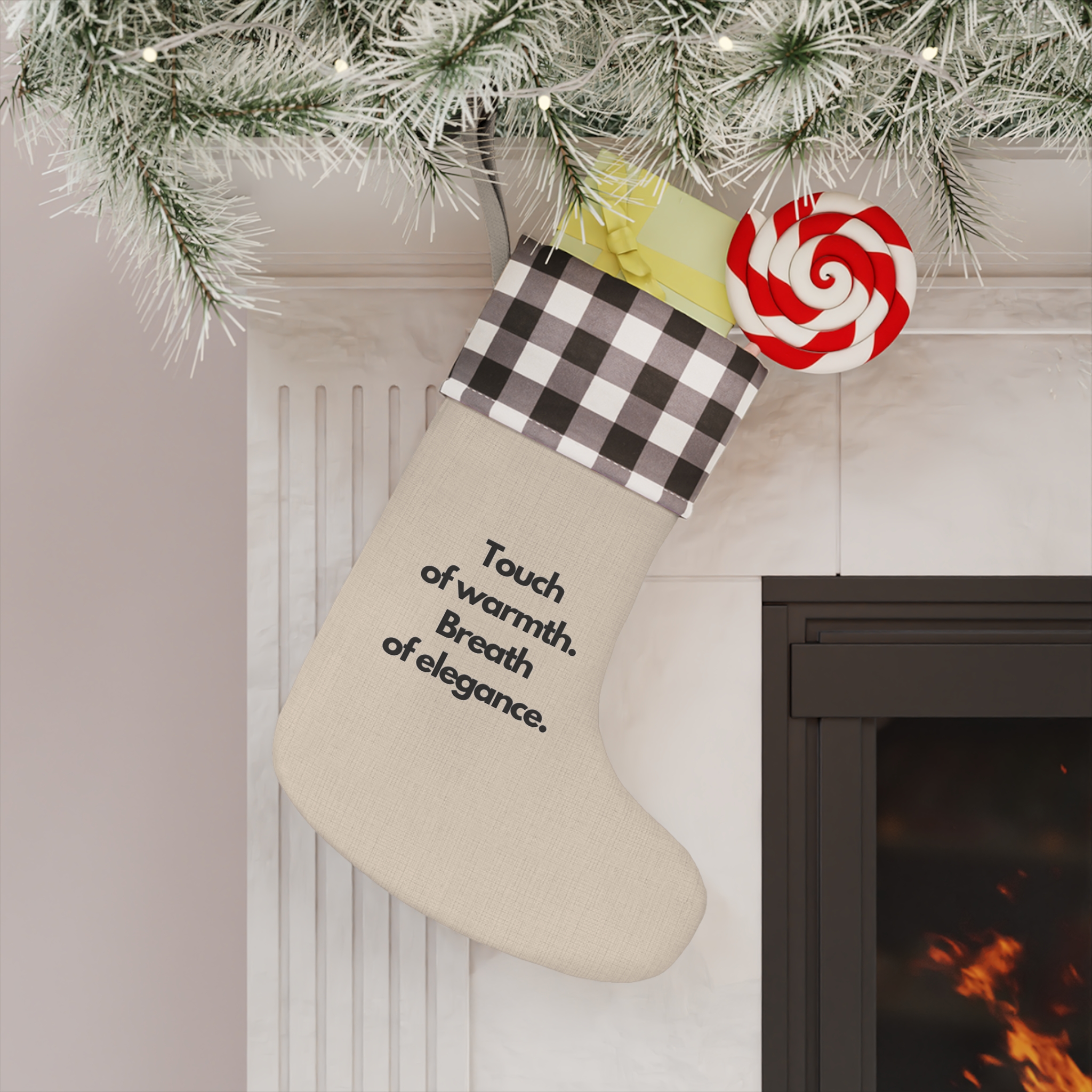 Take the favorite tradition of gift-giving this Christmas to the next level with a personalized Christmas stocking. This burlap Christmas stocking adds a personalized touch to any tree, fireplace, or stair railing as you can print all your custom ideas on the boot area. Add your designs and let the personalized burlap Christmas stocking be filled with candy, treats and small gifts.