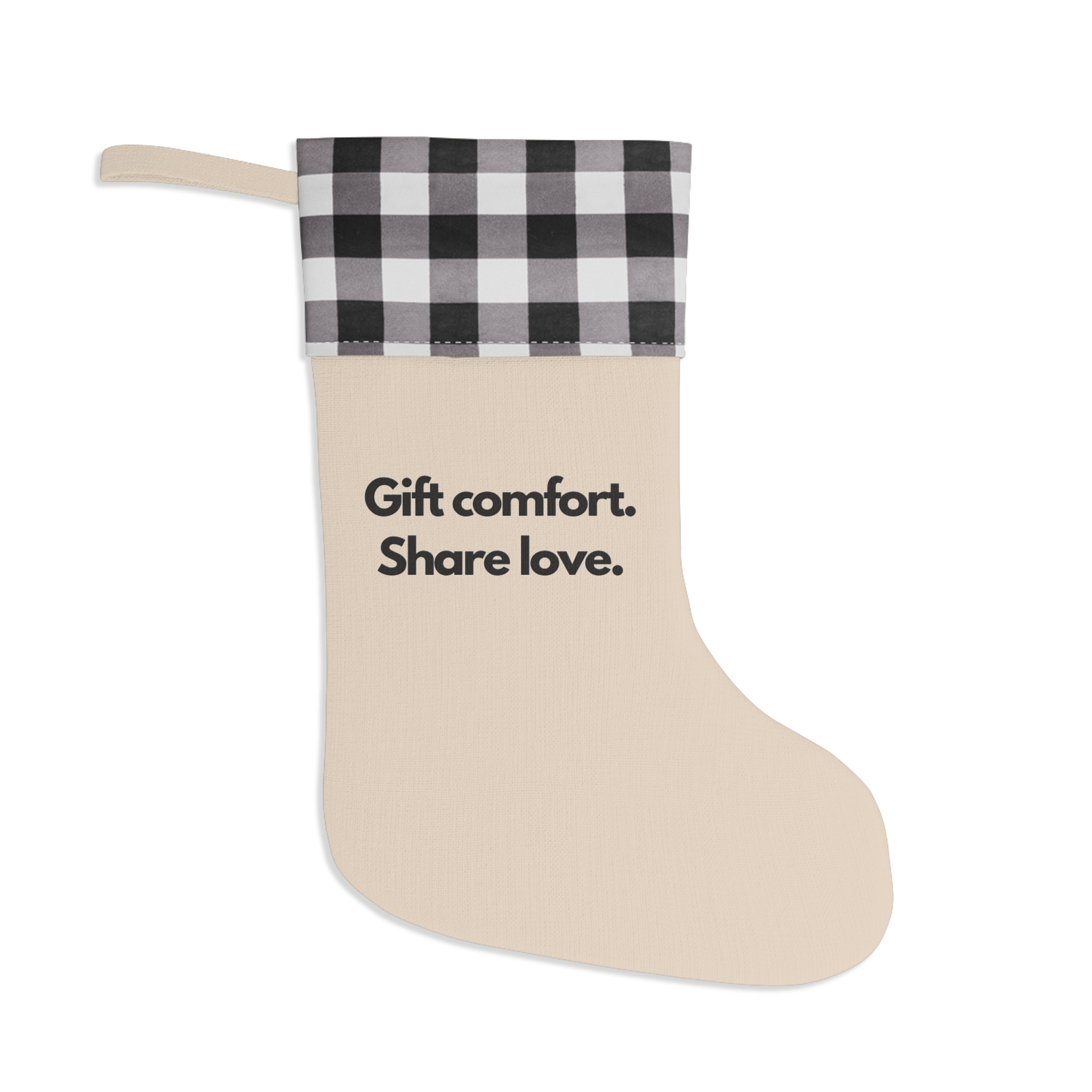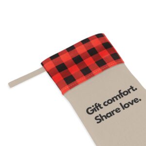 Bring a warm, lived-in charm to your holiday mantel with this linen Christmas stocking. The natural linen boot feels light and textured, while the plaid top cuff adds a cozy, cabin-ready accent in your choice of red/black or white/black. It hangs easily from the included loop and holds plenty of small surprises and thoughtful treats. The one-sided print keeps the front simple and inviting — a subtle reminder to slow down, share warmth, and enjoy familiar traditions during winter gatherings and gift exchanges.
