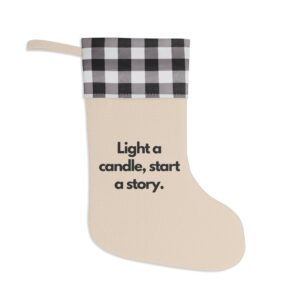 Christmas Stocking – “Light a candle, start a story.” Plaid Cuff Holiday Stocking