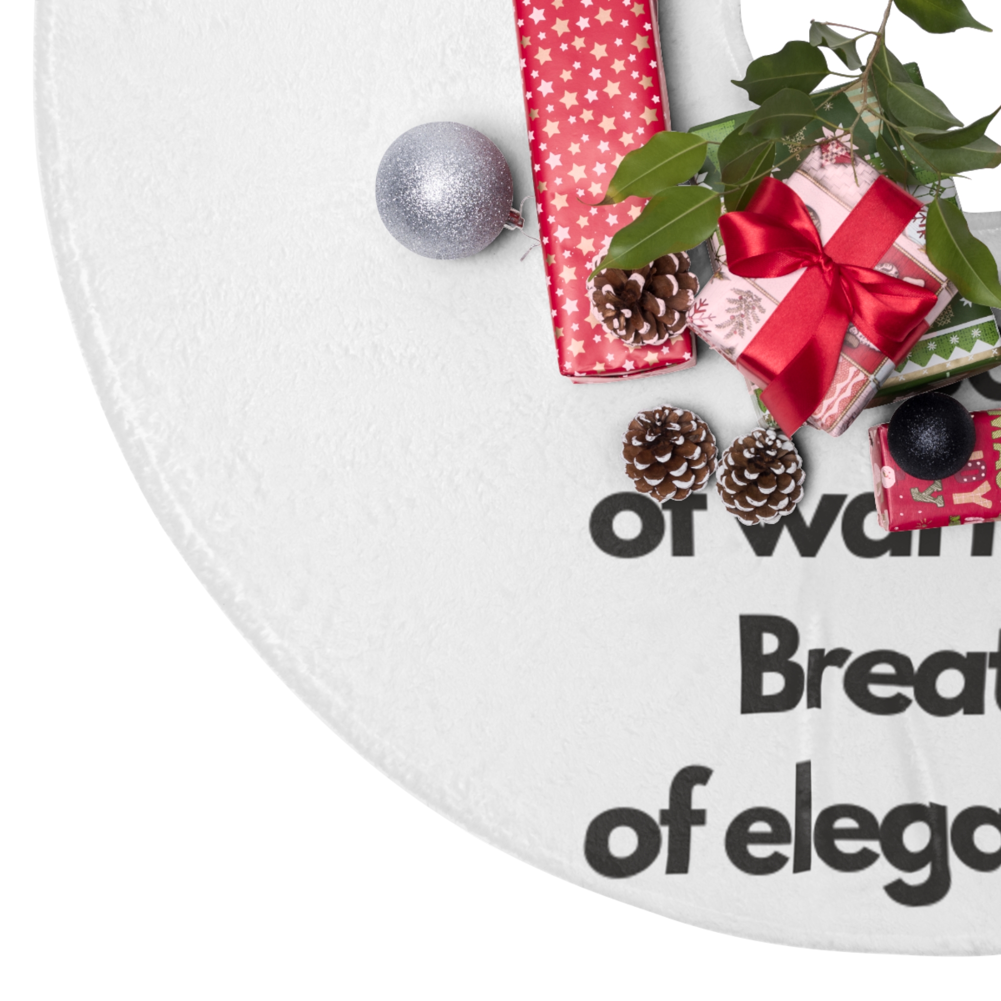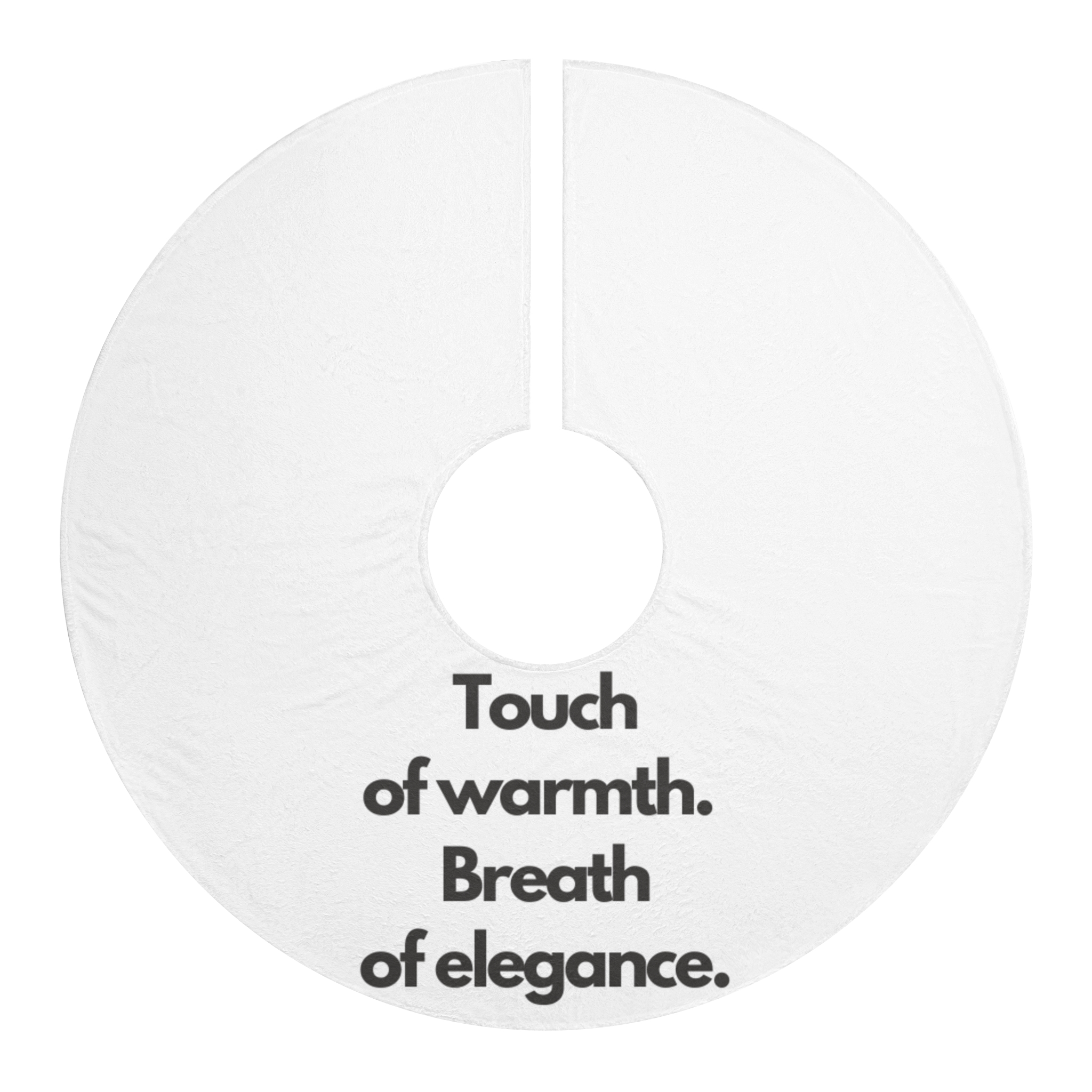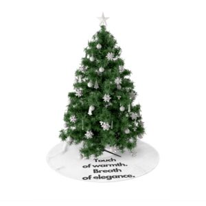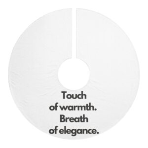 A soft, cream fleece tree skirt that brings gentle warmth and understated elegance beneath your tree. Plush polyester fleece cushions presents and softens the room, while the hemmed edges keep the skirt looking tidy year after year. The subtle one-sided print reads like a quiet invitation — “Touch of warmth. Breath of elegance.” — adding a minimal, refined accent that complements both modern and classic holiday decor. Pre-constructed and assembled in the USA, this skirt lays down easily and dries quickly after storage or spot-cleaning. It quietly raises the mood without shouting for attention, letting ornaments and wrapped gifts remain the stars of the season.