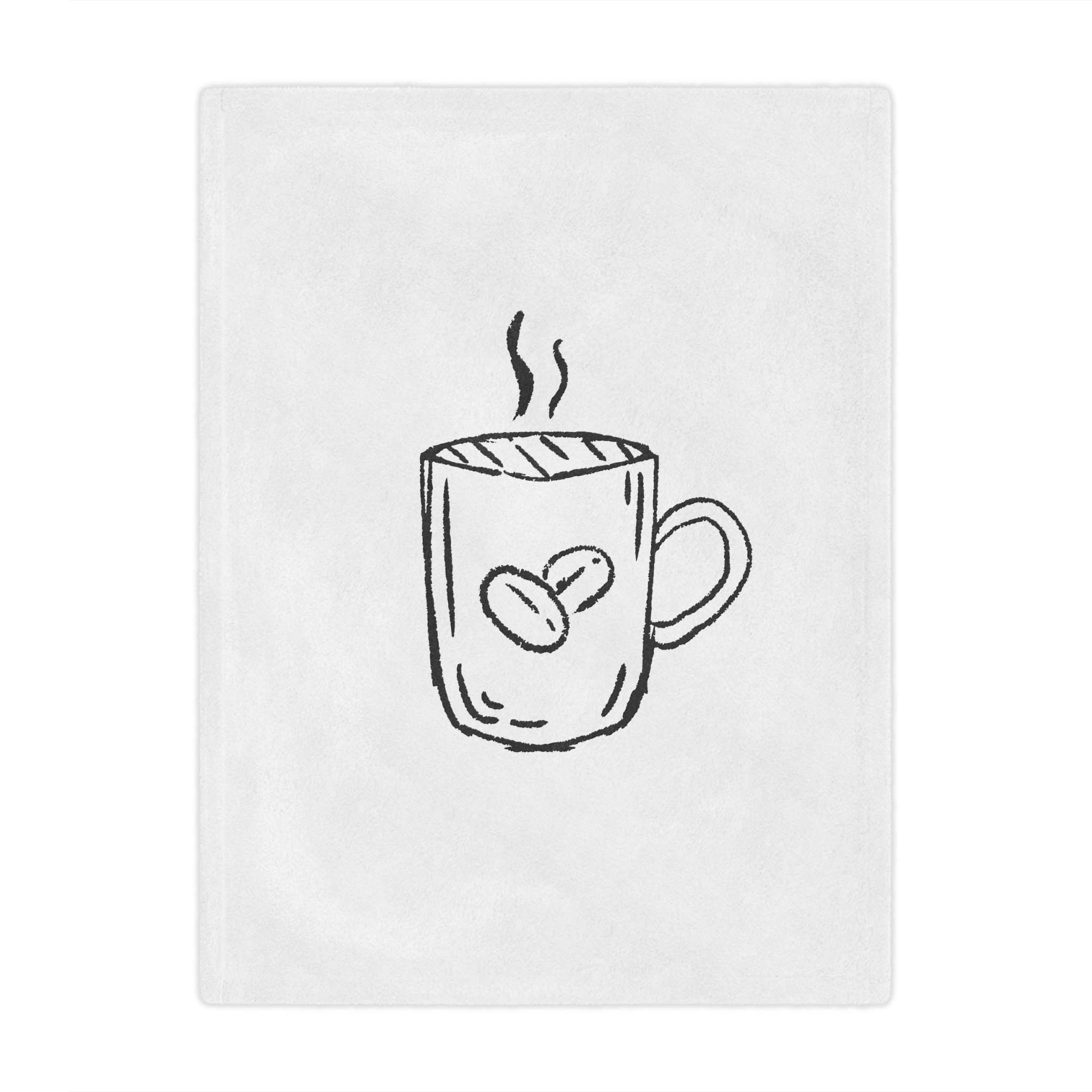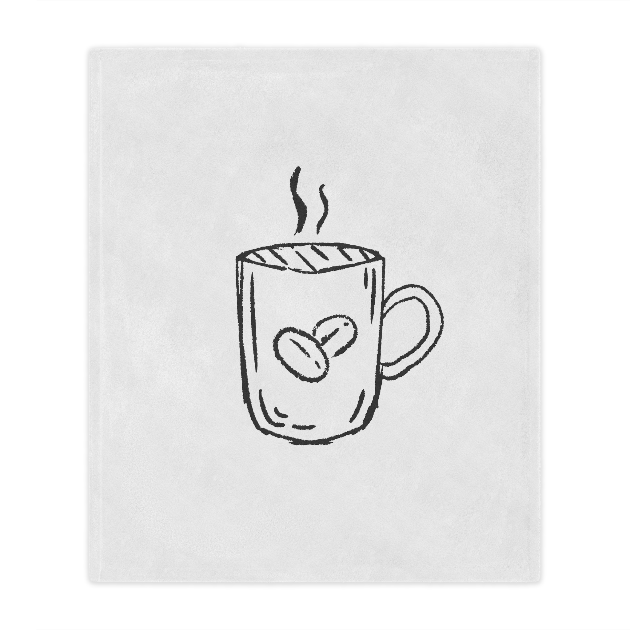 Coffee Mug Sketch Minky Blanket — Cozy Minimalist Coffee Lover Throw