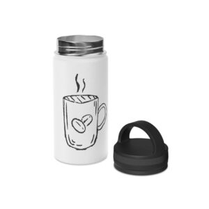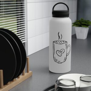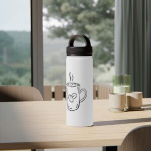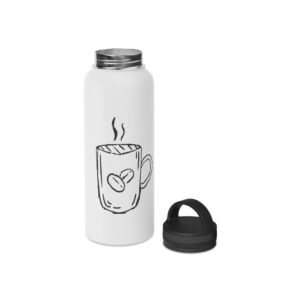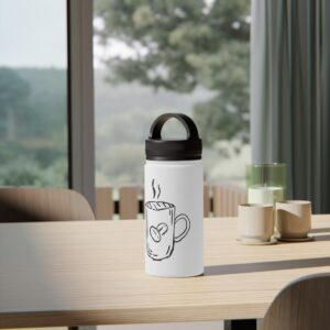 This stainless steel water bottle with a comfortable handle lid is made for people who move through their day with a warm drink or chilled water close at hand. The matte-finish print showcases a simple hand-drawn coffee mug motif that feels homey and honest — like the first sip at sunrise. Double-wall insulation keeps beverages hot up to 12 hours or cold up to 24, while the BPA-free construction and durable stainless-steel body stand up to daily use. Lightweight, available in three sizes, and easy to carry by the looped lid, it slides into backpacks, bike cages, or a commuter tote without fuss. Use it on chilly morning walks, café sessions, or long shifts when you want your drink to stay just as you left it.