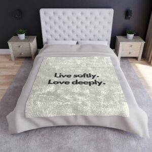 Crushed Velvet Blanket — “Live Softly. Love Deeply.” Plush Throw for Cozy Home & Gift