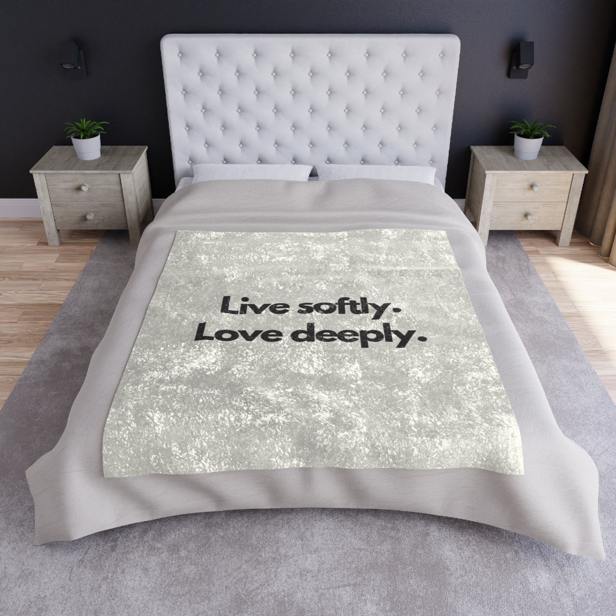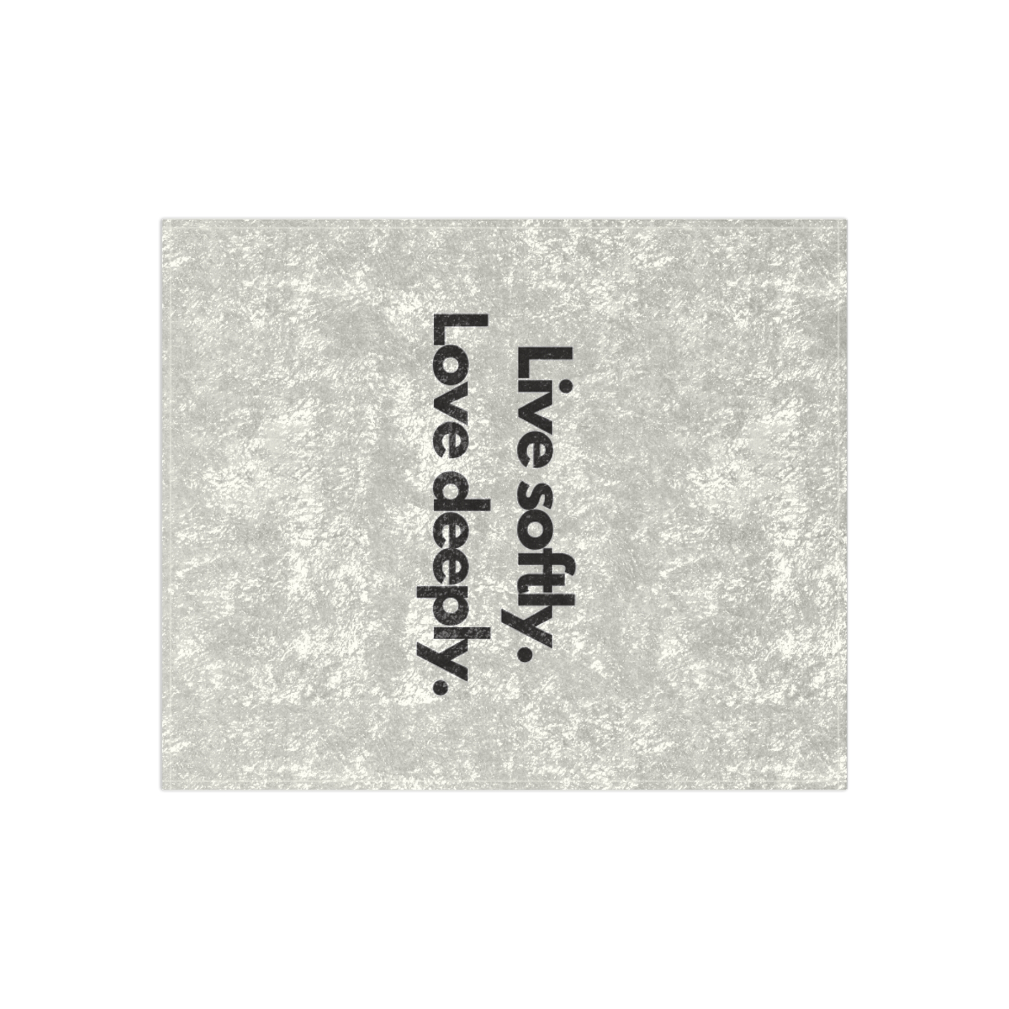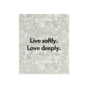 A crushed-velvet throw that reads like a quiet reminder. The soft, shiny surface catches light while the bold, minimalist text—”Live softly. Love deeply.”—grounds the mood. It drapes easily over a couch, spills across a bed, or wraps around you on slow mornings. Lightweight yet plush, the blanket adds a tactile layer of comfort and gentle sophistication to rooms that favor slow rituals and mindful moments. The one-sided print keeps the message front-and-center while the hemmed edges and durable polyester hold up to everyday use and repeated cuddles.
