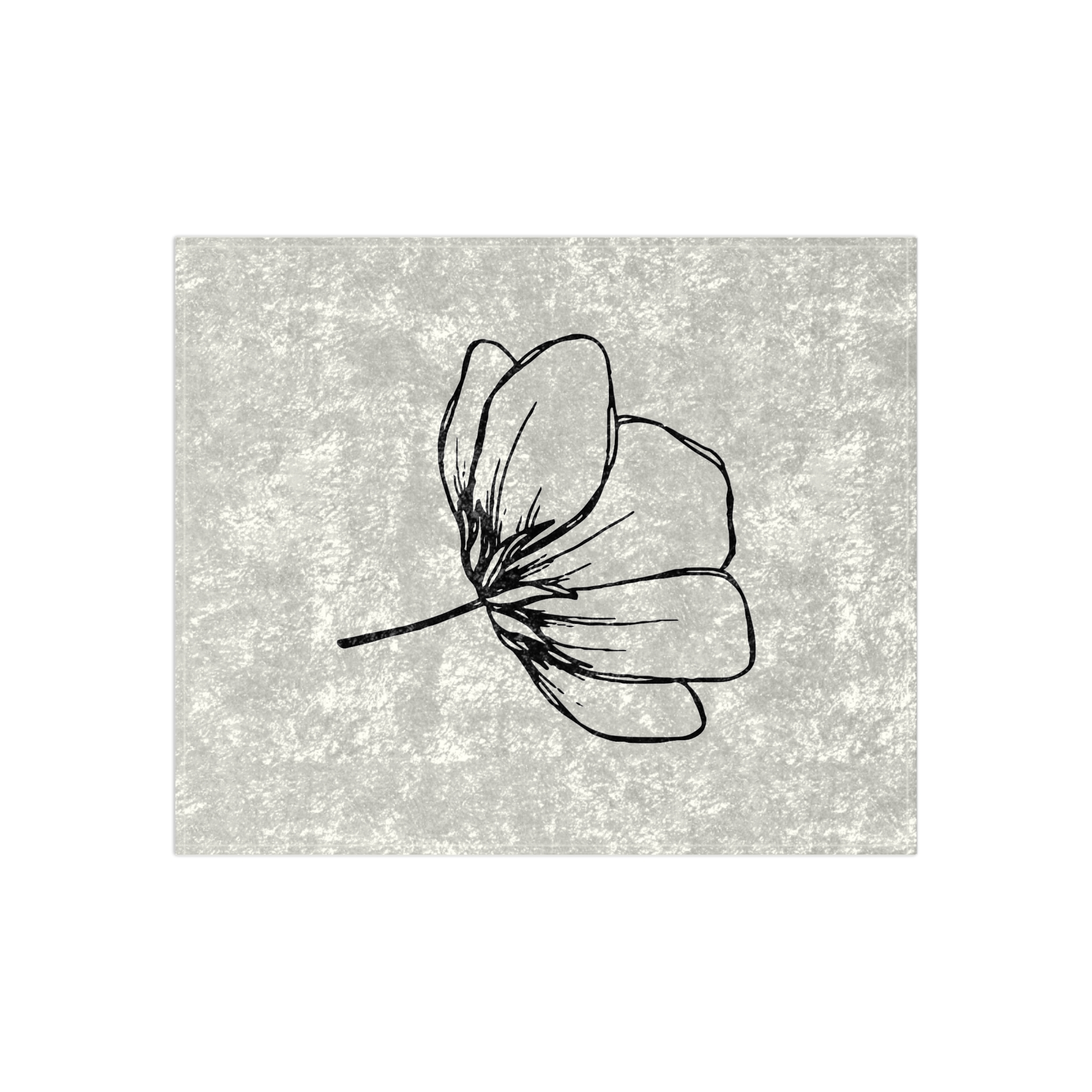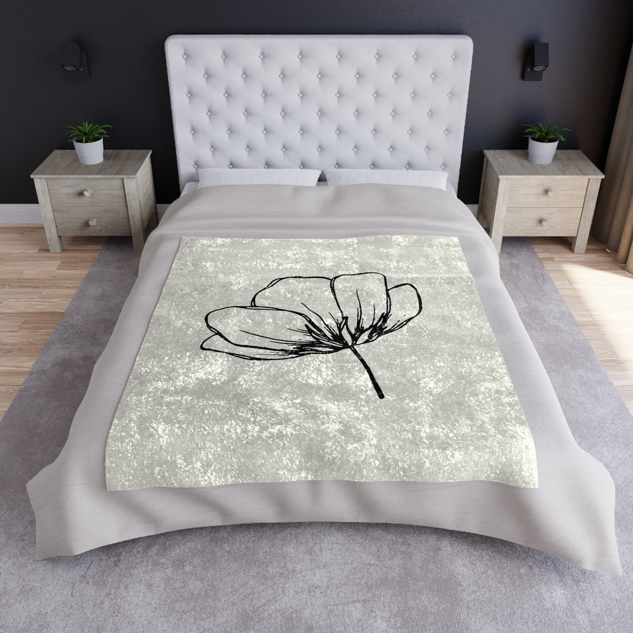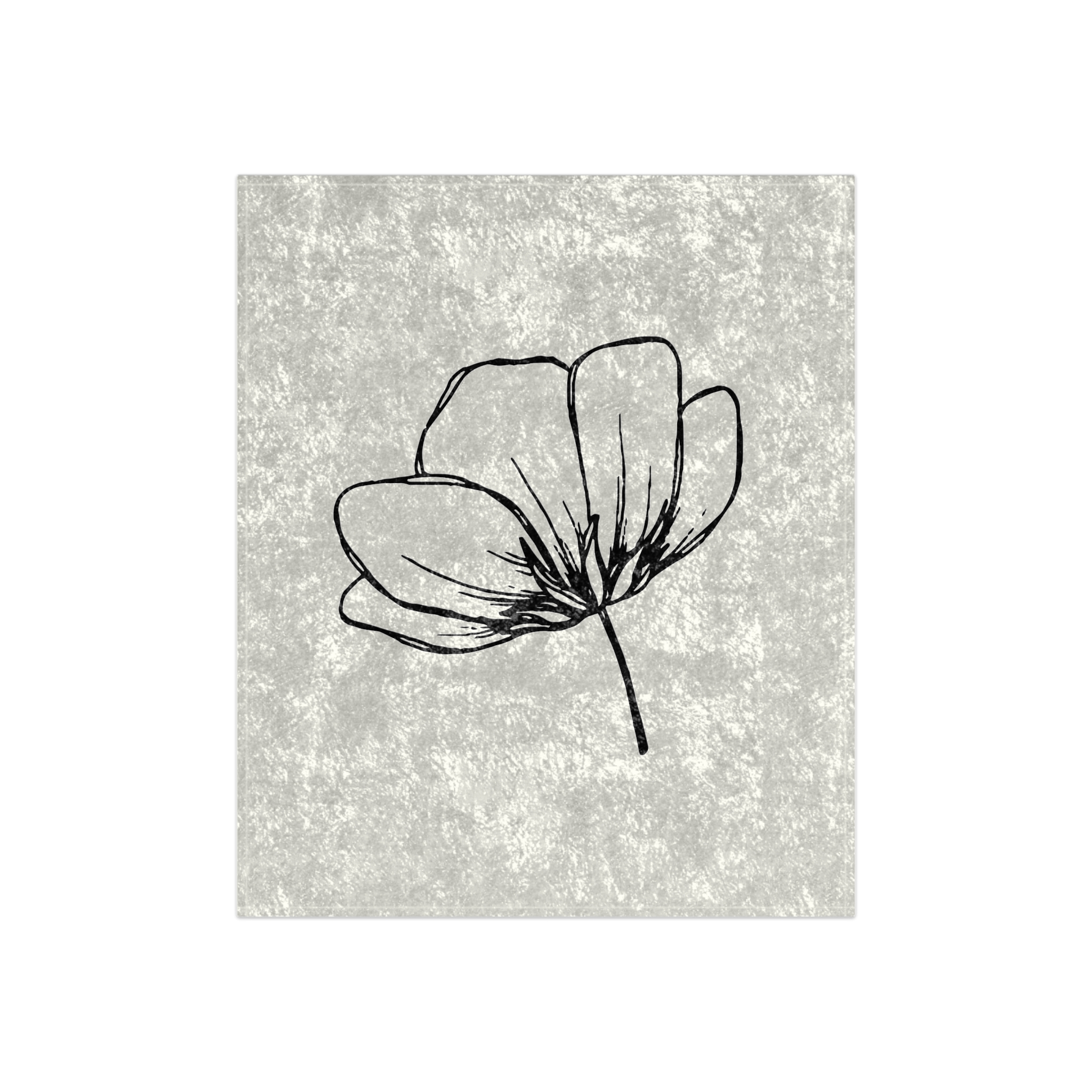 A crushed-velvet throw that feels like a quiet, luxurious breath. The soft, shiny pile catches light and invites lingering—wrap it around your shoulders on slow mornings, drape it over a pared-back sofa, or fold it at the foot of a bed to add a subtle, textural whisper. The simple hand-drawn floral floats against a muted, slightly distressed background for a calm, lived-in look that pairs with minimal, Scandinavian, or modern-boho spaces. It’s lightweight but warm, easy to toss in the car for a chilly evening walk or to spread across the lap during an at-home reading ritual.