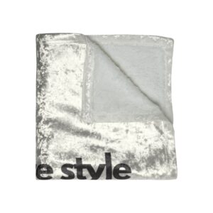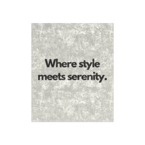 A crushed-velvet throw that reads like a soft design statement. The silvery plush surface catches the light with a subtle sheen, while the bold, minimalist text — “Where style meets serenity.” — grounds the piece in calm confidence. Lightweight yet cozy, this 50″ × 60″ blanket layers easily over a sofa or at the end of a bed, bringing a touch of modern elegance and tactile comfort to quiet evenings, slow mornings, or mindful downtime. It drapes smoothly, resists wrinkles, and keeps its plush look after repeated use and quick drying. Use it to soften a sleek living room, add polish to a calming reading nook, or wrap up during movie nights when you want to feel both comfortable and composed.