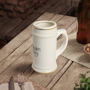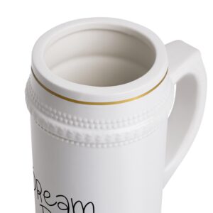 – 22 oz white ceramic stein with sculpted detailing
