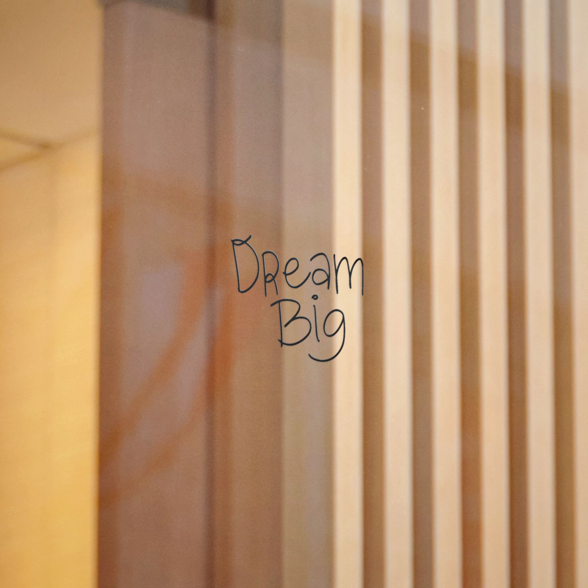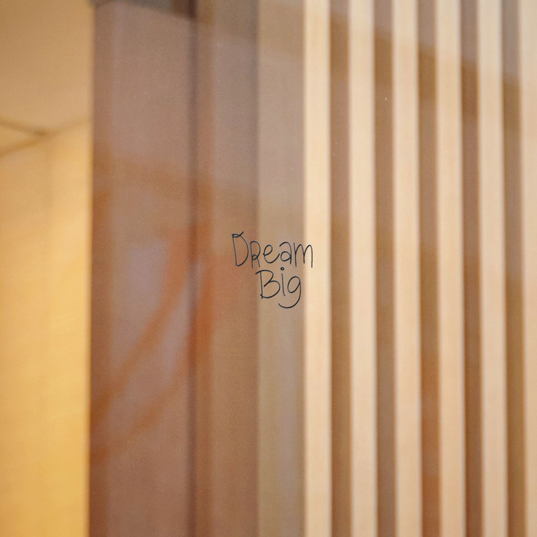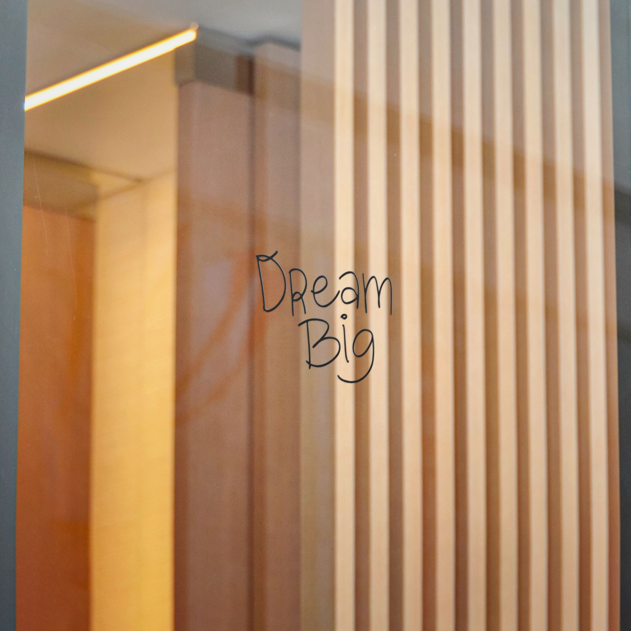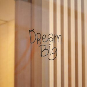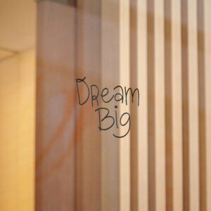 – Clear-backed die-cut design lets the handwritten “Dream Big” float on surfaces