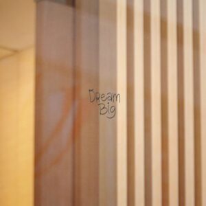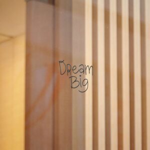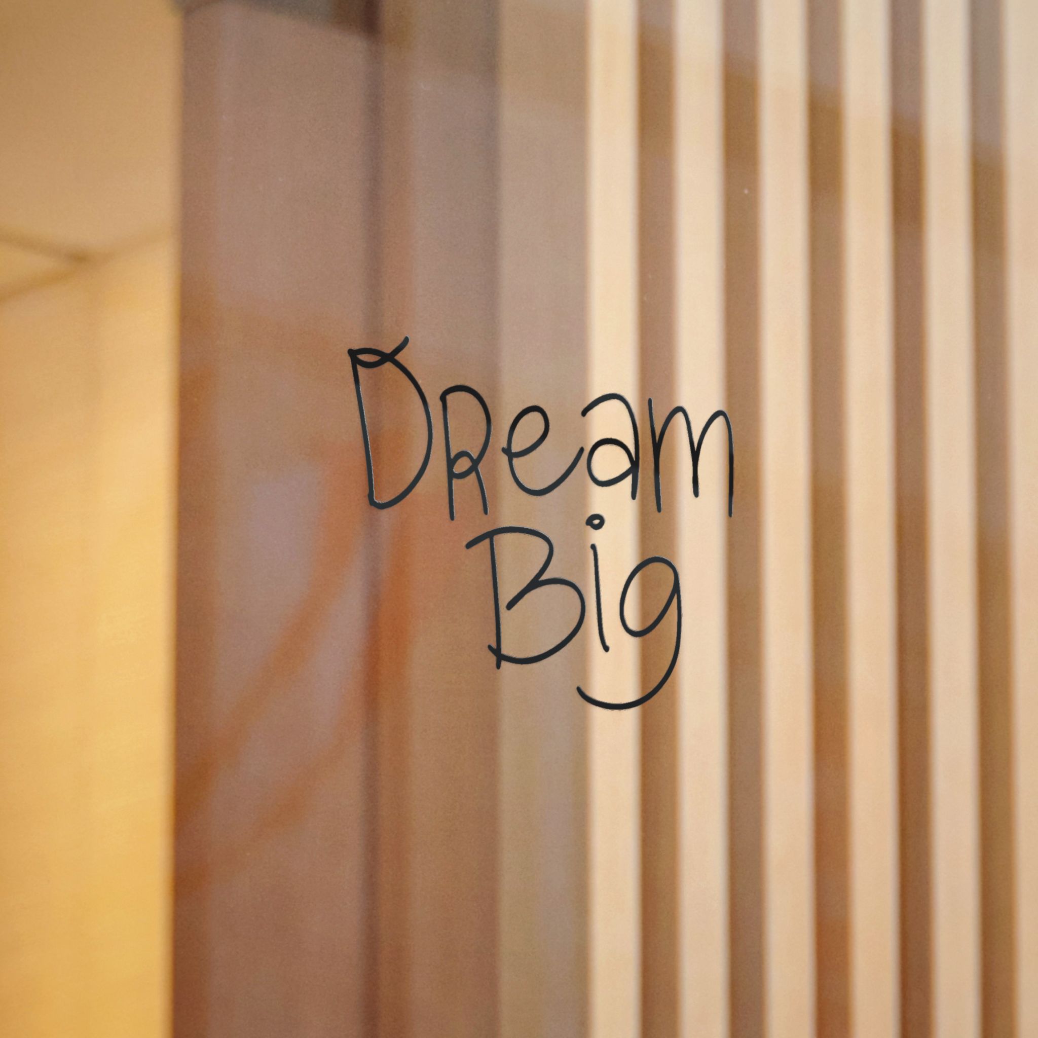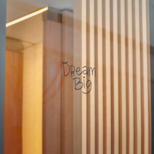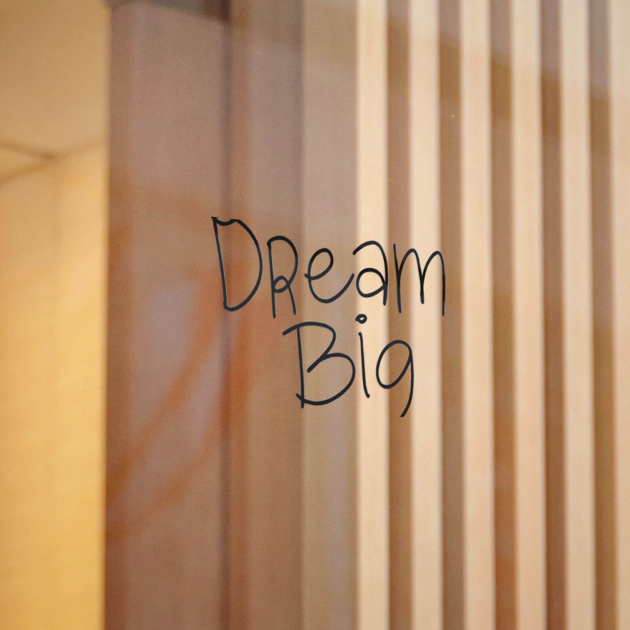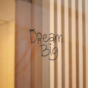 – Clear-backed die-cut design lets the handwritten “Dream Big” float on surfaces