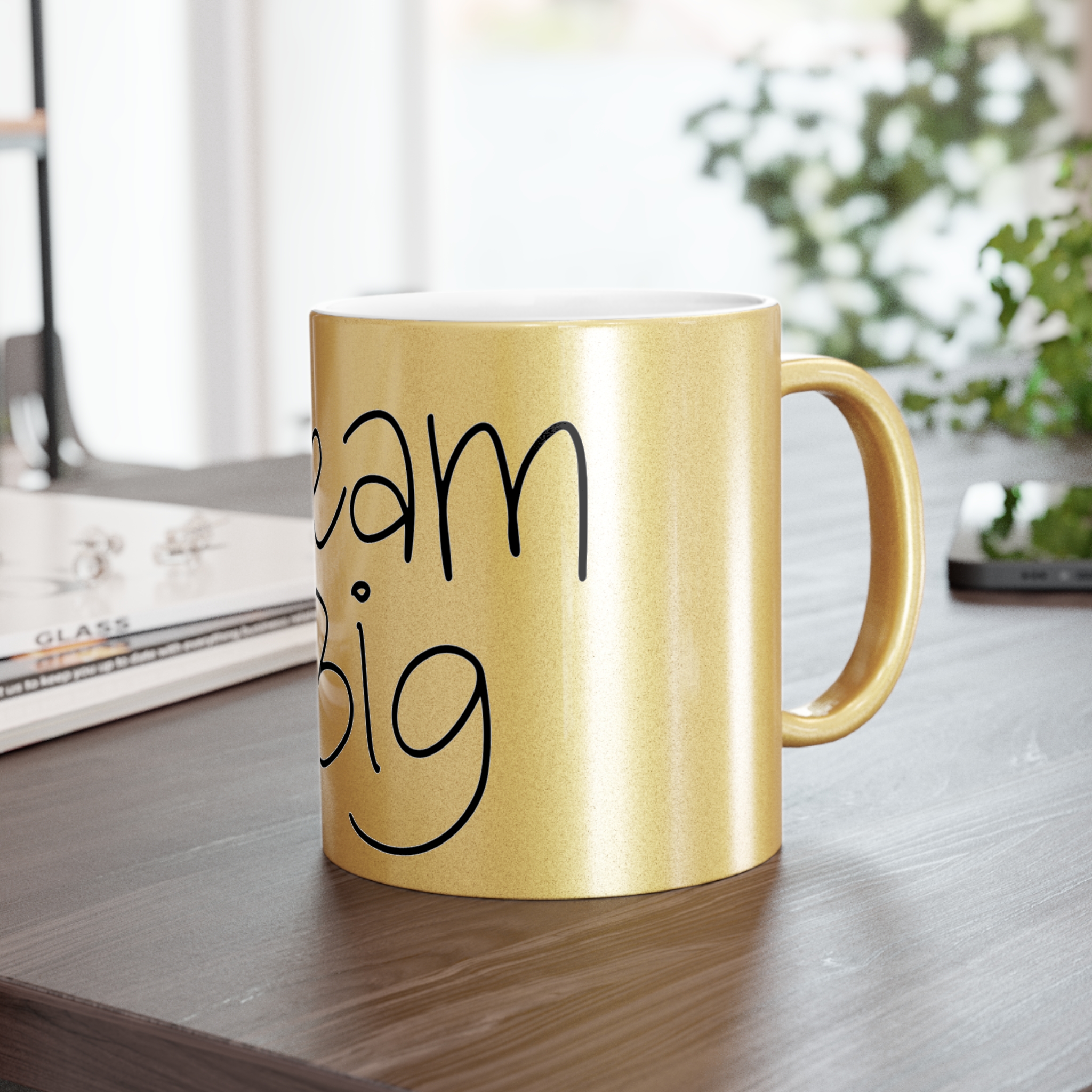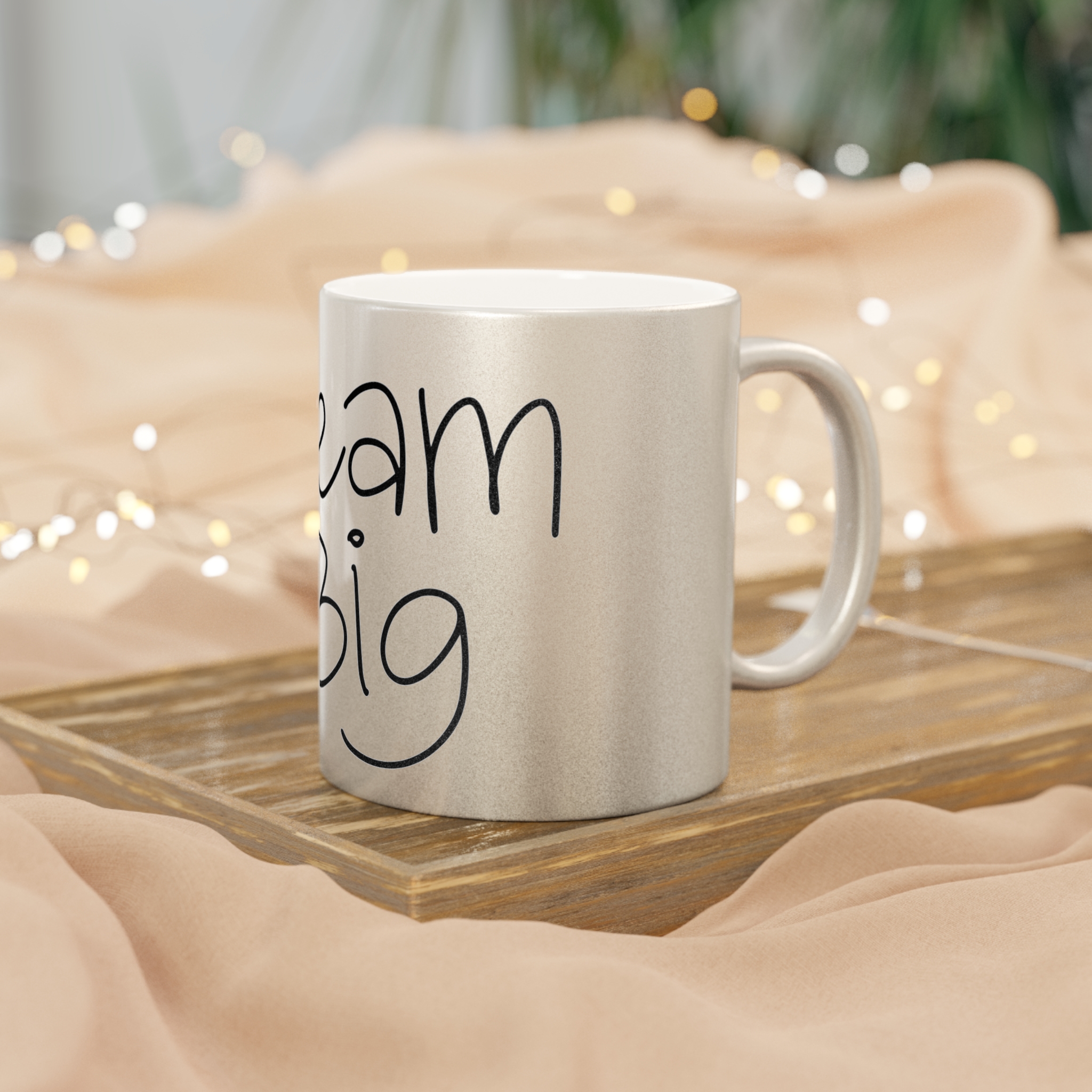 Dream Big Metallic Mug — Silver/Gold Inspirational Coffee Cup