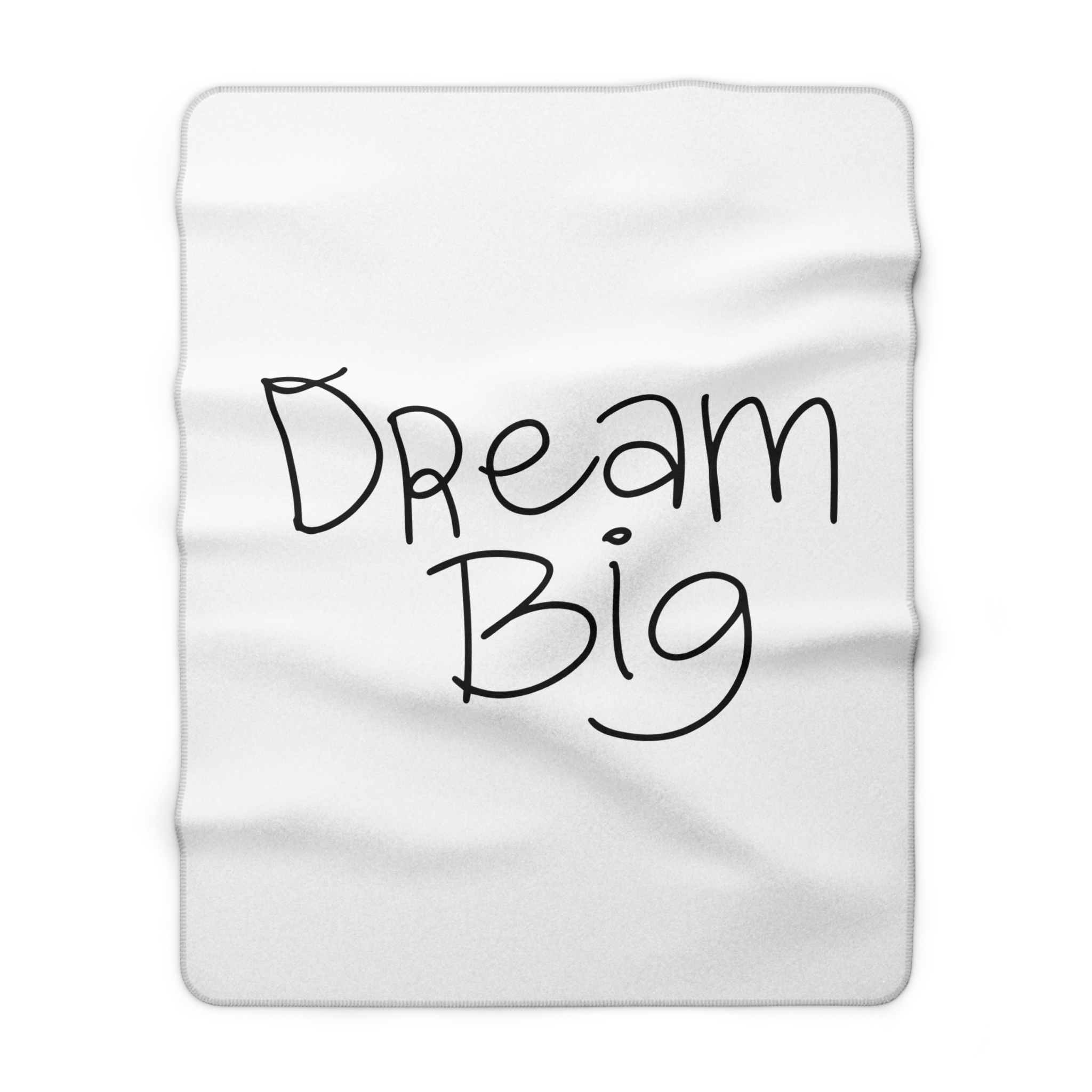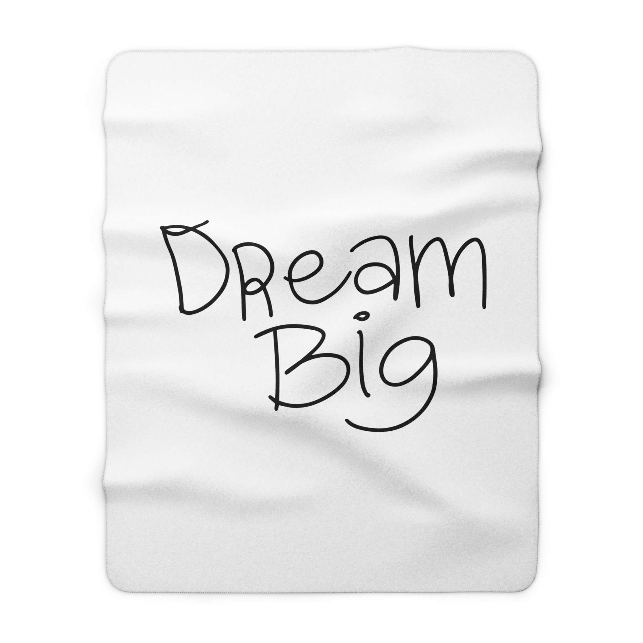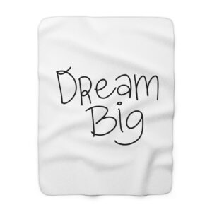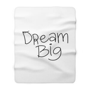 A whisper-soft sherpa fleece blanket that wraps you in quiet encouragement. The front features a hand-lettered “Dream Big” script on a clean white field — simple, hopeful, and uncluttered. Turn it over and sink into the plush, velvety sherpa backside that holds warmth and comfort close. Sized for couch naps, chilly office chairs, or late-night journaling sessions, this blanket feels like a gentle nudge toward rest and possibility. Lightweight yet warm, it layers easily over bedding or folds into a travel companion for weekend retreats. It’s made to be lived in: durable hemmed edges, reliably soft 100% polyester pile, and safety-tested finishes. Small size variances reflect its handcrafted-ready construction, adding to its homey charm.
