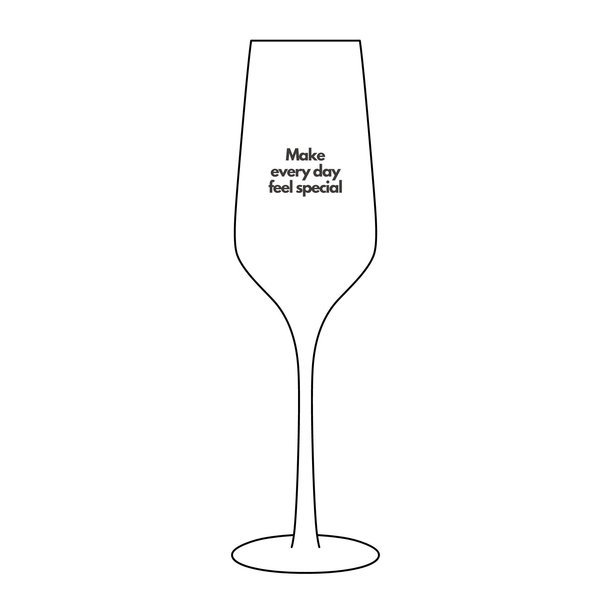 Light catches the thin, lead-free glass and the small engraved phrase — Make every day feel special — like a quiet reminder at the start of a celebration. This 8.25 oz champagne glass is slim and elegant, with a permanent, finely etched message that won’t fade or peel. It sits comfortably in the hand, balances bubbles and aroma, and cleans easily on the top rack when the toasts are done. Bring a thoughtful, everyday-luxury moment to brunches, anniversaries, or a slow evening toasting small wins.