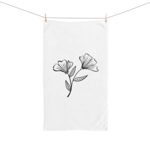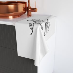 A soft, artful hand towel that brings quiet botanical charm to everyday moments. The lightweight fabric feels gentle against skin and dries quickly, making it a natural companion at the sink or in a guest powder room. A minimal black line floral sits on a clean white field — subtle, modern, and calming. Tuck it beside your favorite soap, drape it over a wooden rack, or fold it into a basket to add an understated touch of nature to your morning routine. The towel’s bright, durable print holds crisp detail through regular use, so the delicate blooms keep their character wash after wash.
