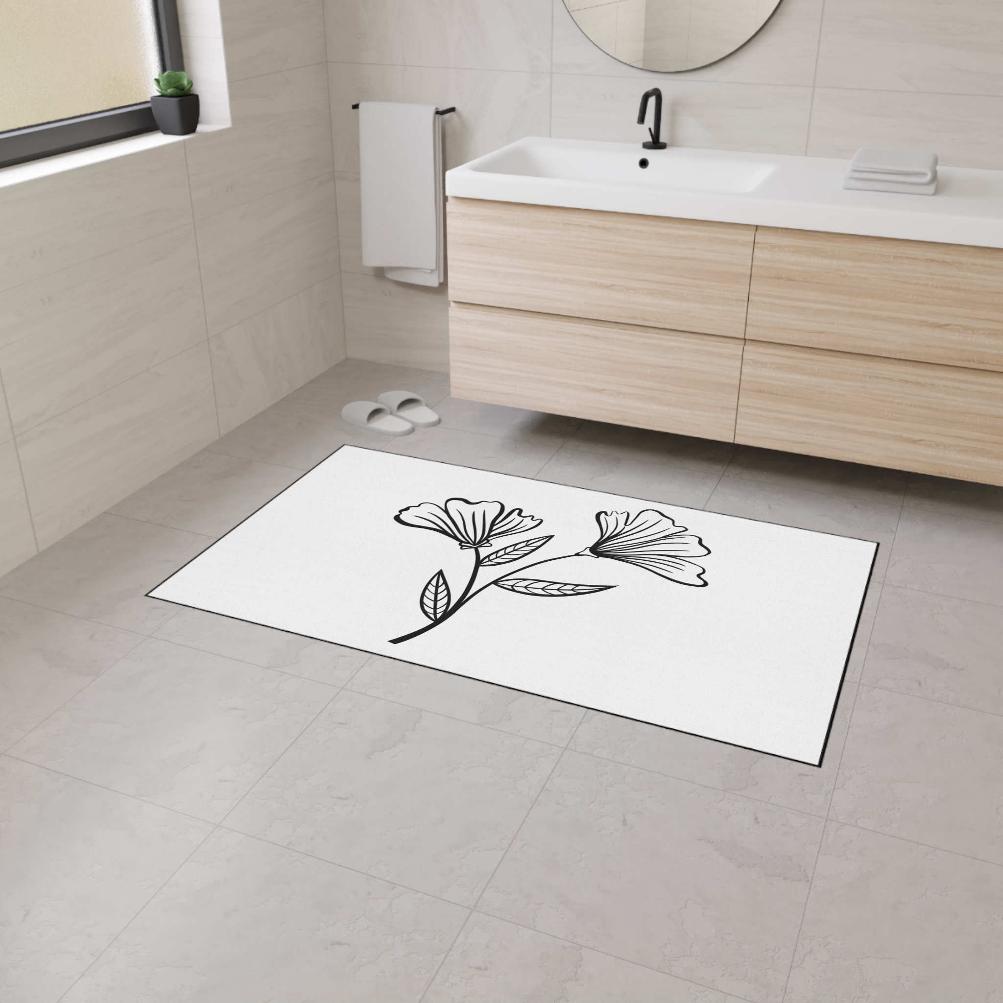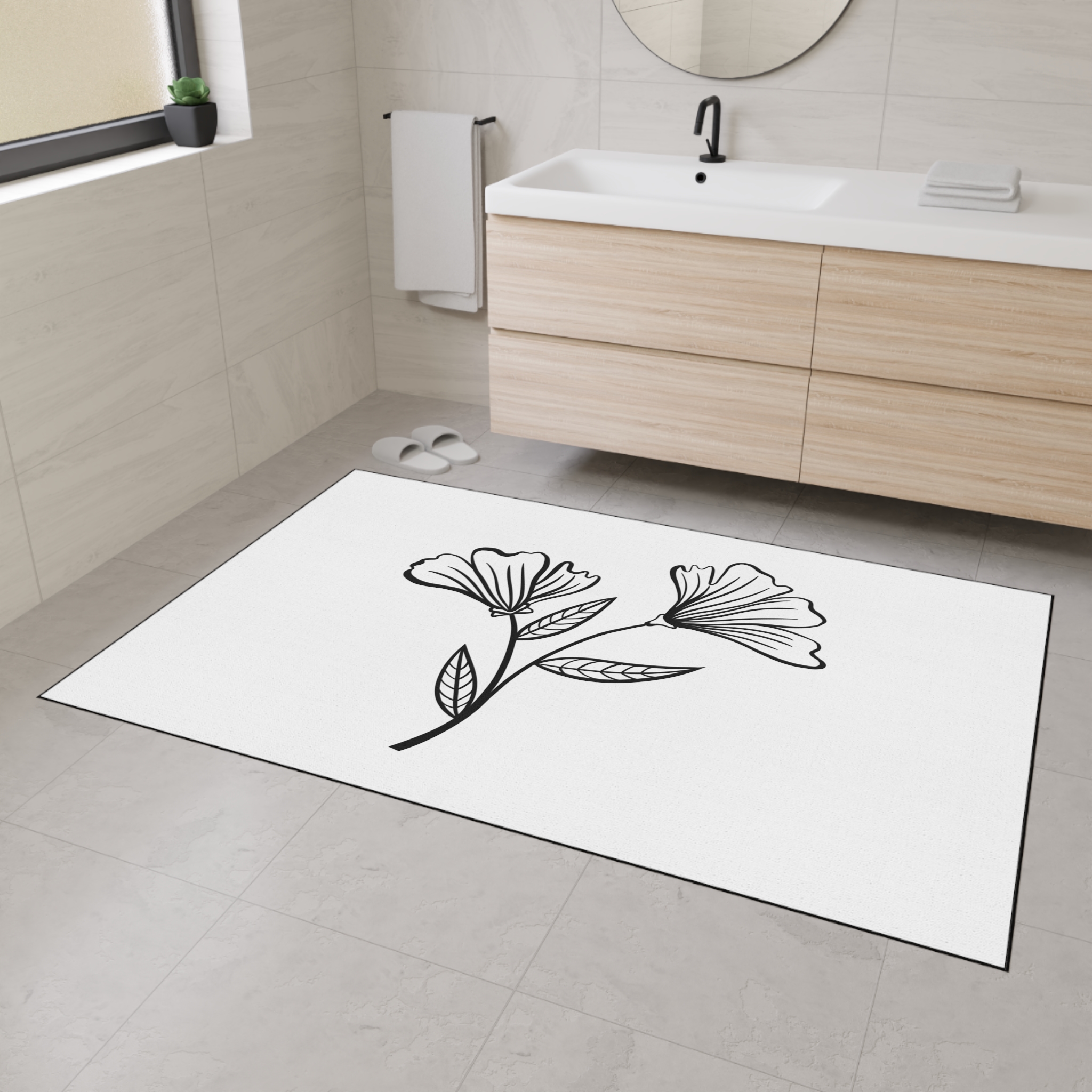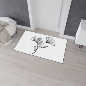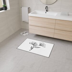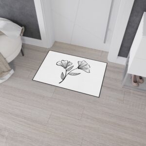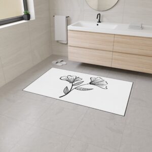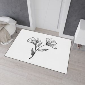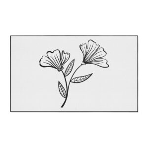 Bring calm, thoughtful style to the floor with a heavy-duty mat that reads like understated art. The single-sided, hand-drawn floral sketch rests on a crisp white field framed by a slim black edge — a quiet statement that moves easily between entryway, studio, or kitchen. It’s built to handle everyday traffic: a dense polyester face holds detailed, high-contrast print while a textured rubber underside grips the floor so the mat sits steady through comings and goings. The result is a durable piece that feels mindful and modern — tactile where it matters, visually gentle where you want it.