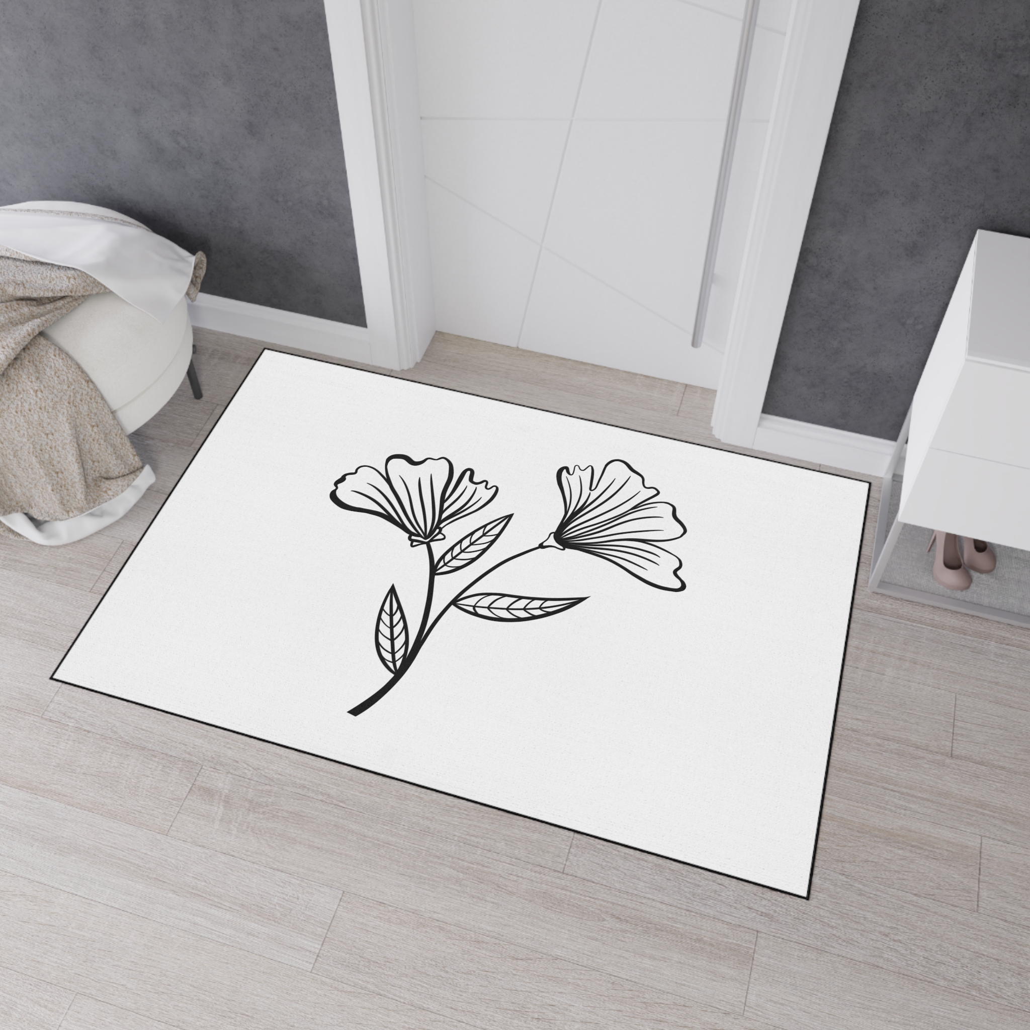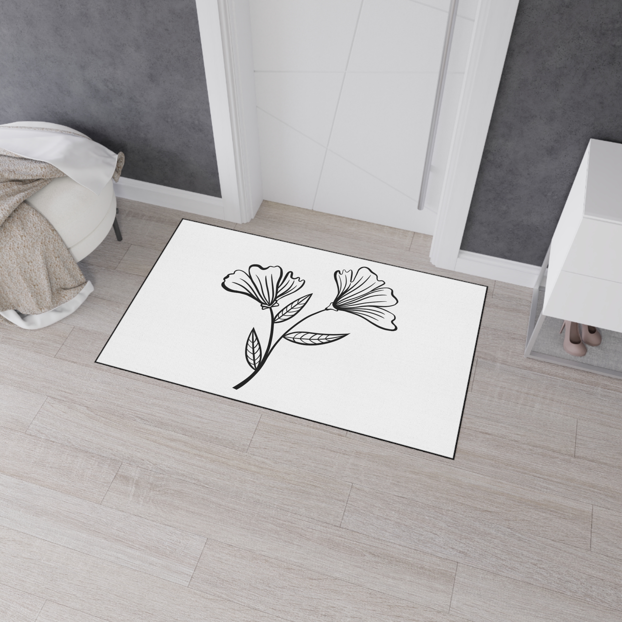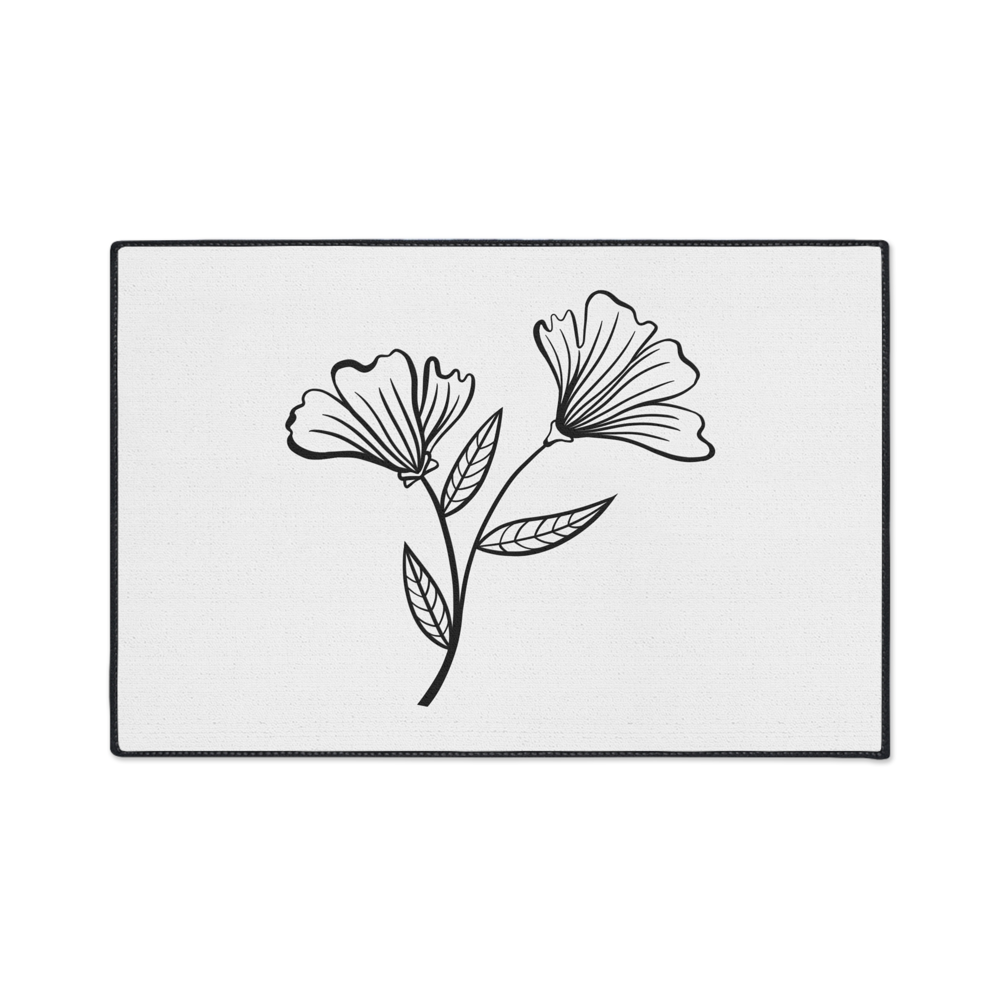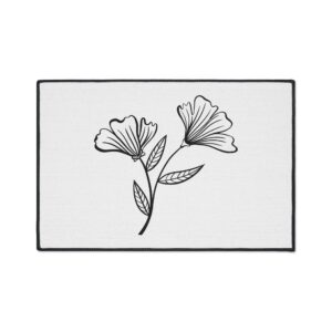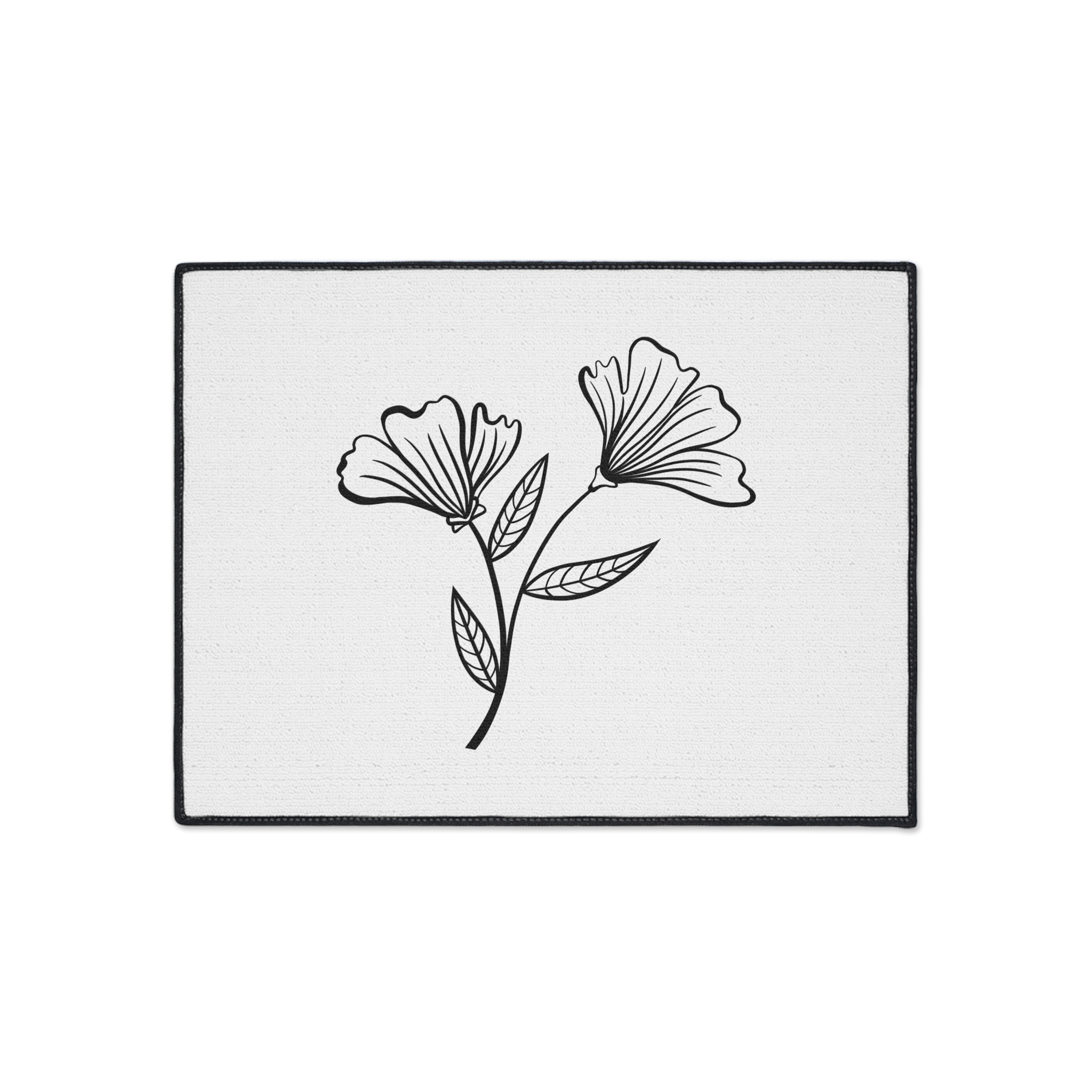 Floral Line Art Heavy-Duty Floor Mat – Minimal Black & White Door Rug