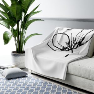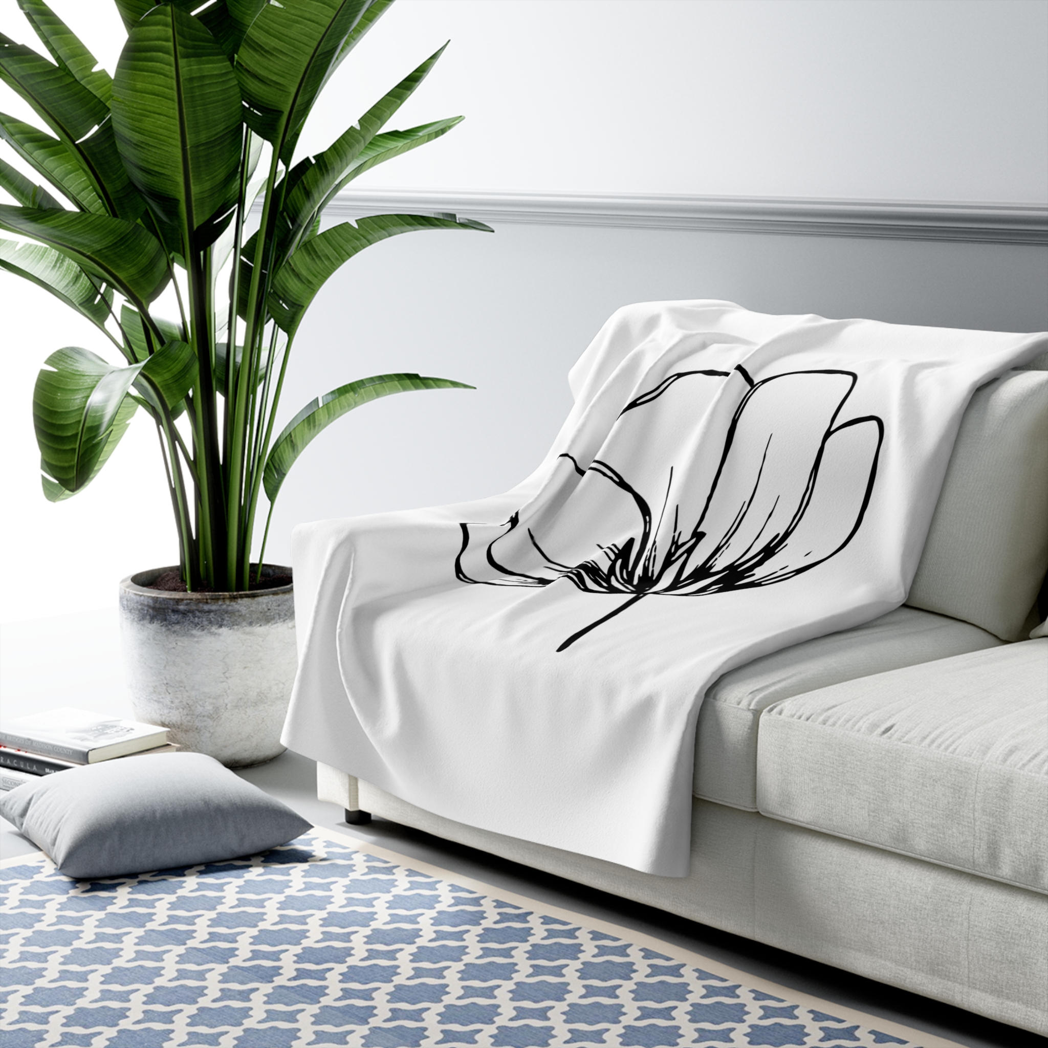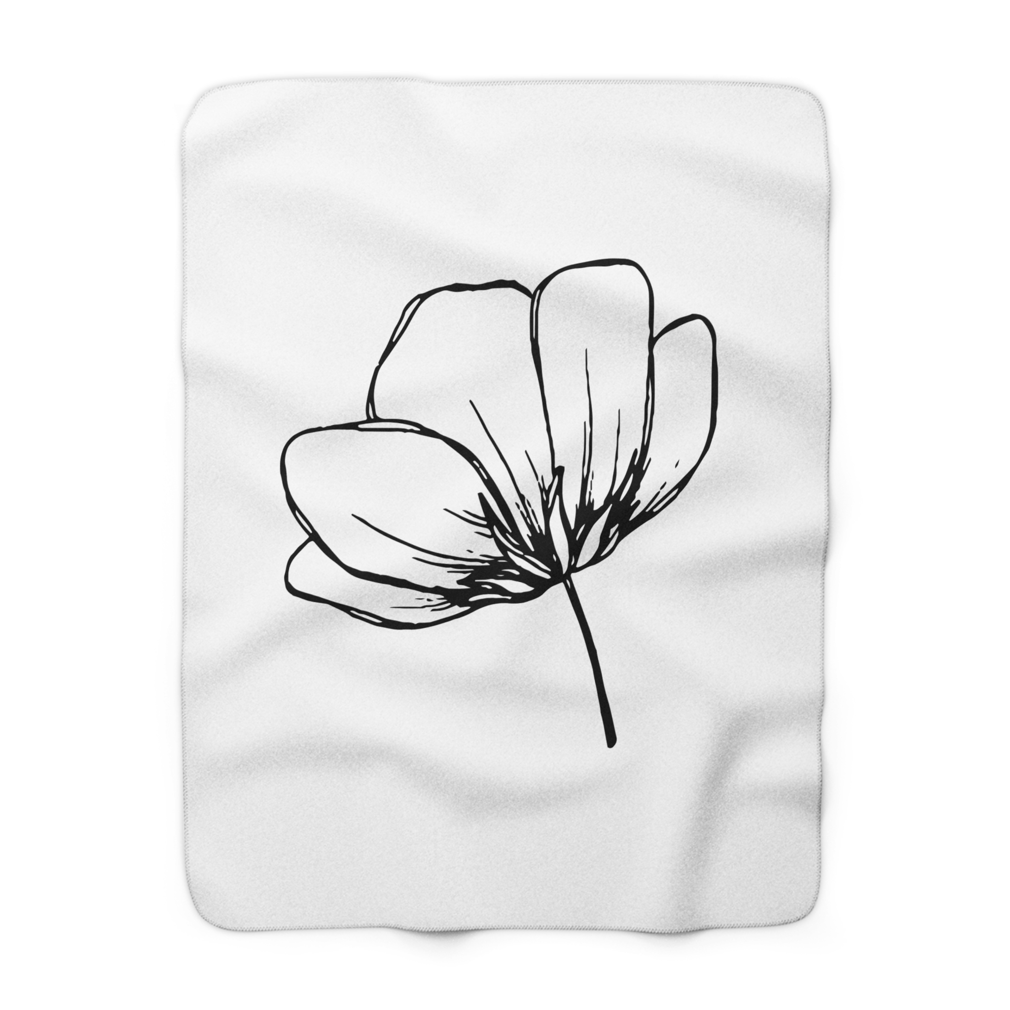 A whisper-soft sherpa fleece blanket that feels like a warm hug on quiet mornings. A single-line floral sketch floats across a clean white face, giving the piece a calm, minimalist look that brightens a reading nook or settles over your lap during slow evenings. The plush sherpa reverse cushions against chilly floors or couches, while the hemmed edges keep the silhouette tidy after many cozy nights. Light, elegant, and soothing — this blanket slips easily into ritual: wrapped around shoulders with a cup of tea, draped over a favorite armchair, or passed along at relaxed small gatherings.