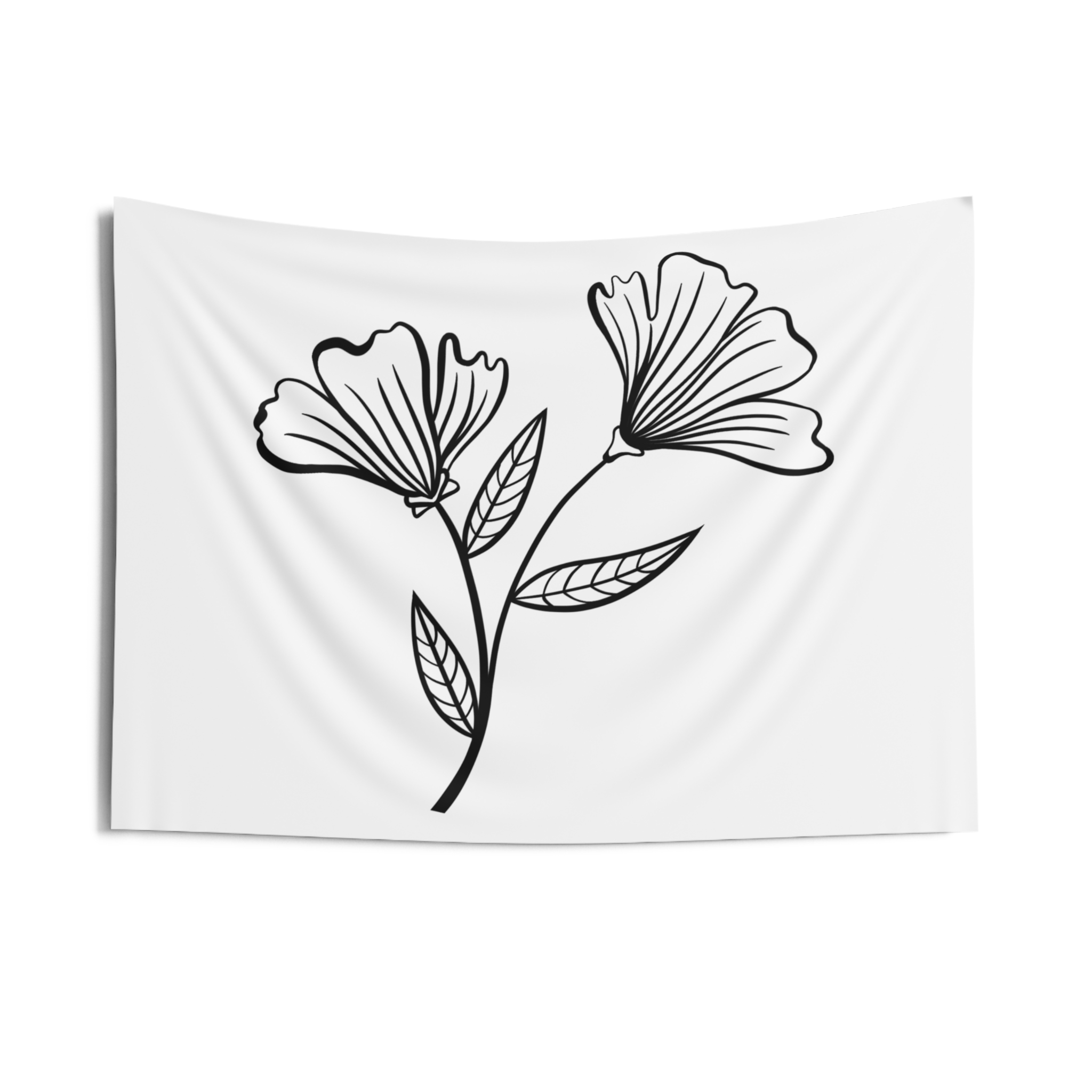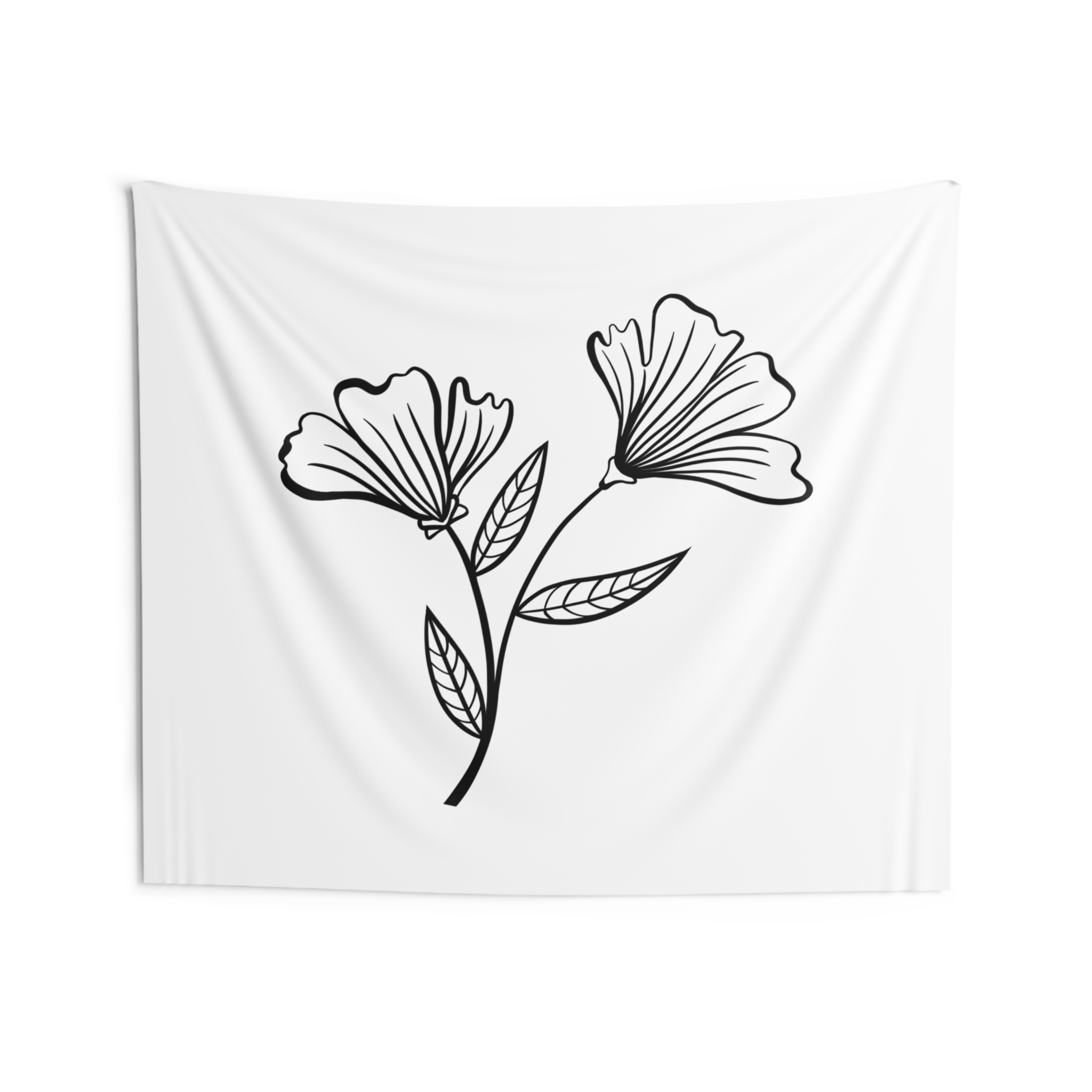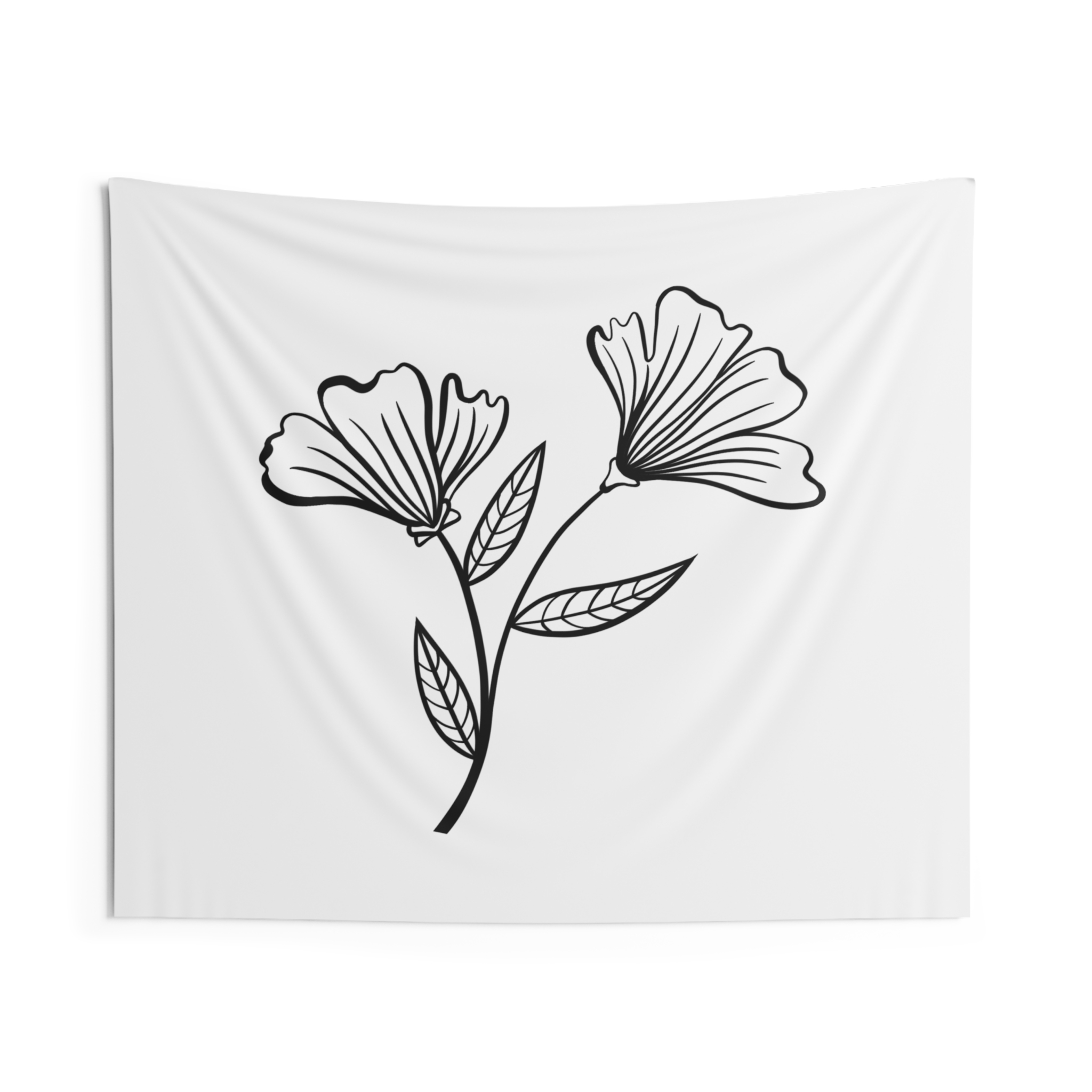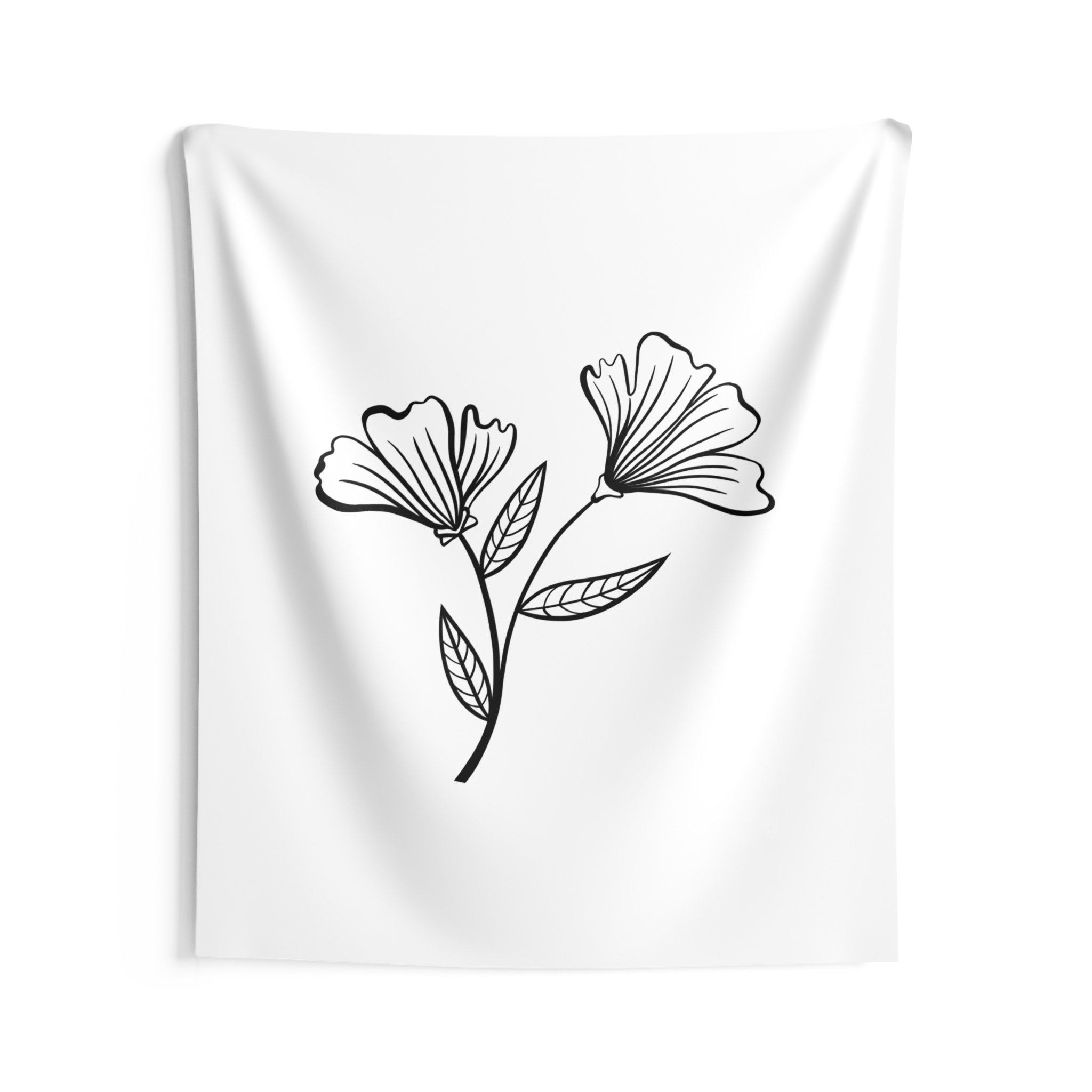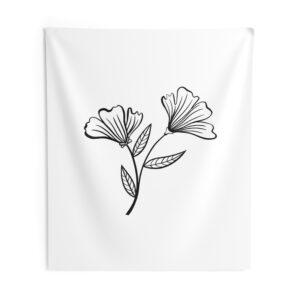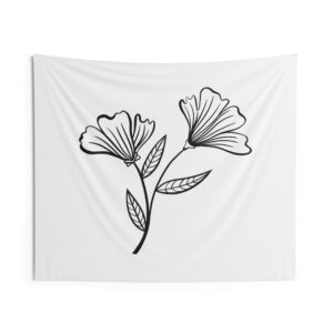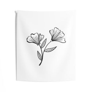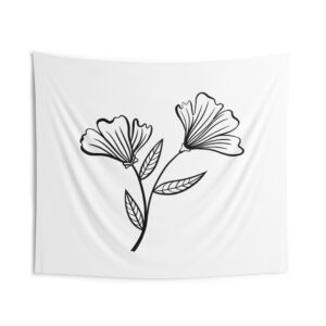 A soft, airy wall tapestry that brings quiet botanical charm to any room. The minimalist black-line floral sits on a clean white field, creating a calm, gallery-like focal point that reads as both modern and handmade. Lightweight polyester keeps the print crisp while the hemmed edges give the piece a tidy, long-lasting finish. It drapes easily over a dorm wall, behind a bed, or above a reading nook to lend a gentle, restorative note to everyday spaces.