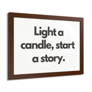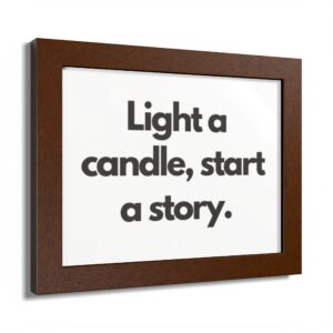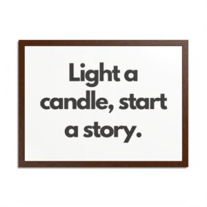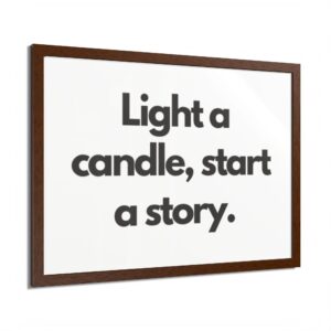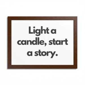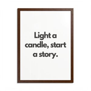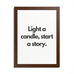 A warm, framed poster that turns a simple quote into a quiet moment. The bold, modern type reads “Light a candle, start a story.” set on clean white paper and protected by a clear Perspex cover. The hand-crafted wooden frame adds a tactile, homey touch — the kind that looks right above a mantle, beside a reading nook, or along a hallway where visitors pause. Colors are crisp and the print has a gentle semi-gloss sheen that catches light without glare. It arrives ready to hang, so the first thing you do is pick a wall and let the room breathe a little easier.
