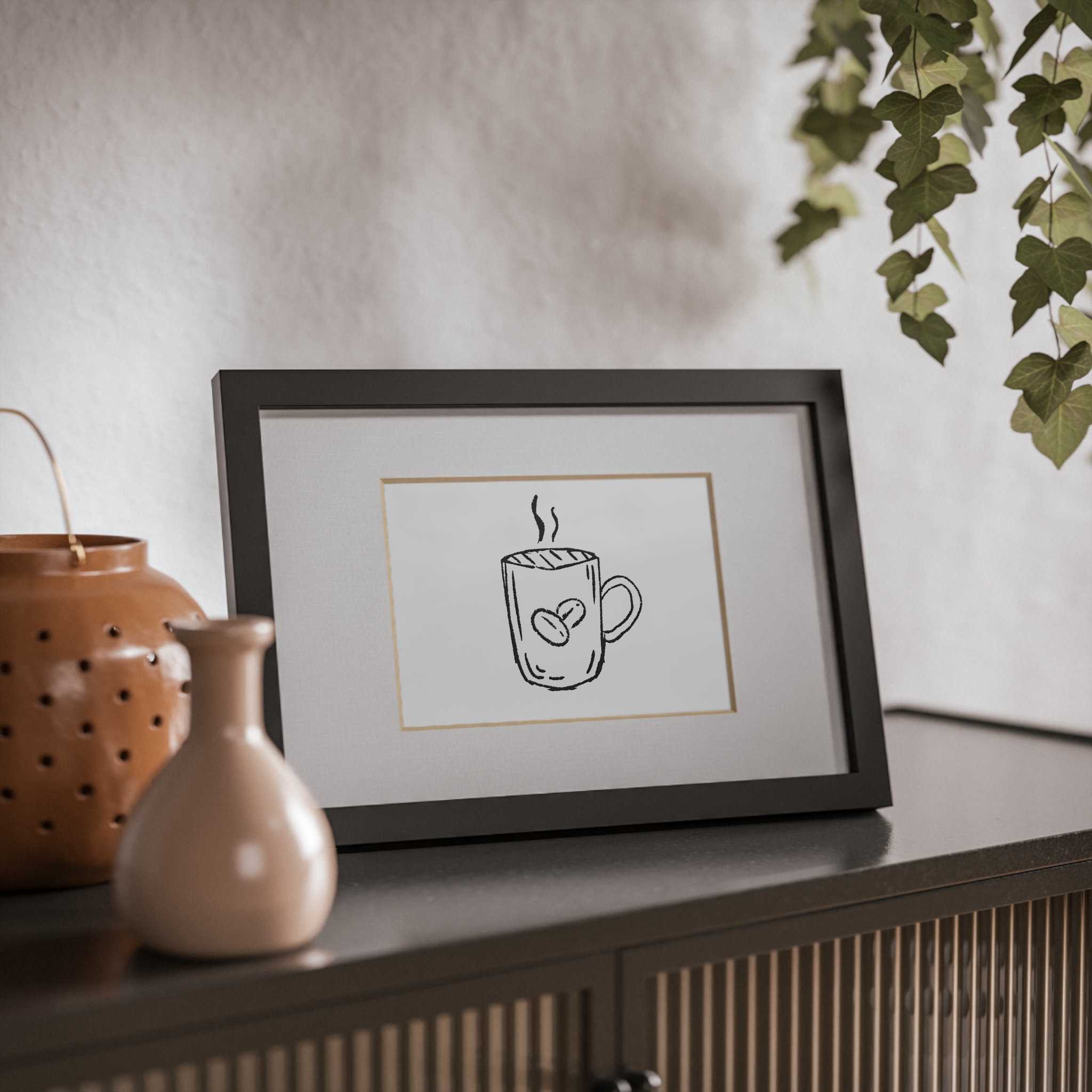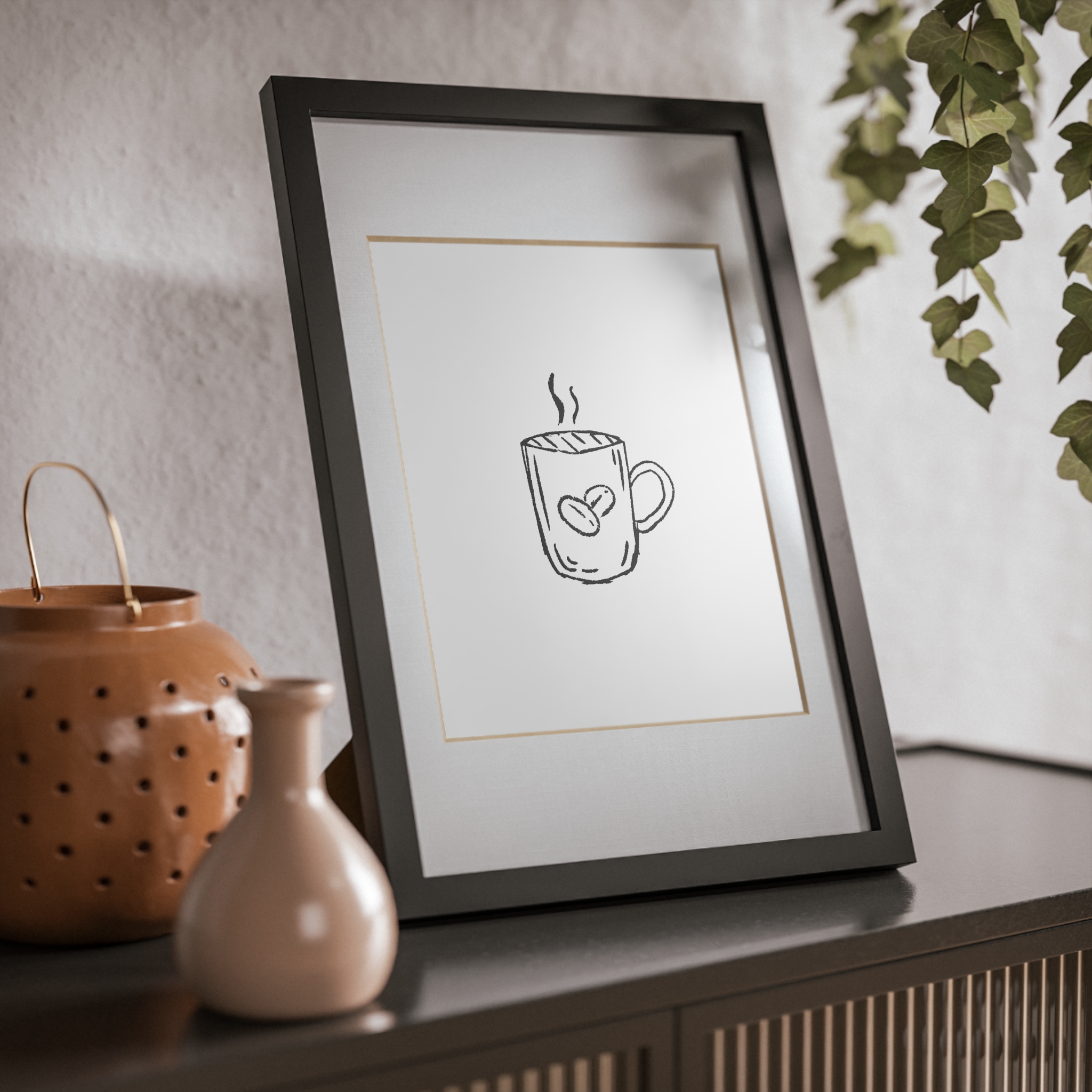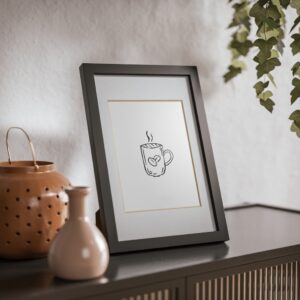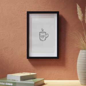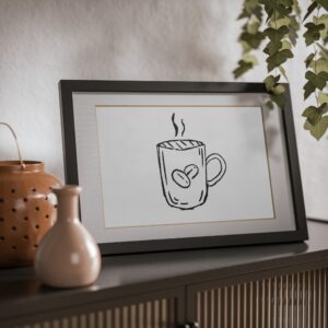 This framed poster brings a quietly confident accent to cozy corners. A crisp print sits behind a white matboard and clear Perspex insert, surrounded by a sleek black MDF frame that reads modern but warm. The soft texture of the 200 gsm paper and vivid printing make the illustration pop without shouting. Hang it on a kitchen wall above a coffee station, lean it on a living room shelf, or gift it to someone who collects simple, thoughtful art — it settles into daily life and makes familiar moments feel curated and calm.
