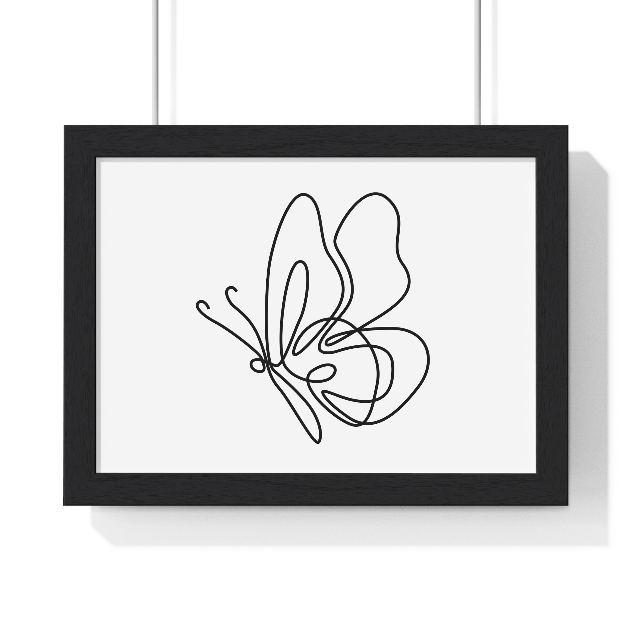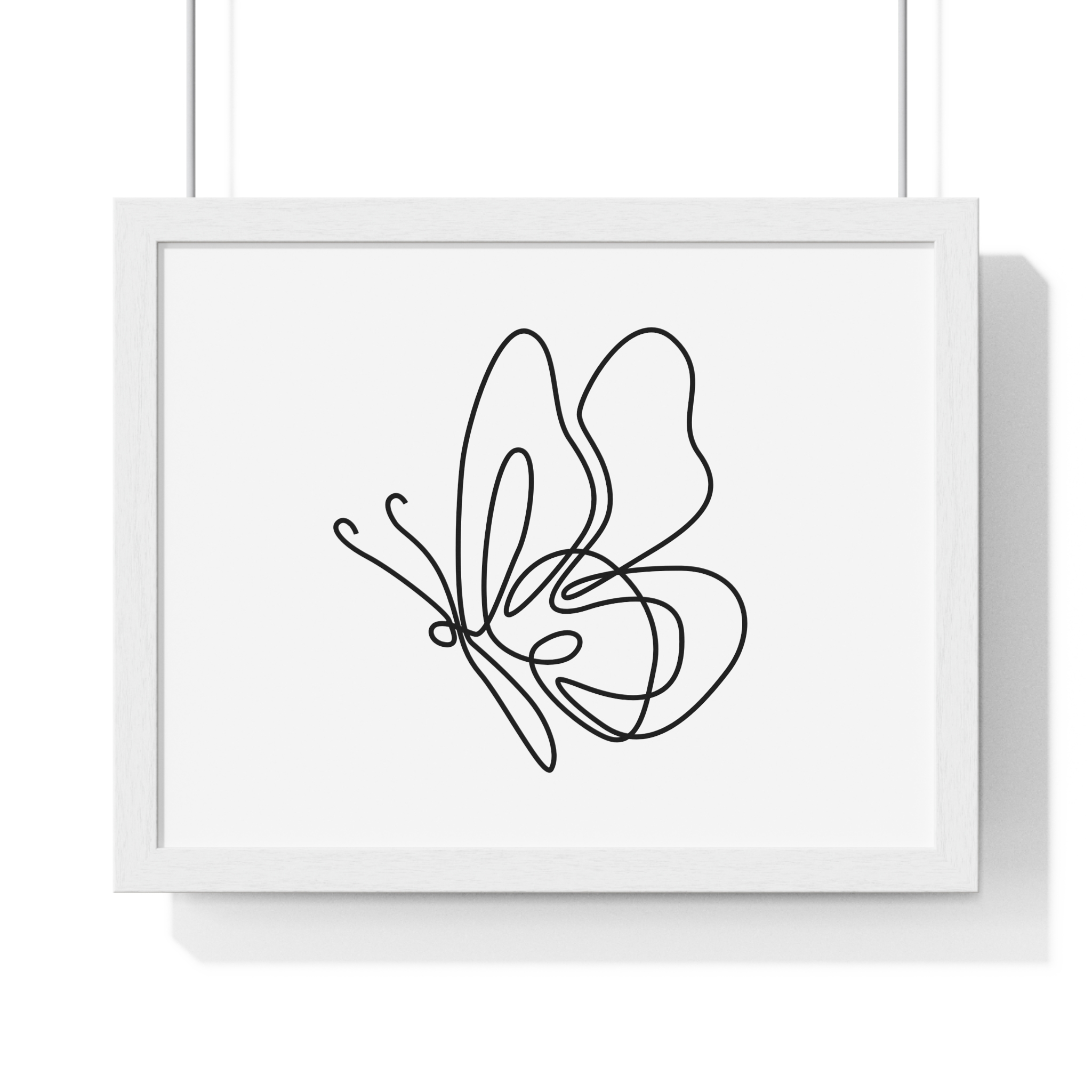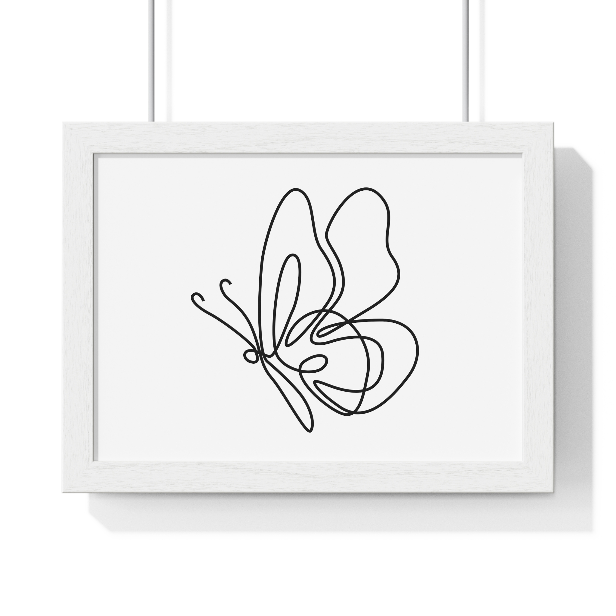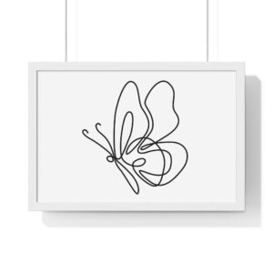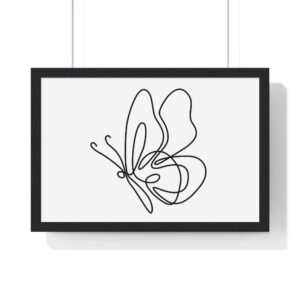 A calm, modern framed poster that brings quiet elegance to a living space. The minimalist single-line butterfly sketch floats on museum-grade matte paper, rendered with rich pigment inks for clean, lasting contrast. The slim wooden frame — offered in black or white — and plexiglass front keep the piece feeling contemporary and light while protecting the print for years. Pre-installed hanging hardware makes placement effortless, and multiple sizes let you scale the artwork from a delicate nook to a statement above a console. For indoor spaces where subtlety matters, this framed print settles into serene corners, bright shelves, or gallery-style walls.