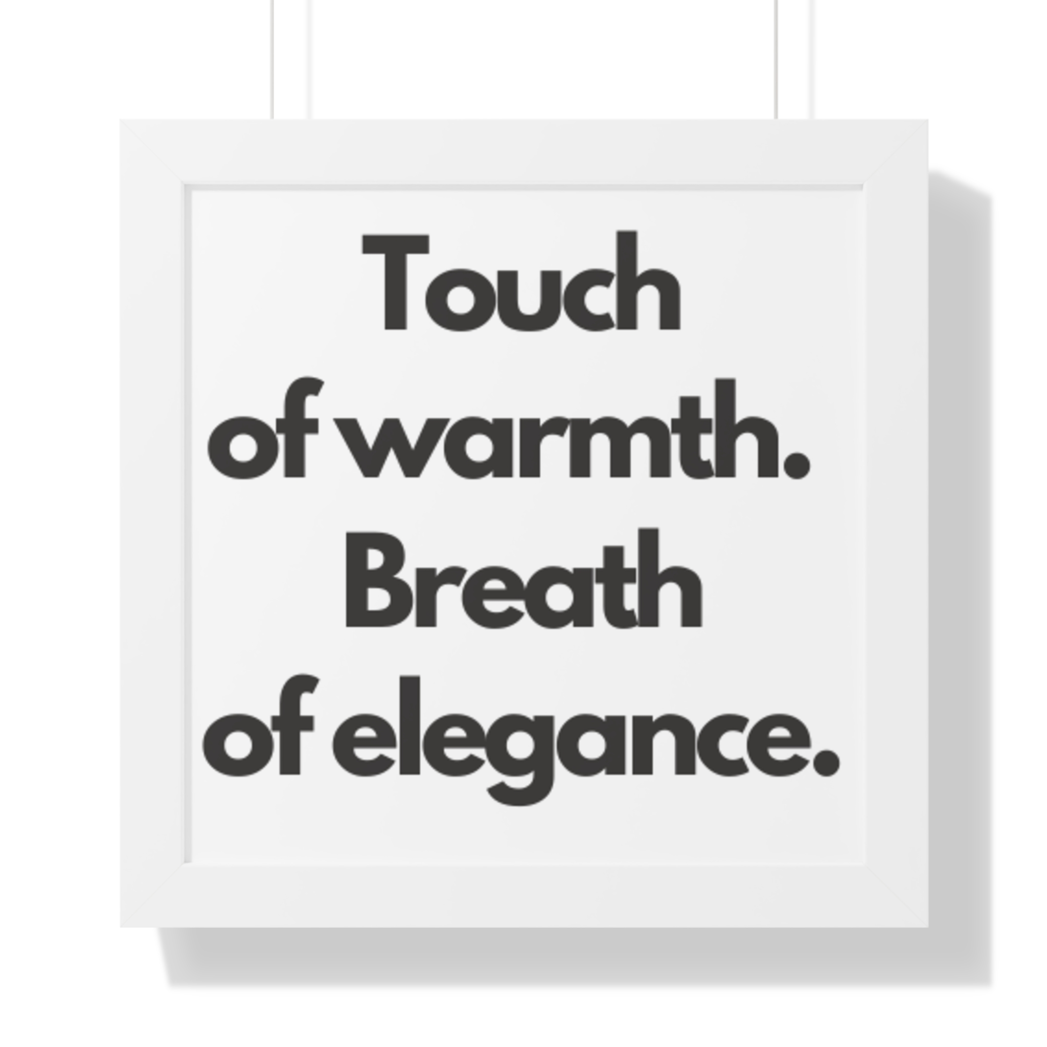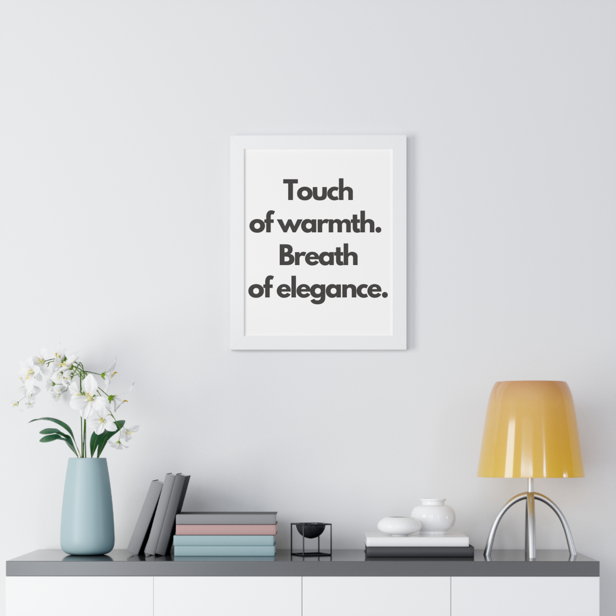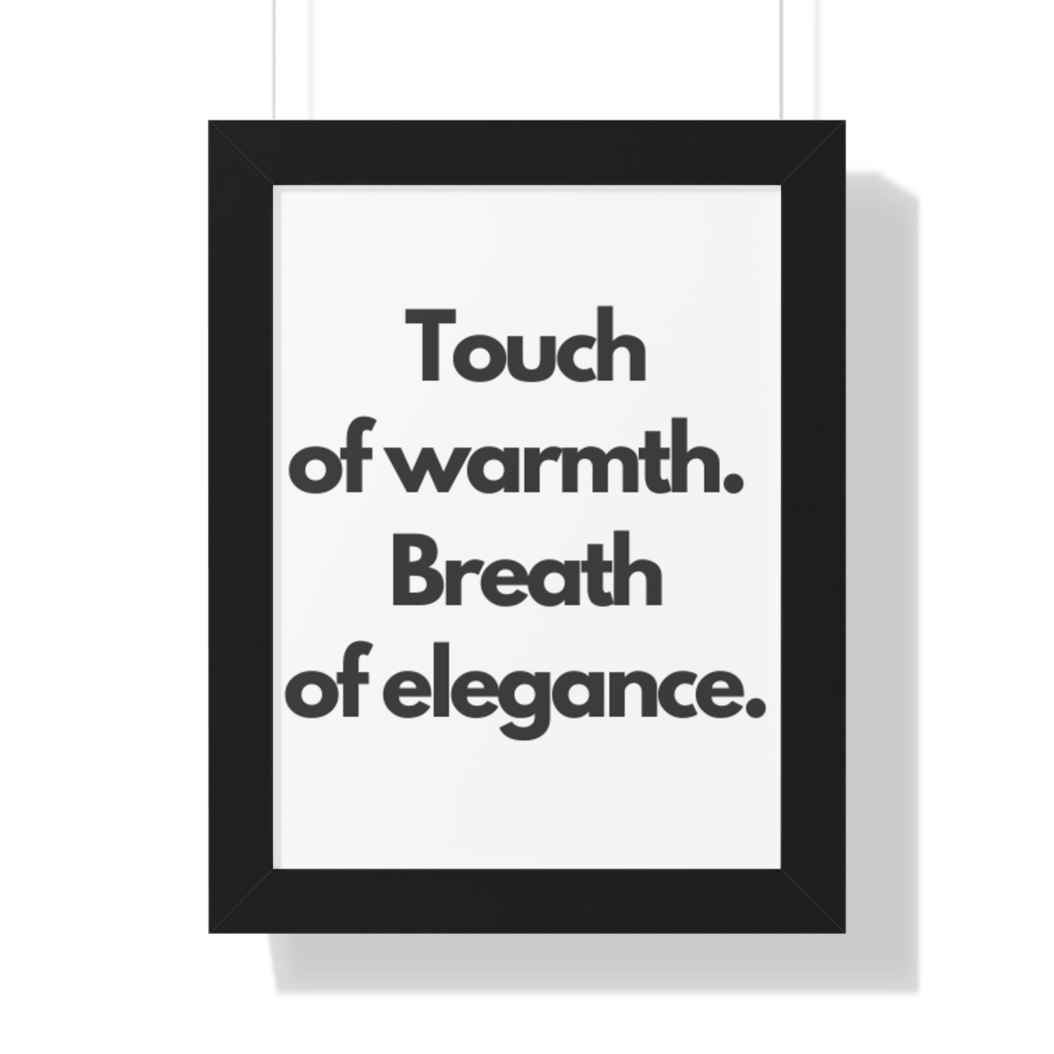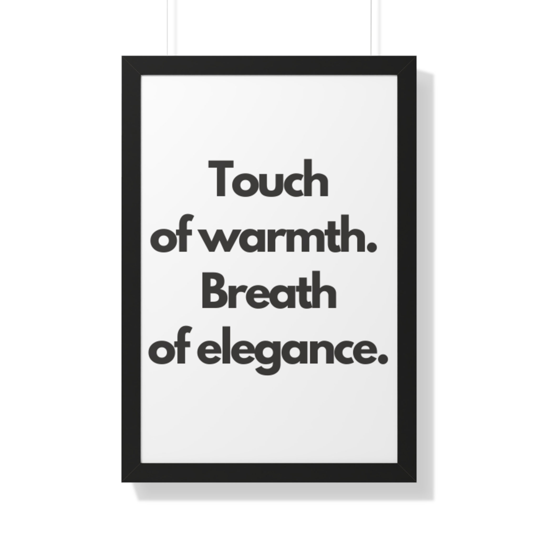 Framed Poster — “Touch of warmth. Breath of elegance.” Minimal Typography Wall Art