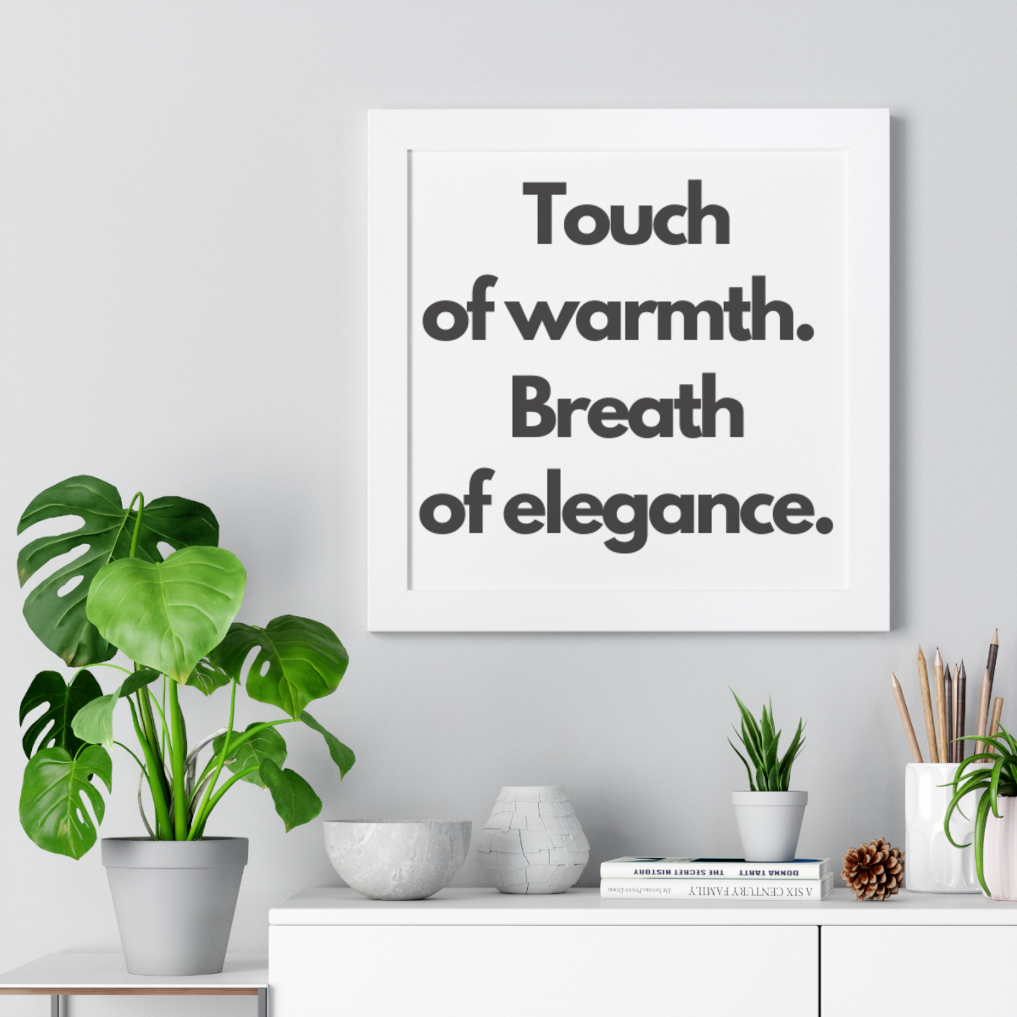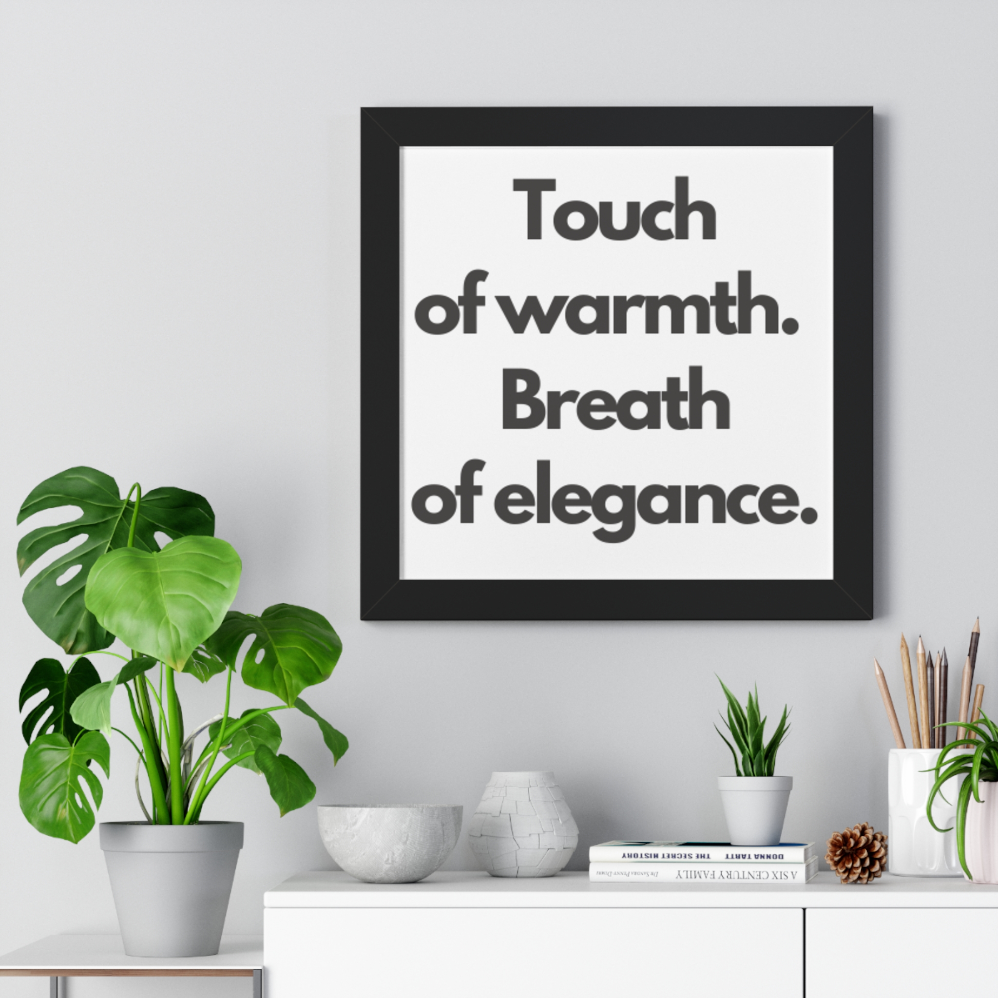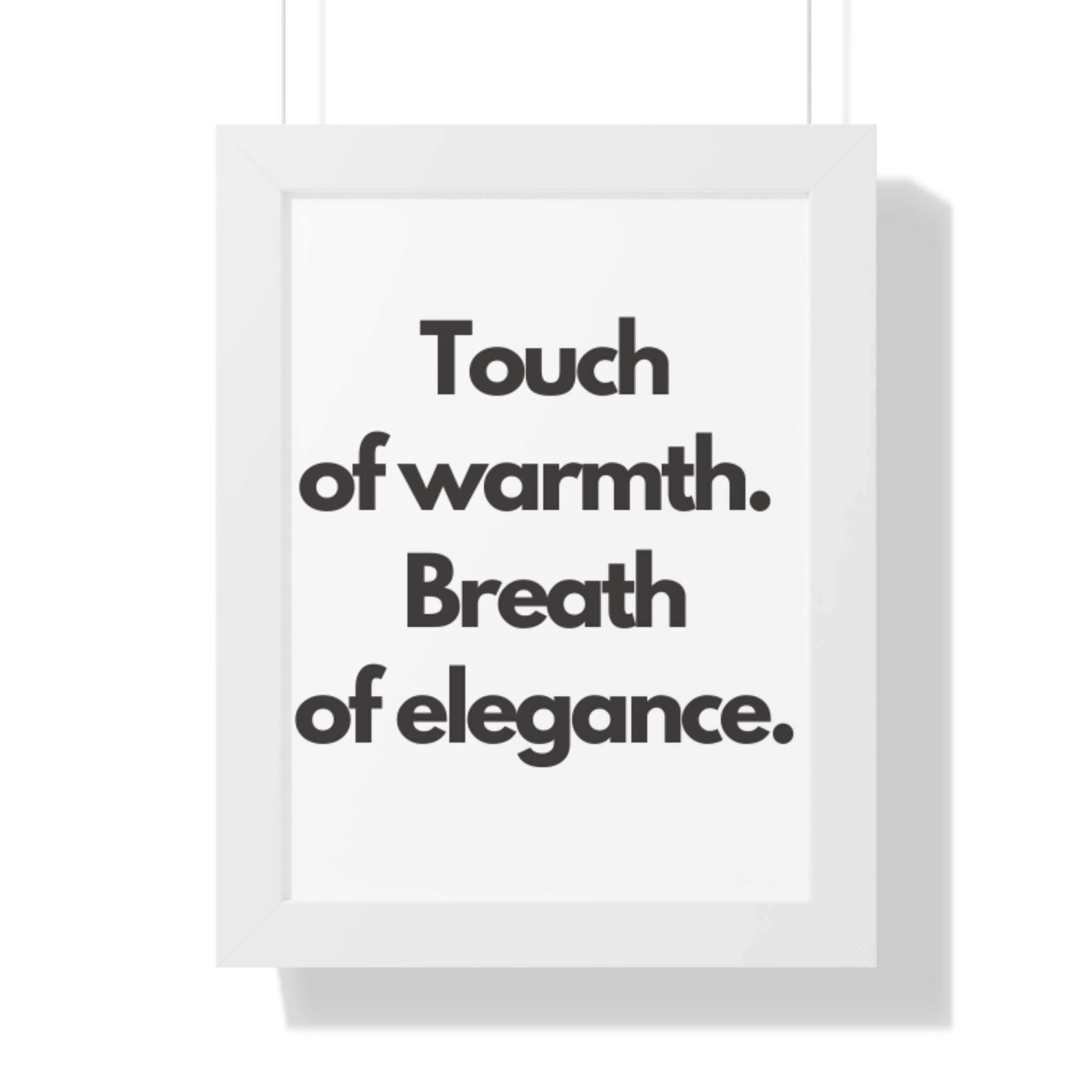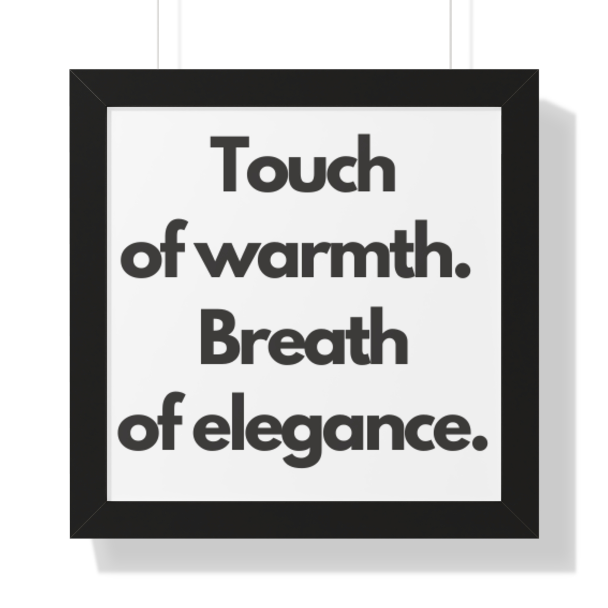 Framed Poster — “Touch of warmth. Breath of elegance.” Minimal Typography Wall Art
