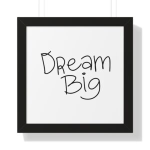 A clean, framed vertical poster that brings a calm, encouraging voice into everyday rooms. The simple hand-lettered “Dream Big” sits on museum-quality matte paper, surrounded by a slim, modern frame in black, white, or walnut. The protective acrylic cover keeps the print crisp while the built-in or included hanging hardware makes wall placement easy. It’s a subtle, uplifting presence that fits entryways, home offices, nurseries, or any quiet corner that needs a gentle nudge to keep reaching.