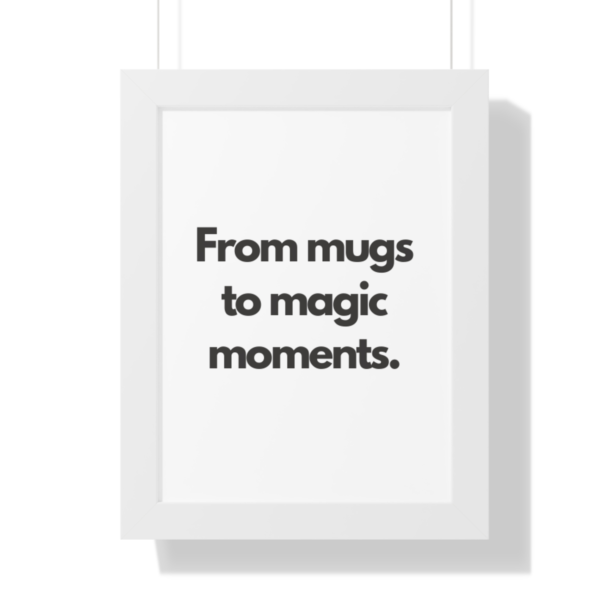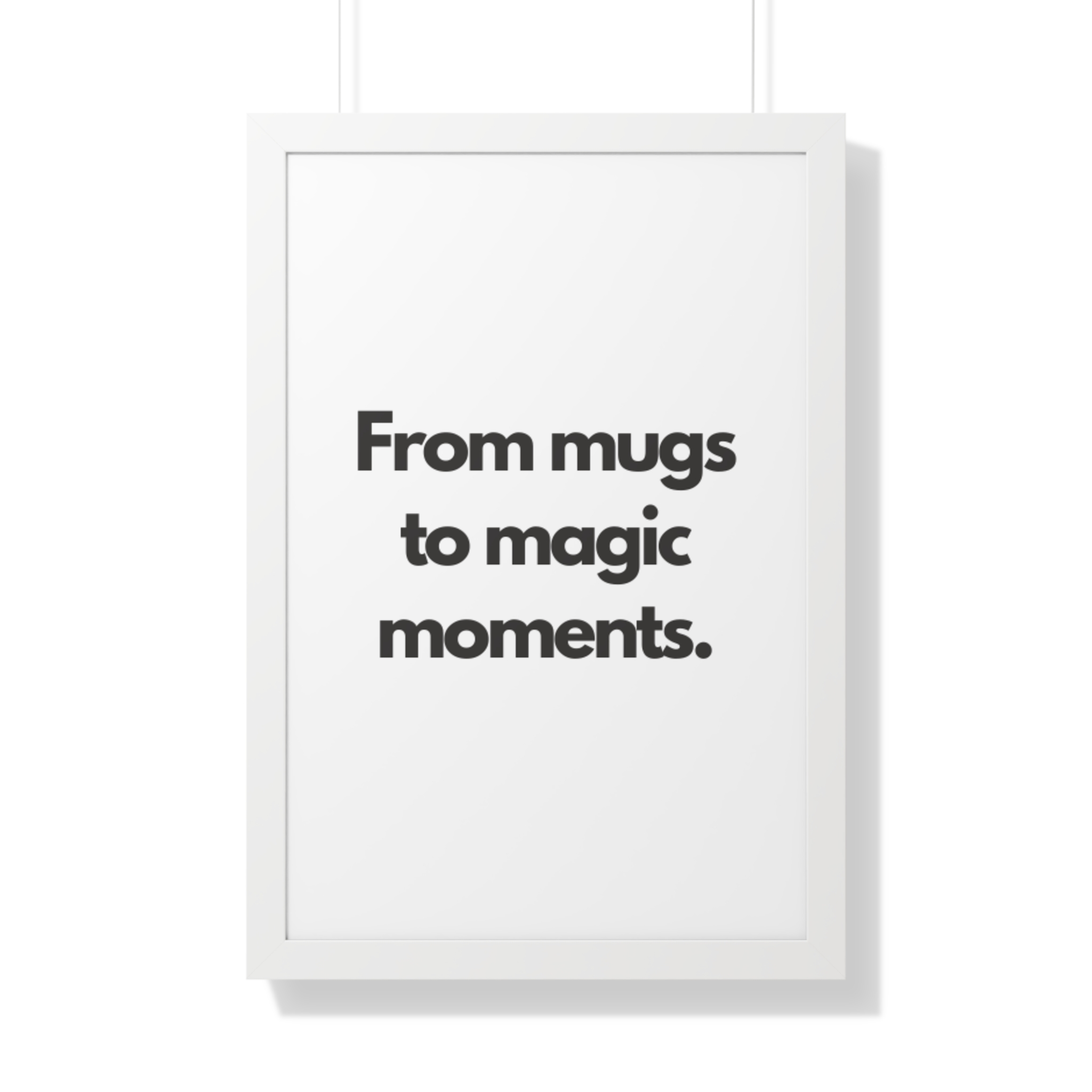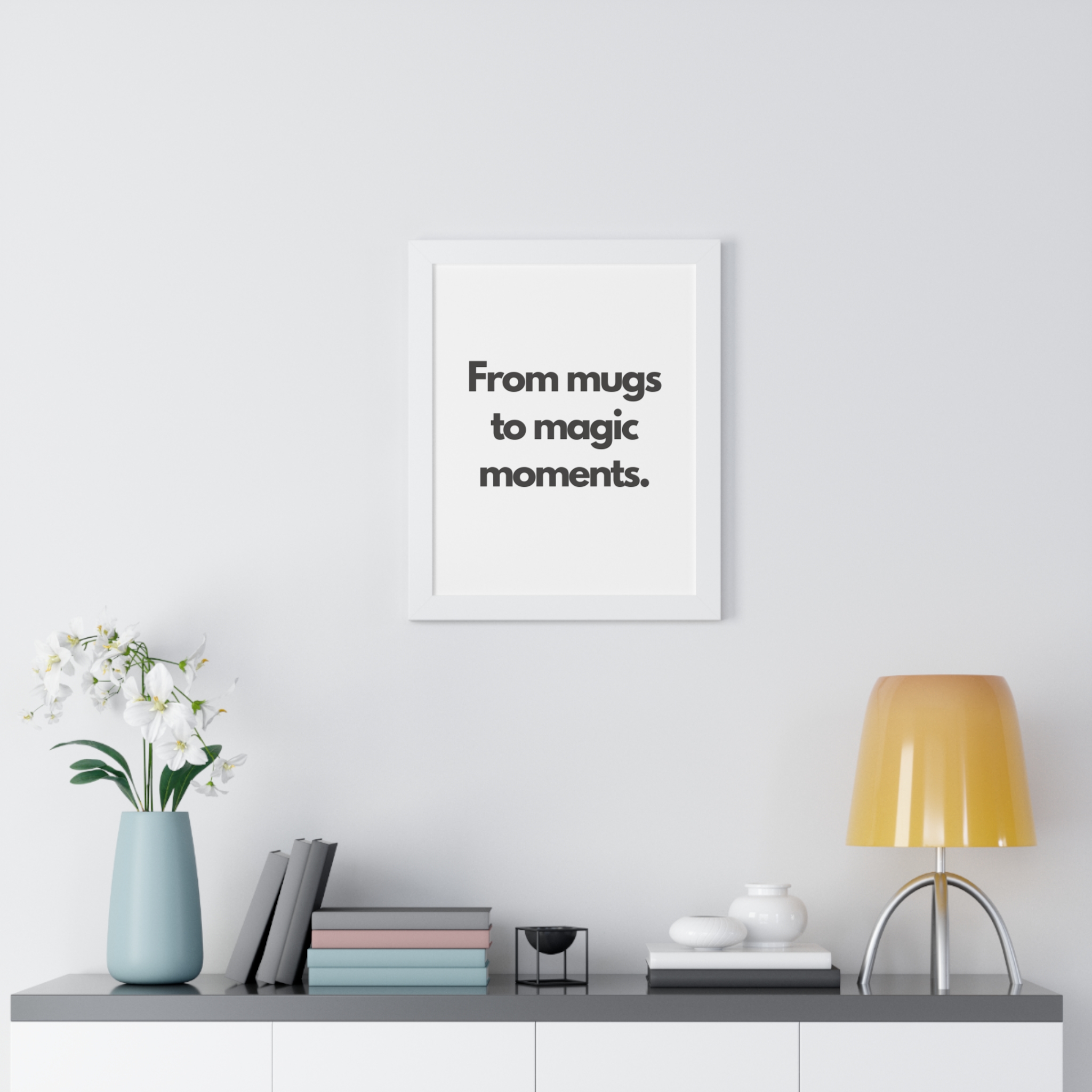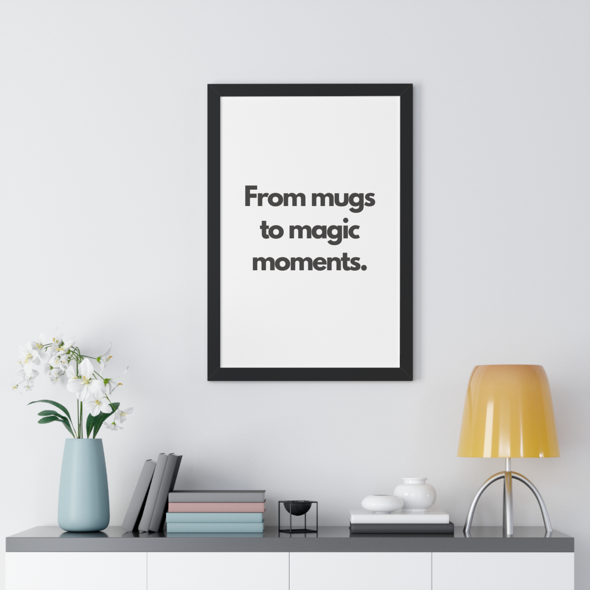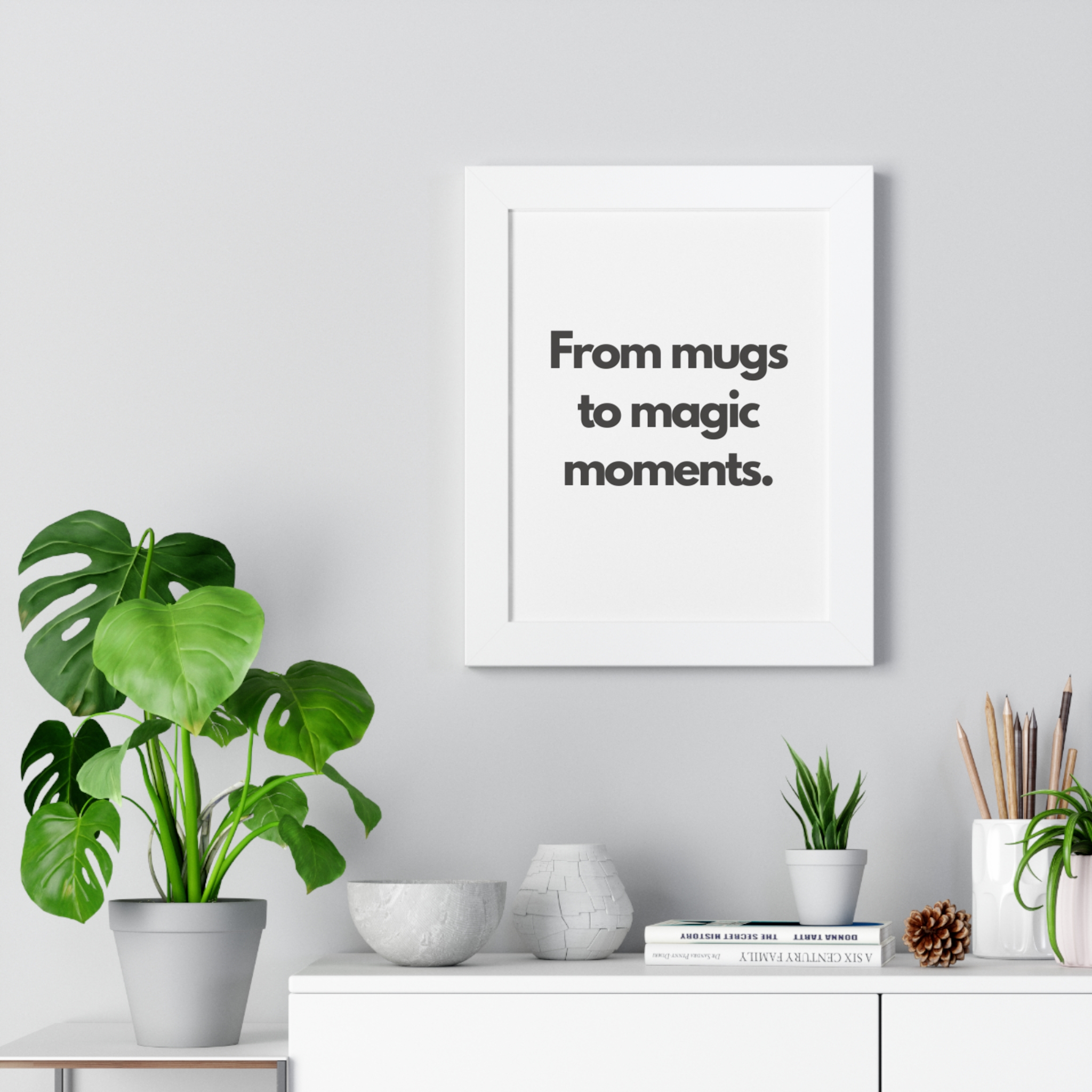 Framed Vertical Poster — “From mugs to magic moments.” Minimal Typography Wall Art