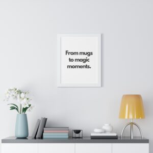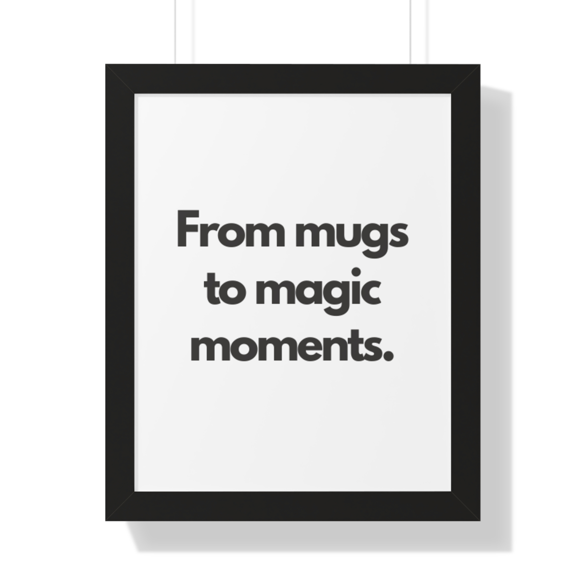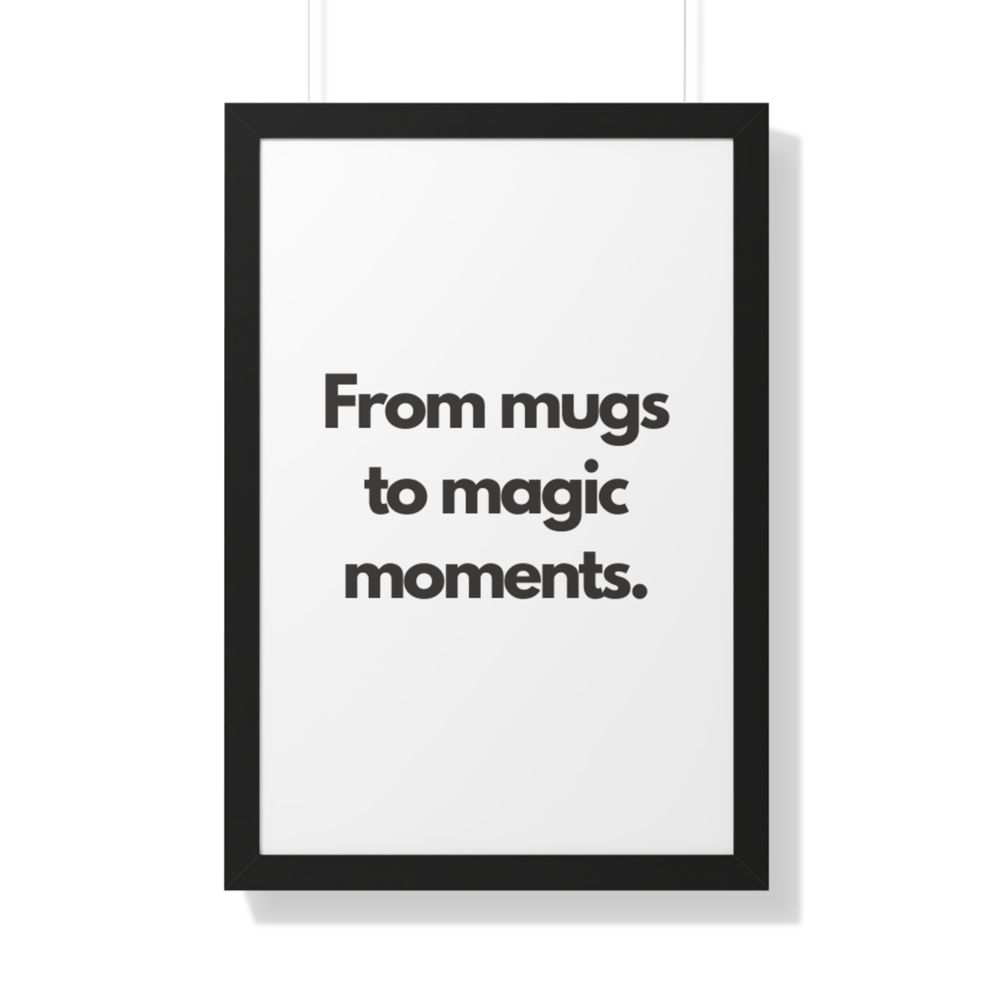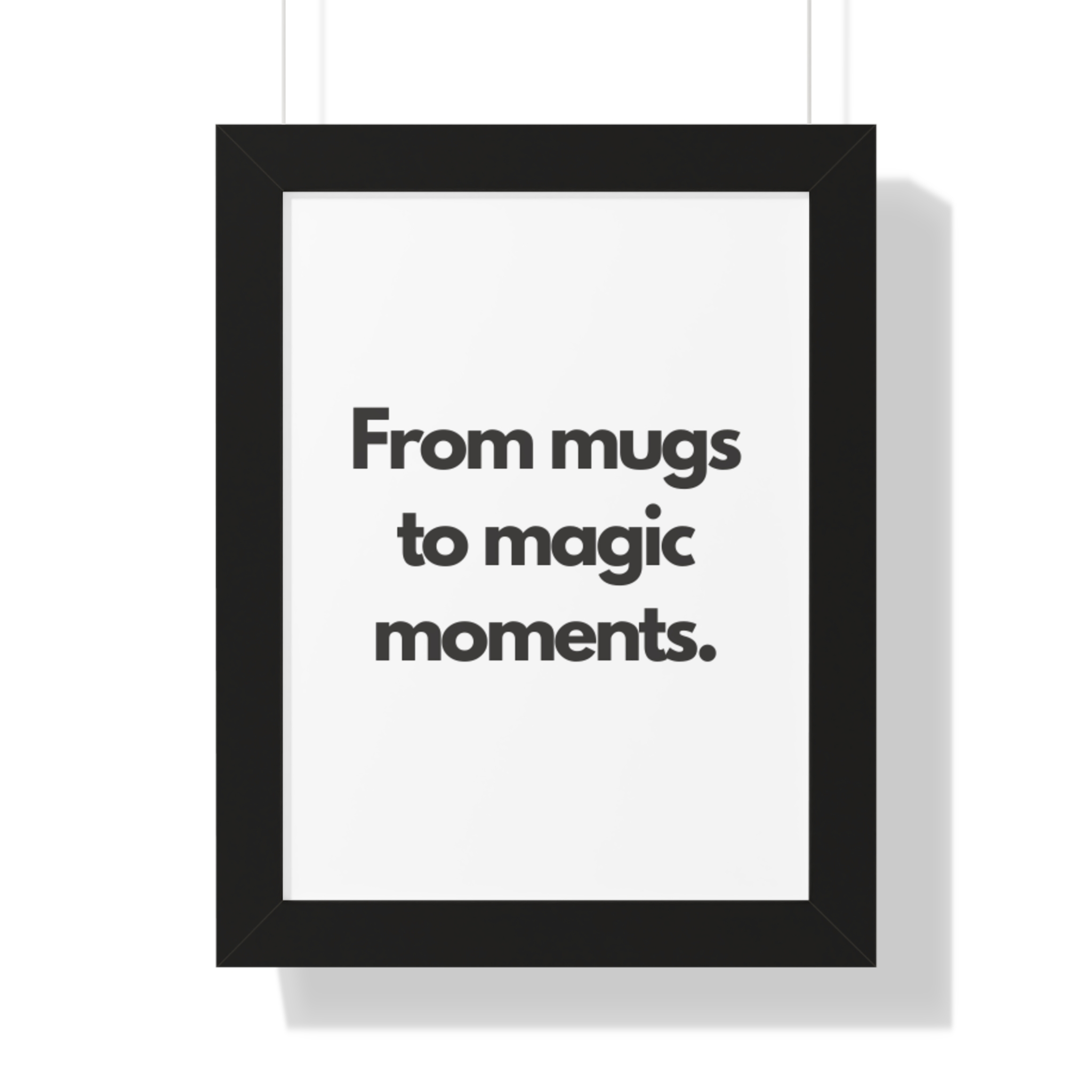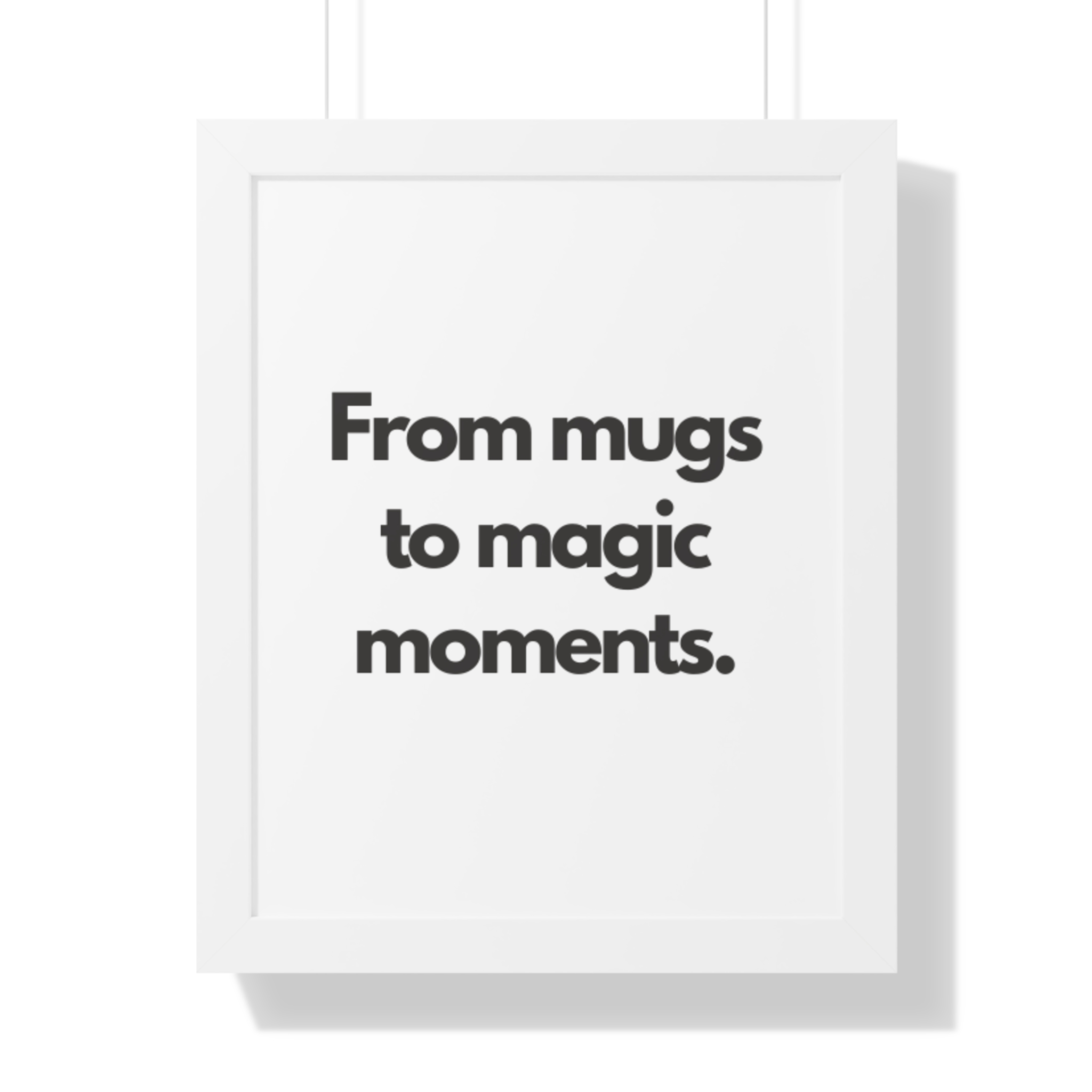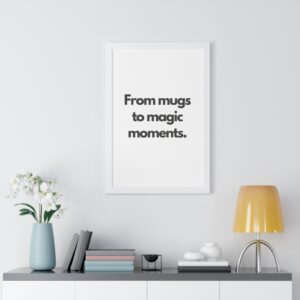 Framed Vertical Poster — “From mugs to magic moments.” Minimal Typography Wall Art