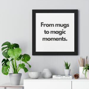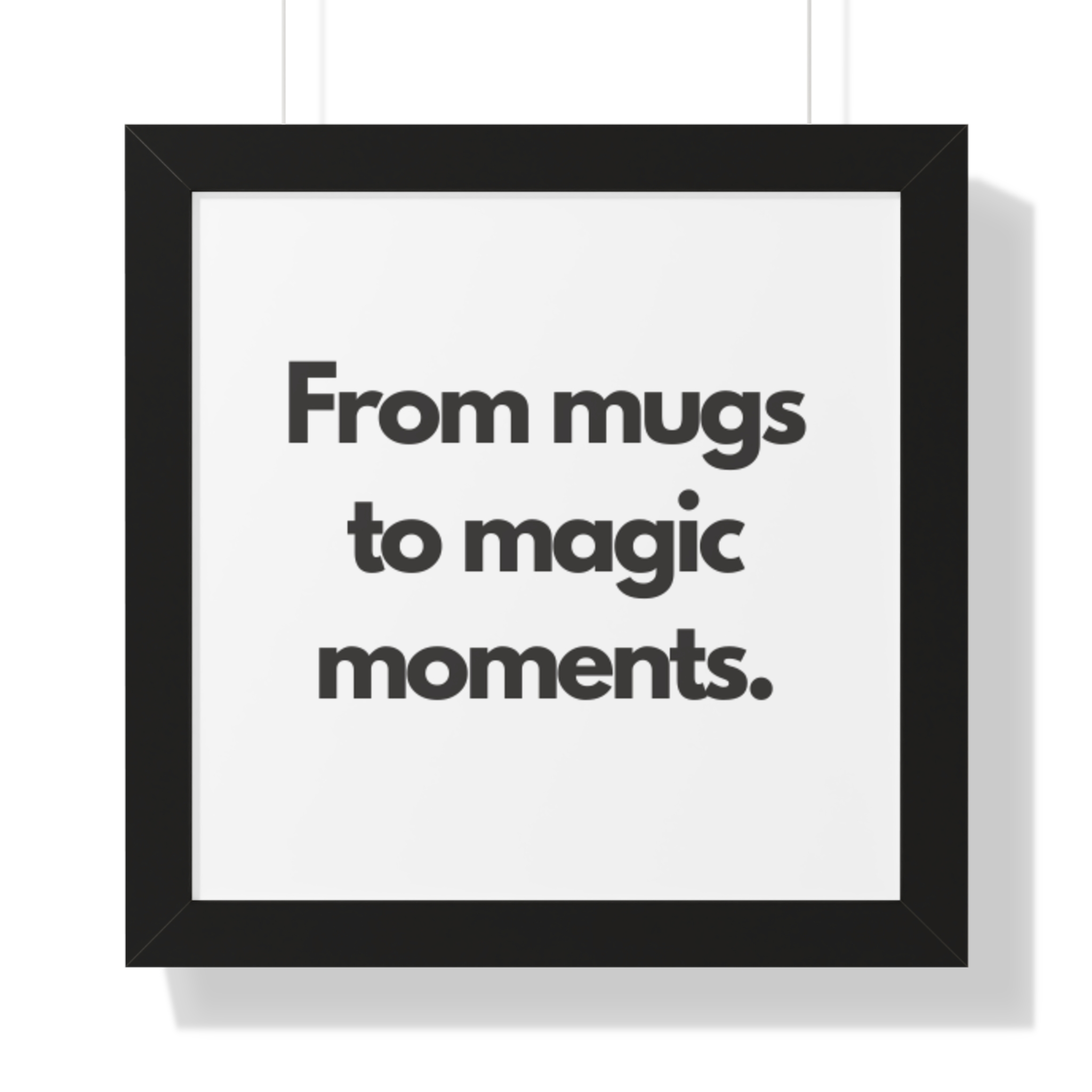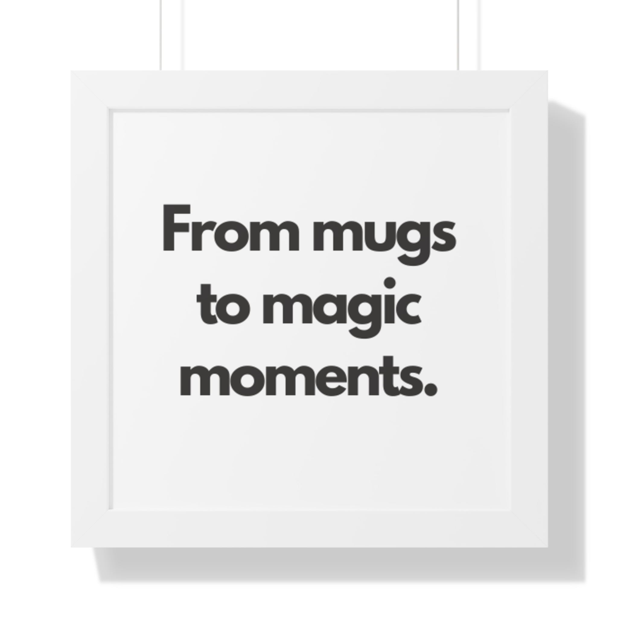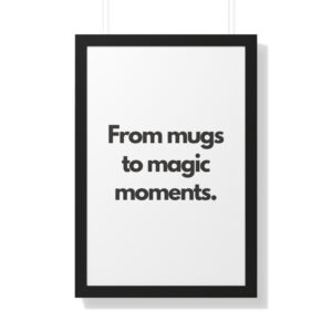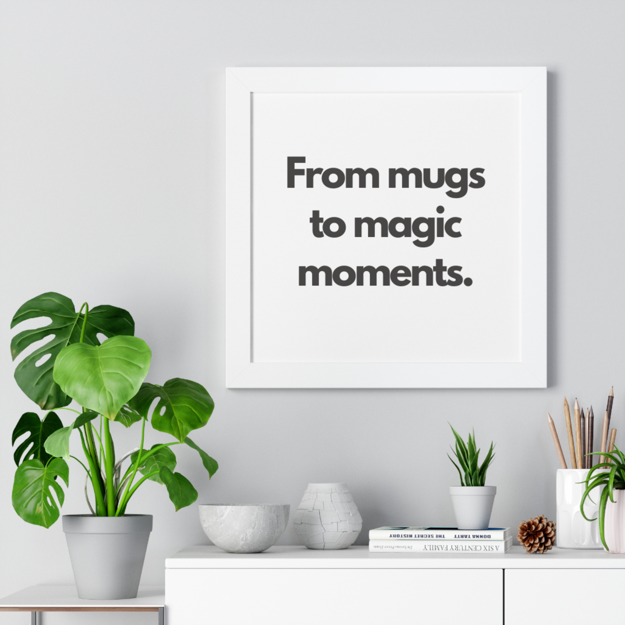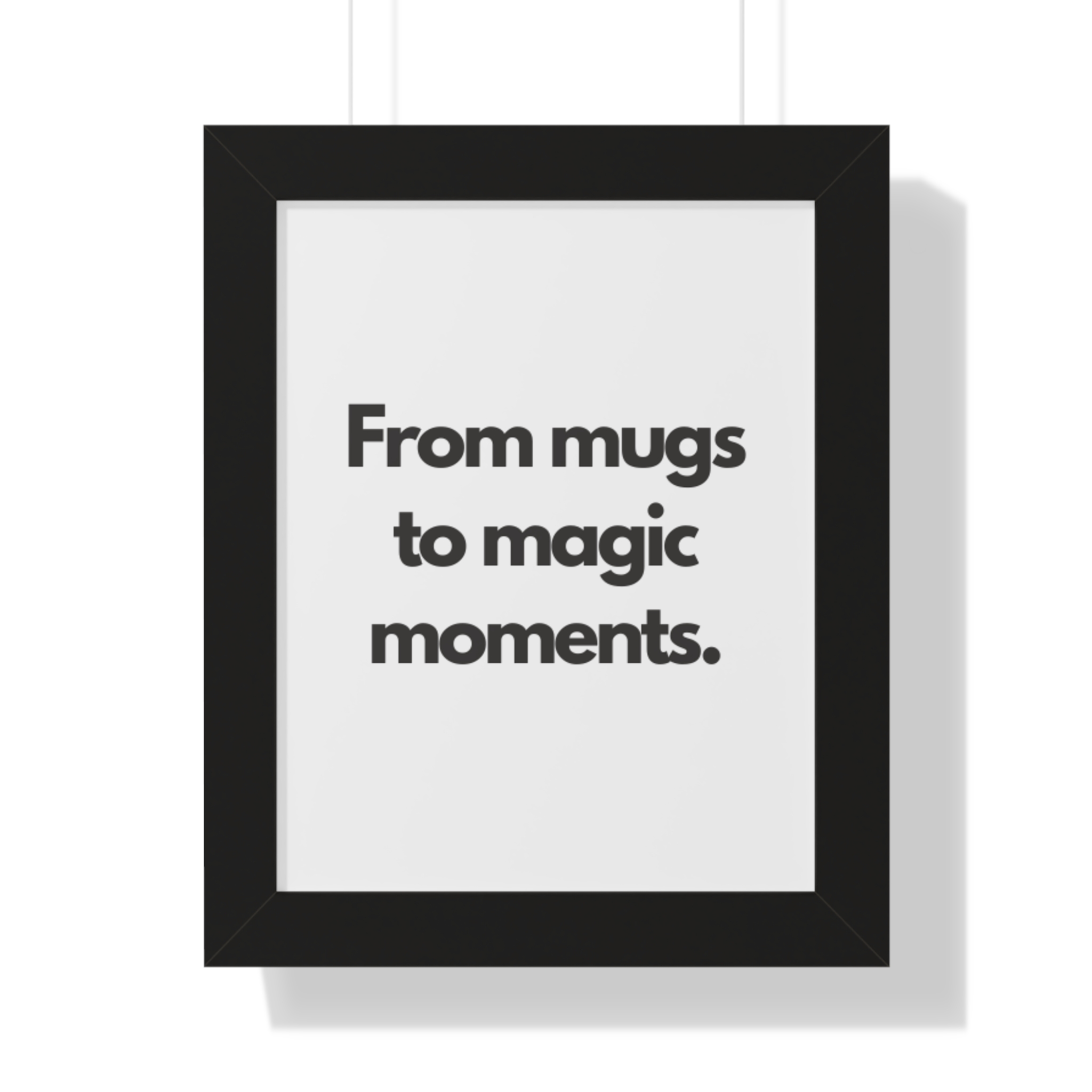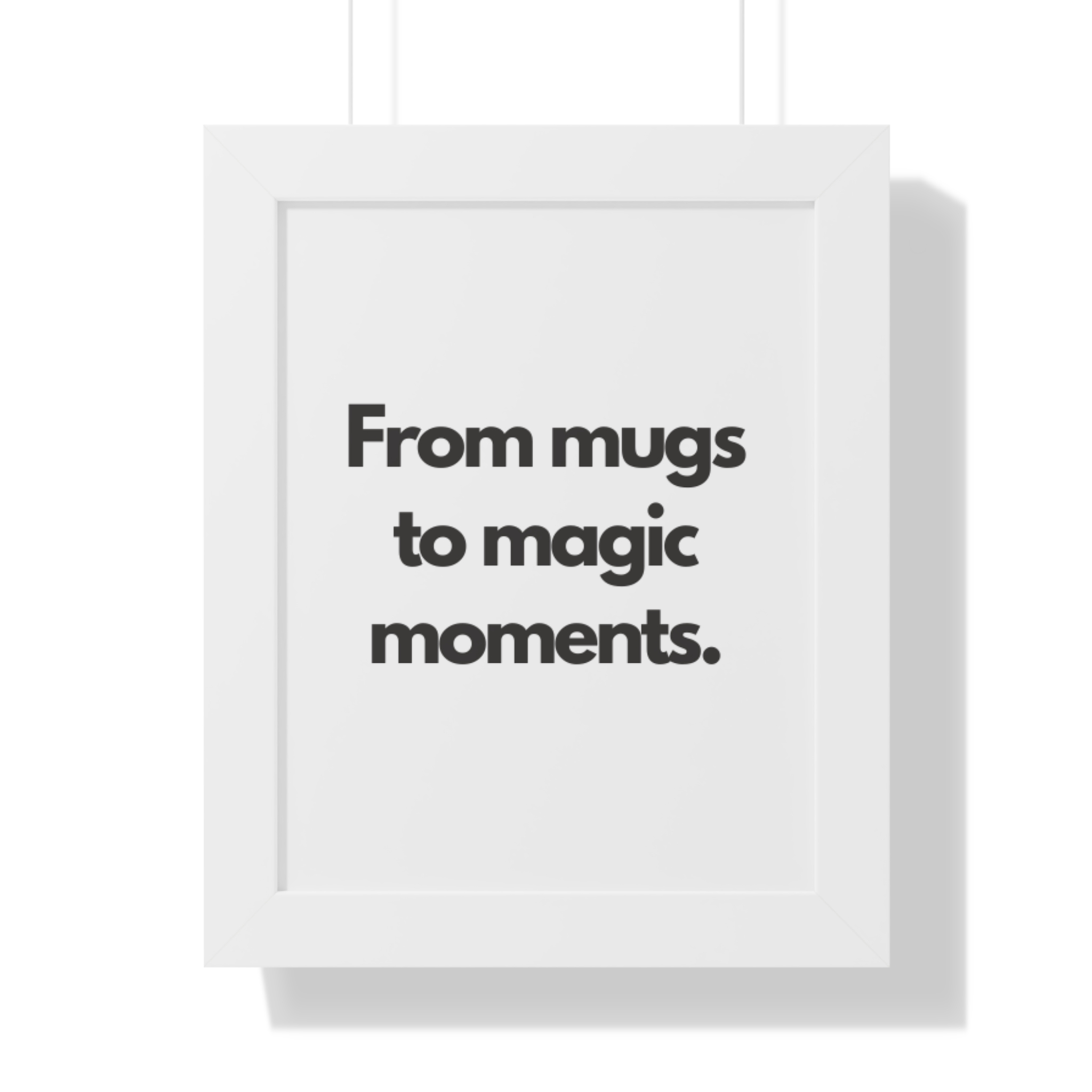 Framed Vertical Poster — “From mugs to magic moments.” Minimal Typography Wall Art