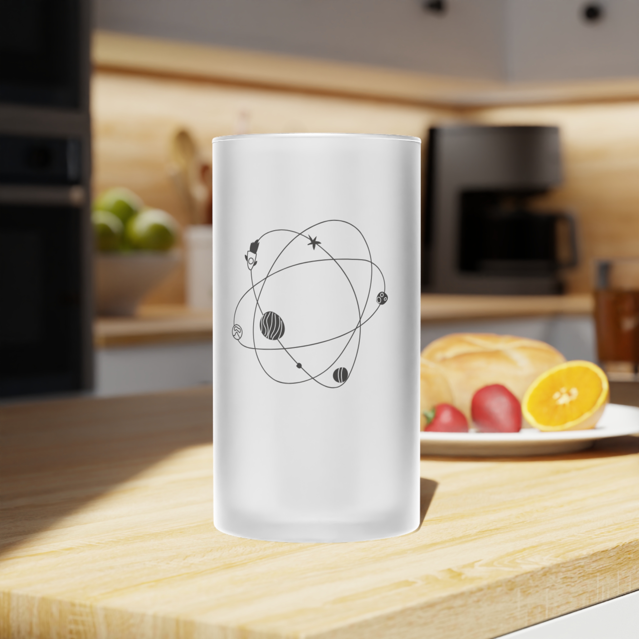 Frosted Glass Beer Mug — Minimal Solar System Planets Design