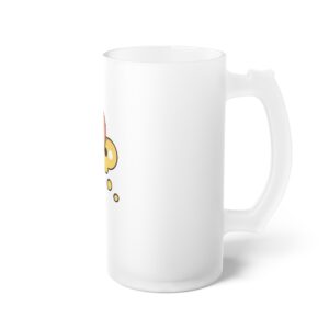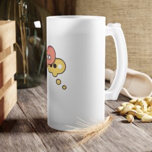 This frosted glass beer mug brings a soft, tactile presence to happy hours and slow Sunday afternoons. The full-wrap frosted finish mutes light and gives the bright, playful speech-bubble artwork a gentle, modern contrast. It feels cool and substantial in the hand, tall enough to cradle a generous 16 oz pour, and the handle keeps your fingers away from condensation. Quietly whimsical, it fits on a cluttered kitchen shelf, a dorm-room minibar, or a bookshelf turned beverage station—wherever conversation and comfort collide.