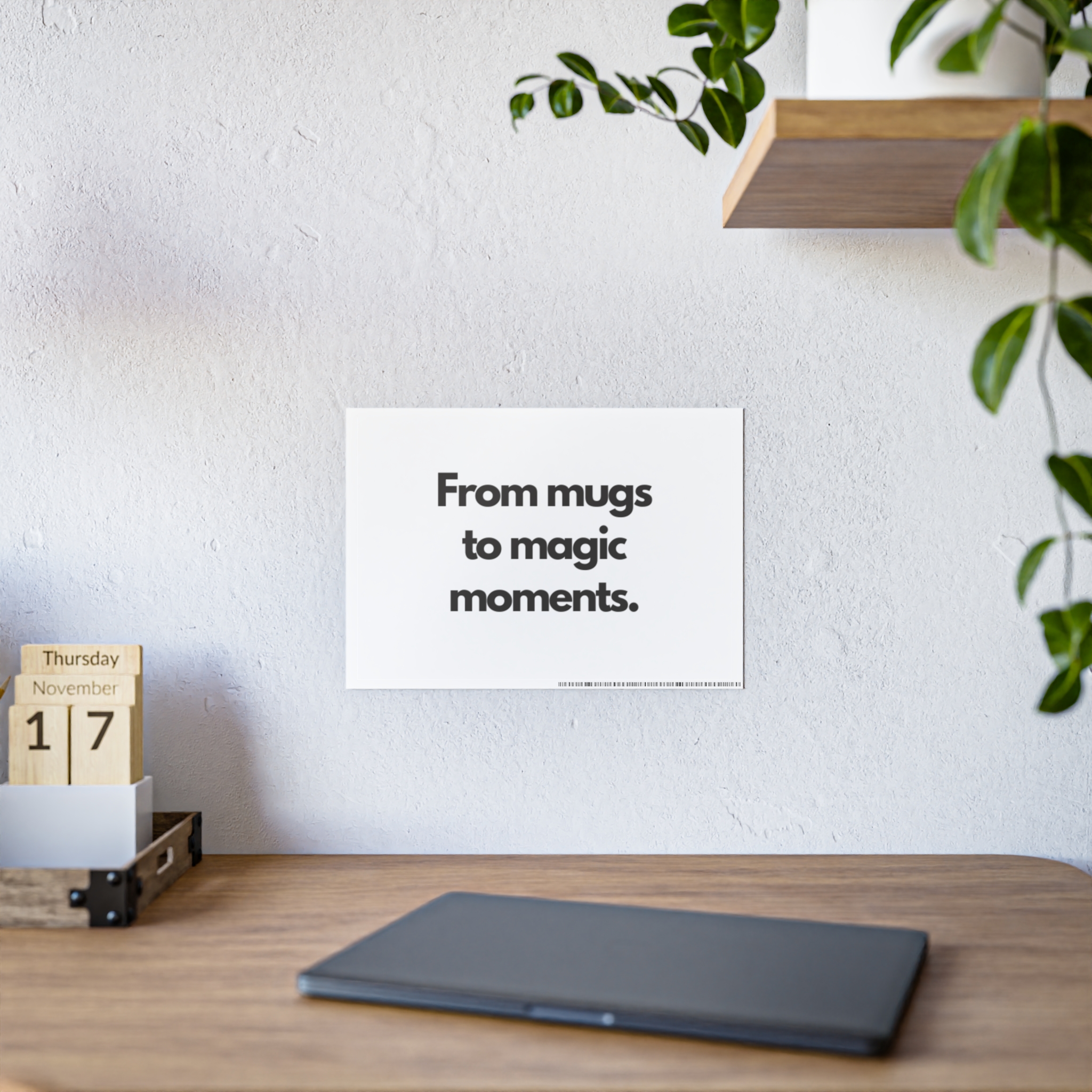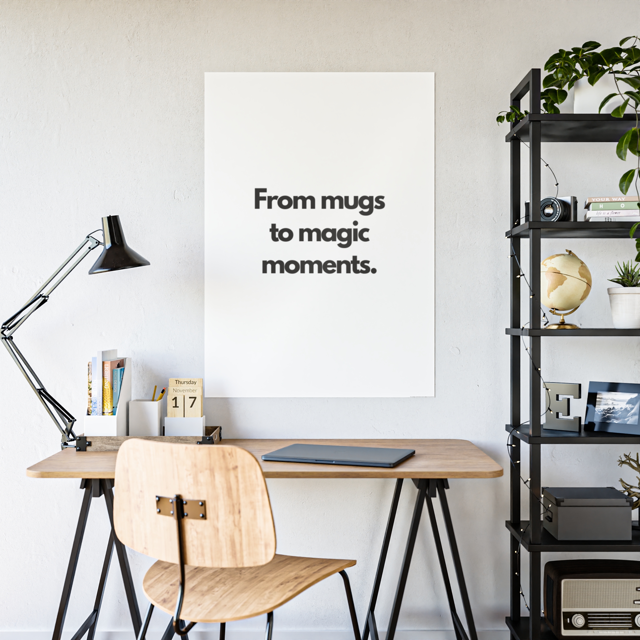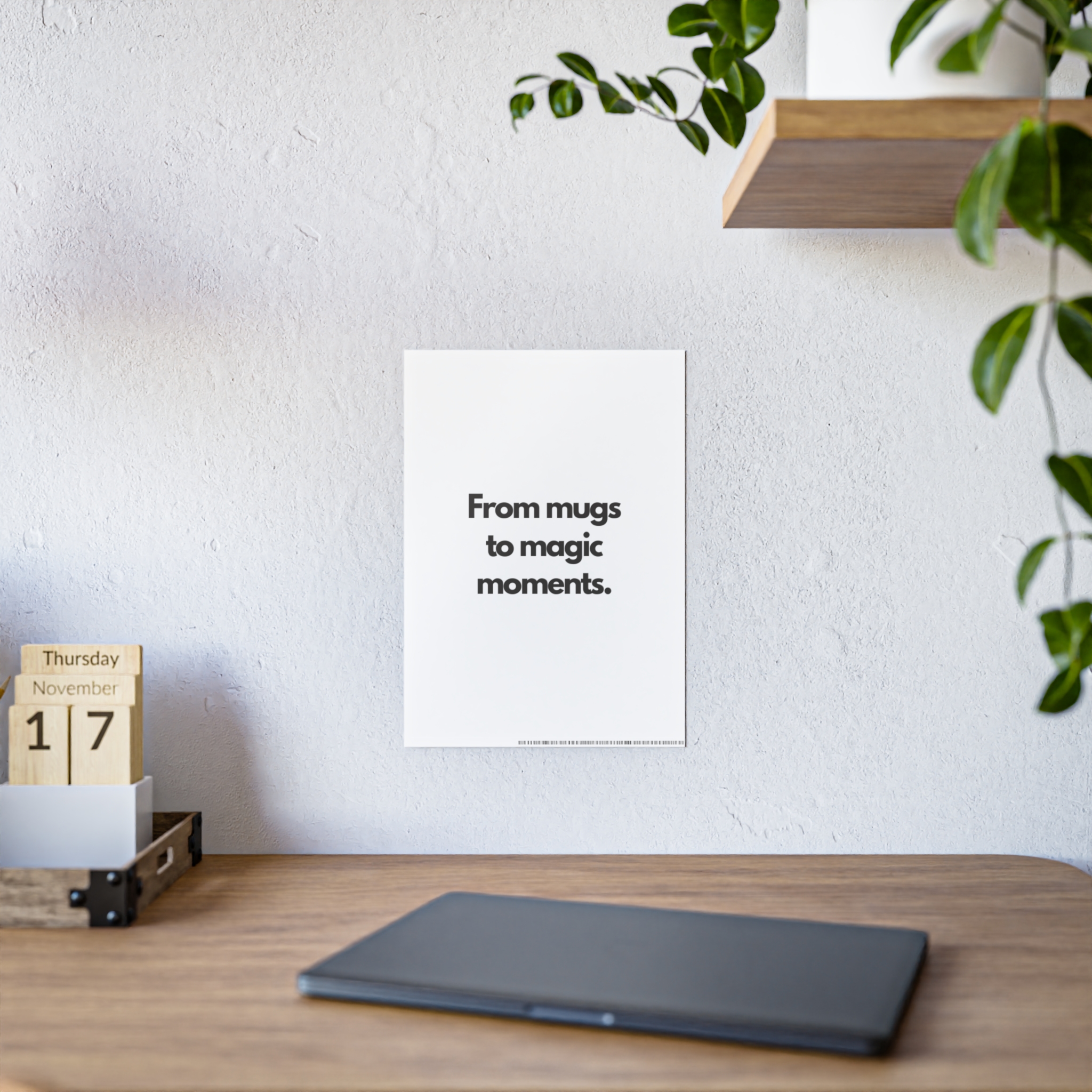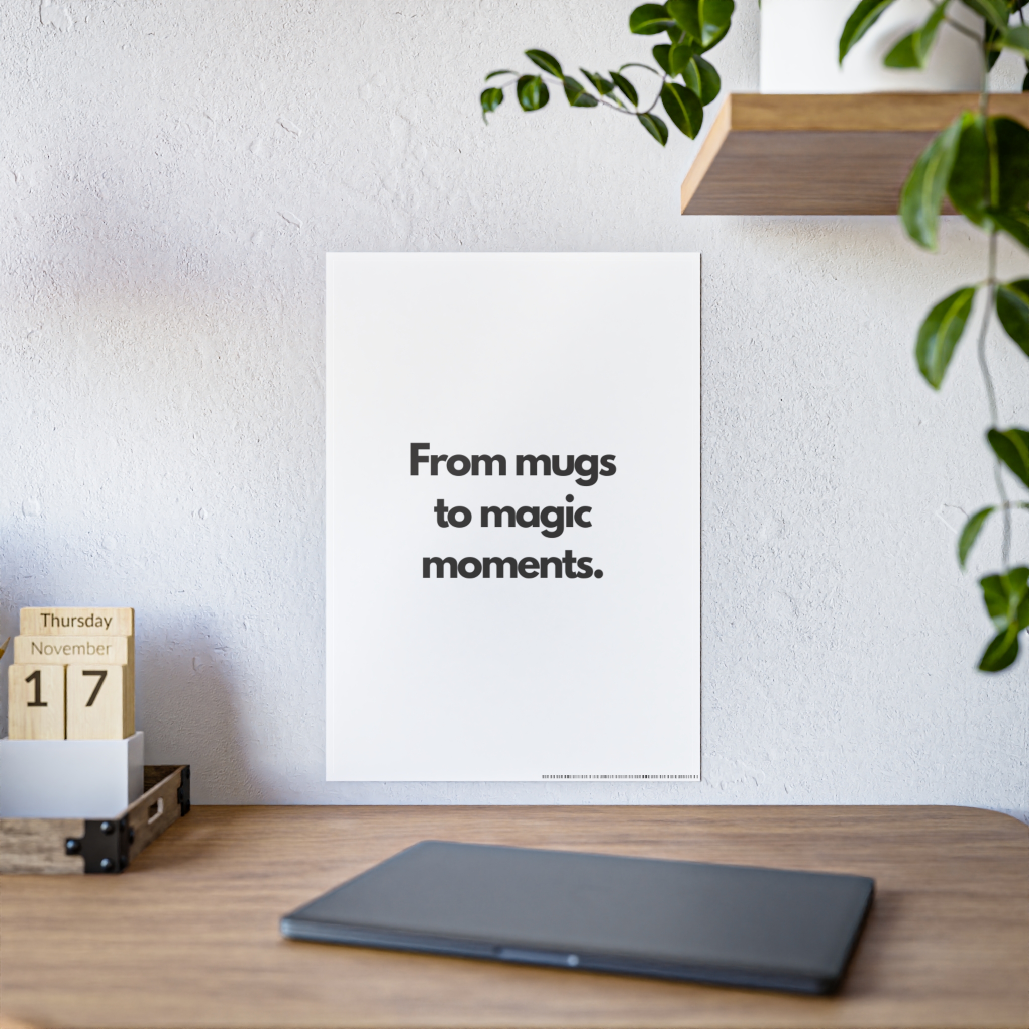 A glossy poster that brings quiet confidence to small spaces. Clean, bold typography sits on a bright white field, turning a simple sentence into a moment of pause. Hung above a desk, propped on a shelf, or layered with other prints, this poster adds a modern, minimal touch that reads like a friendly reminder — gentle, clever, and unobtrusive. The high-gloss surface makes blacks pop and gives the piece a subtle sheen that catches light without overwhelming a room. It suits creative nooks, coffee corners, and office walls where a short line can spark a grin or steady focus.