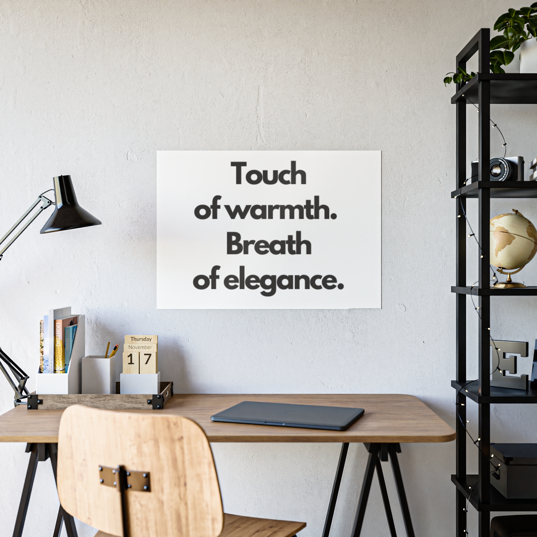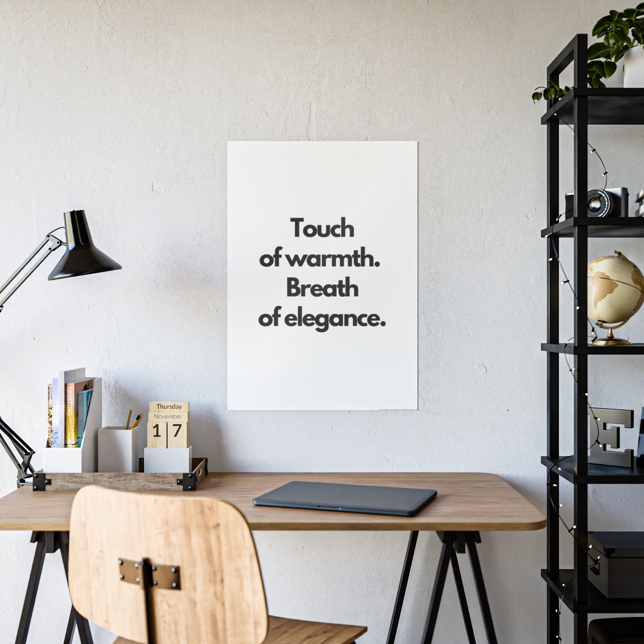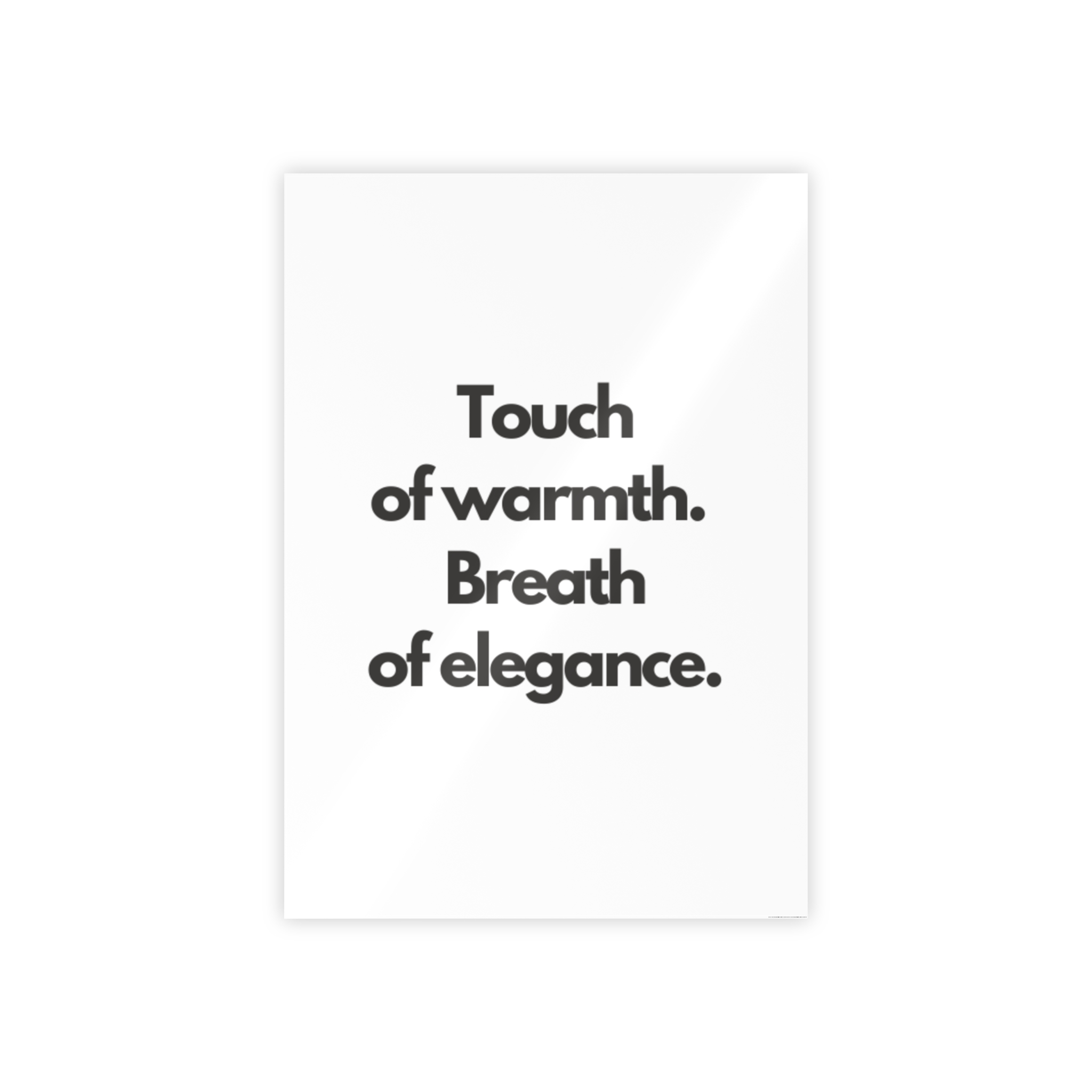 Bright, glossy posters that speak plainly and elegantly. These prints bring bold, high-contrast typography into any space — a calm declaration on a crisp white field. They settle into minimalist interiors, work desks, and quiet reading nooks, giving a room a thoughtful, modern voice. Hung above a home office, leaning on a shelf, or framed in a hallway, the poster reads like a quiet reminder: clarity, warmth, and style.