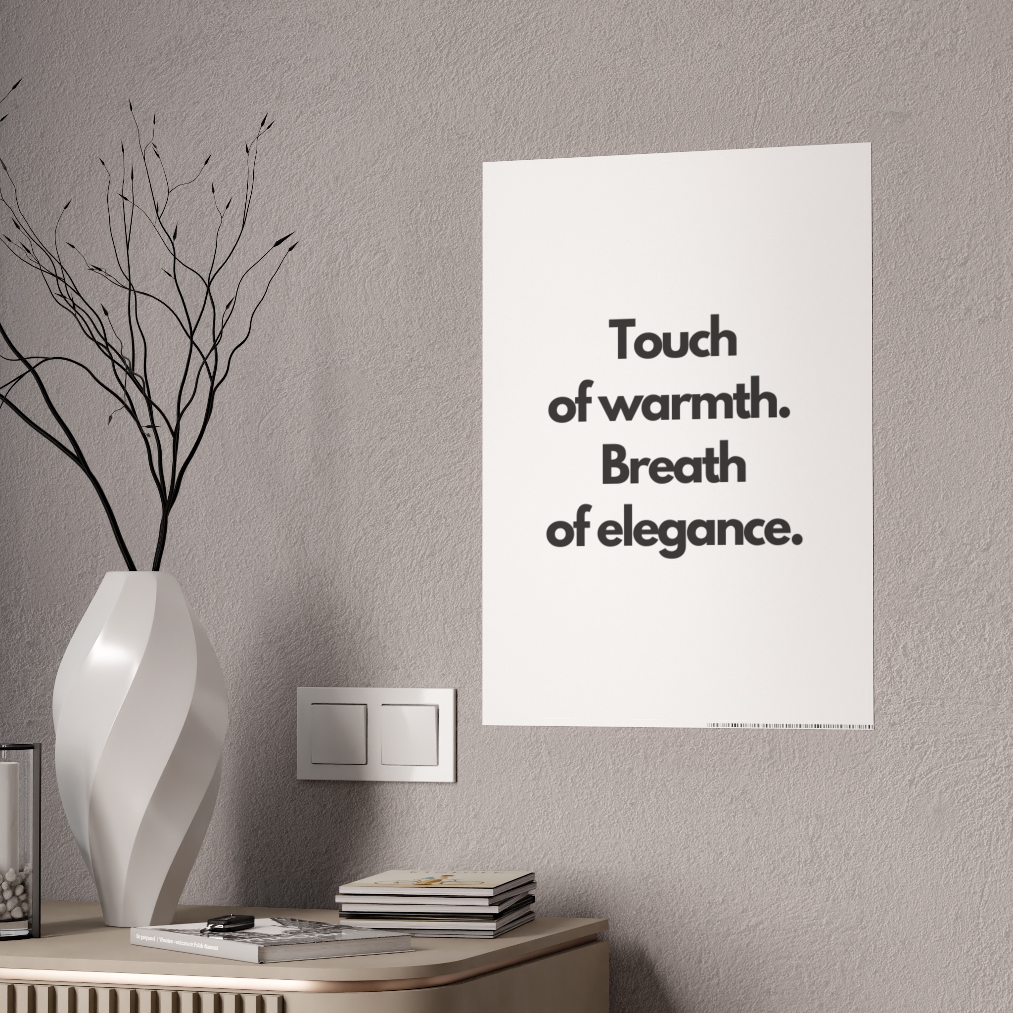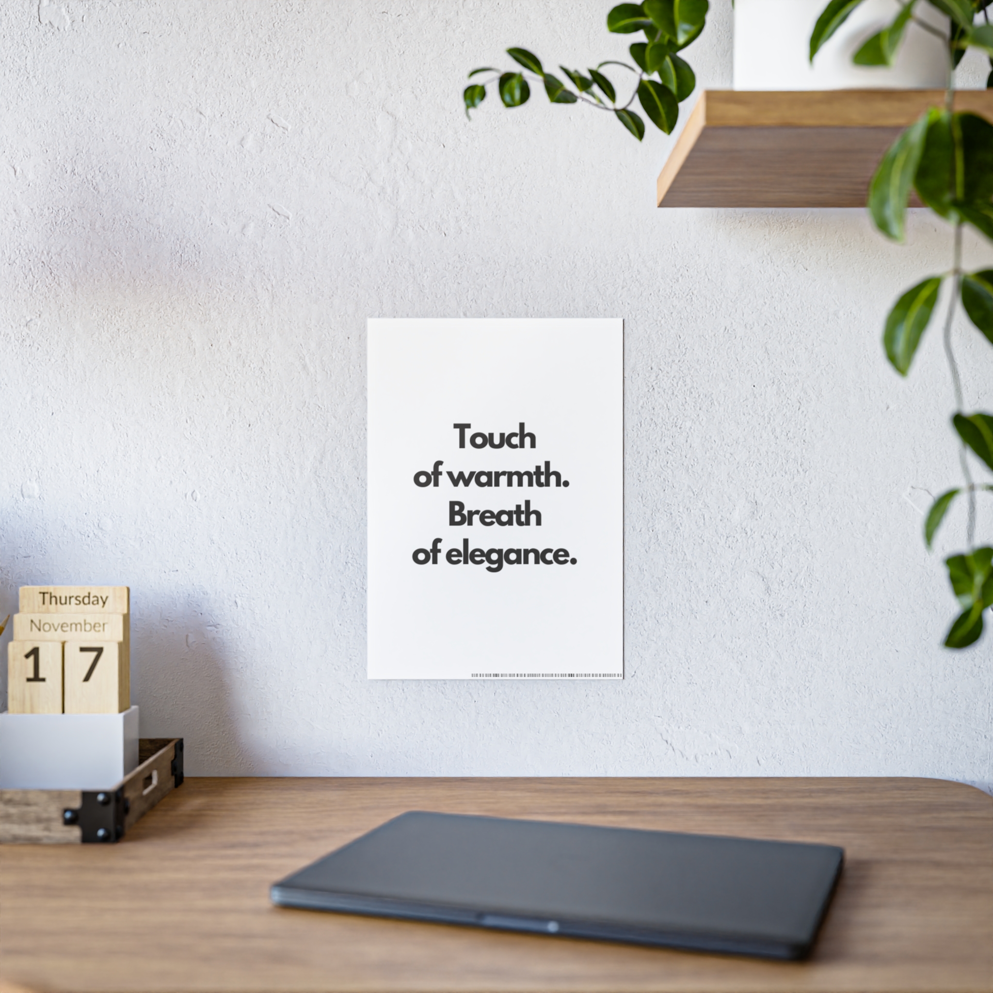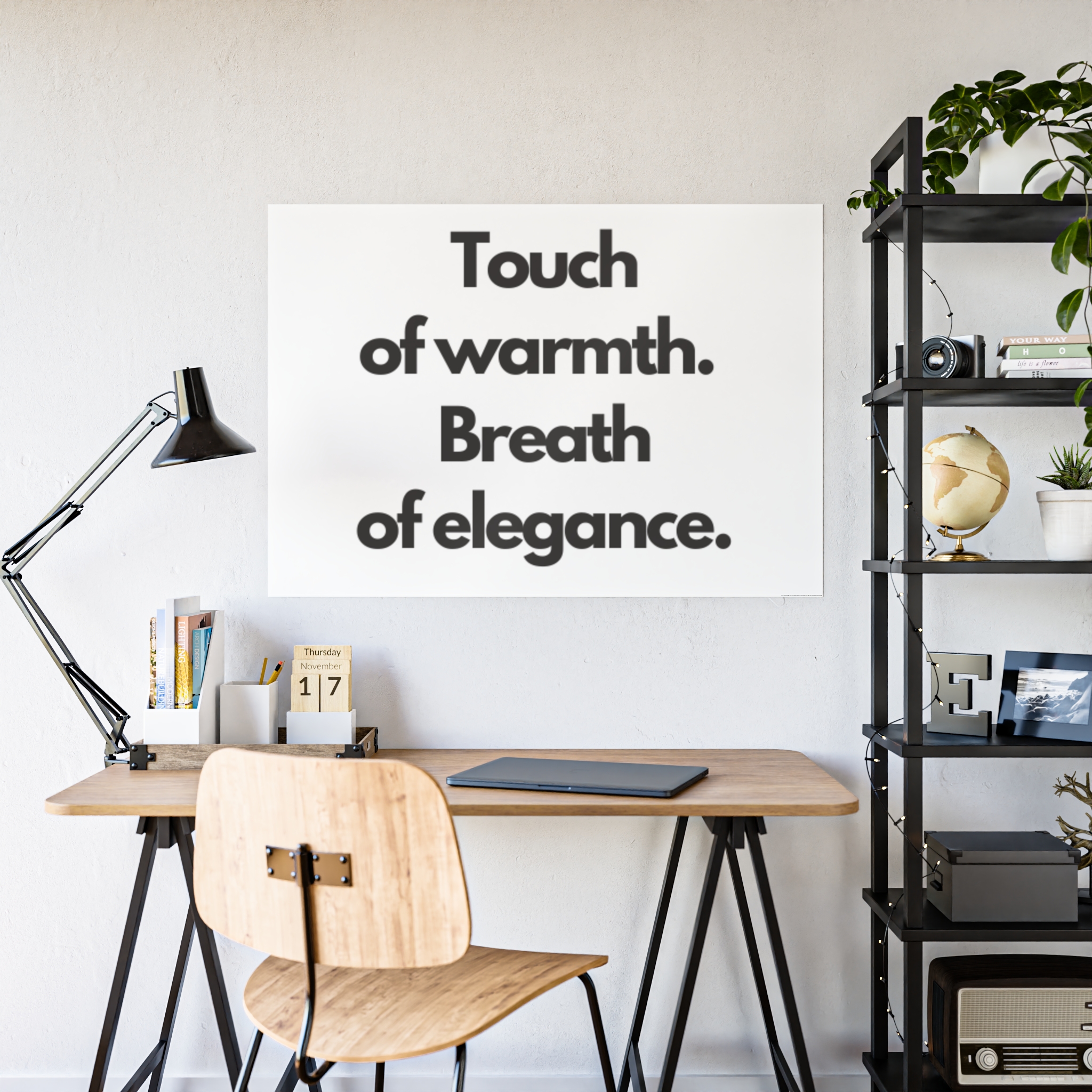 Bright, glossy posters that speak plainly and elegantly. These prints bring bold, high-contrast typography into any space — a calm declaration on a crisp white field. They settle into minimalist interiors, work desks, and quiet reading nooks, giving a room a thoughtful, modern voice. Hung above a home office, leaning on a shelf, or framed in a hallway, the poster reads like a quiet reminder: clarity, warmth, and style.