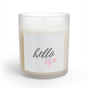 Light a quiet moment with this simple, elegant glass candle. Hand-poured from 100% non-toxic soy wax and finished with a clean cotton wick, it fills a room slowly and softly — no harsh chemicals, no cloying sweetness. The clear or frosted glass vessel carries a minimalist label with a gentle handwritten “hello” and tiny floral accents, bringing a calm, welcoming touch to an entry table, bedside, or home office. Choose from five curated scents or go unscented; every jar burns long (around 55–70 hours) and can be washed and reused as a small planter, pencil cup, or accent vase once the wax is gone. Assembled in the USA to ASTM fire-safety standards, this candle makes everyday moments feel a little softer and more considered.