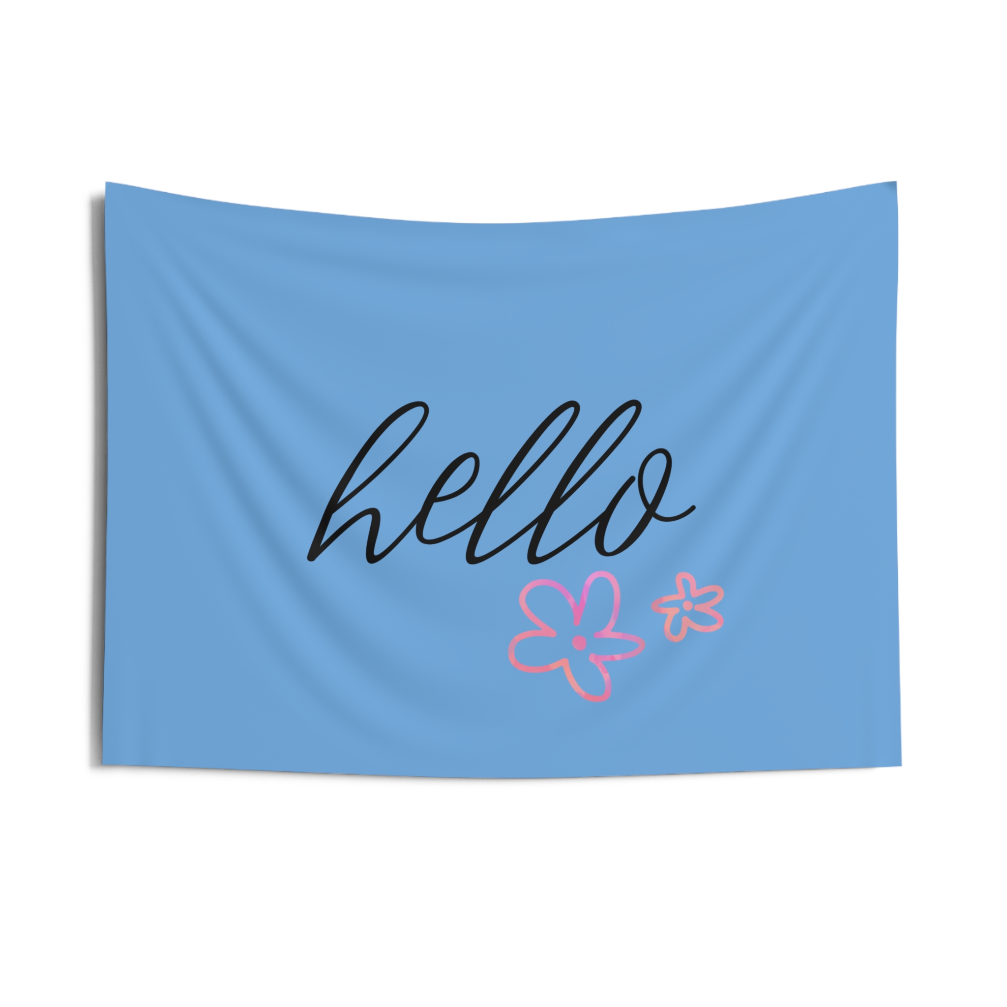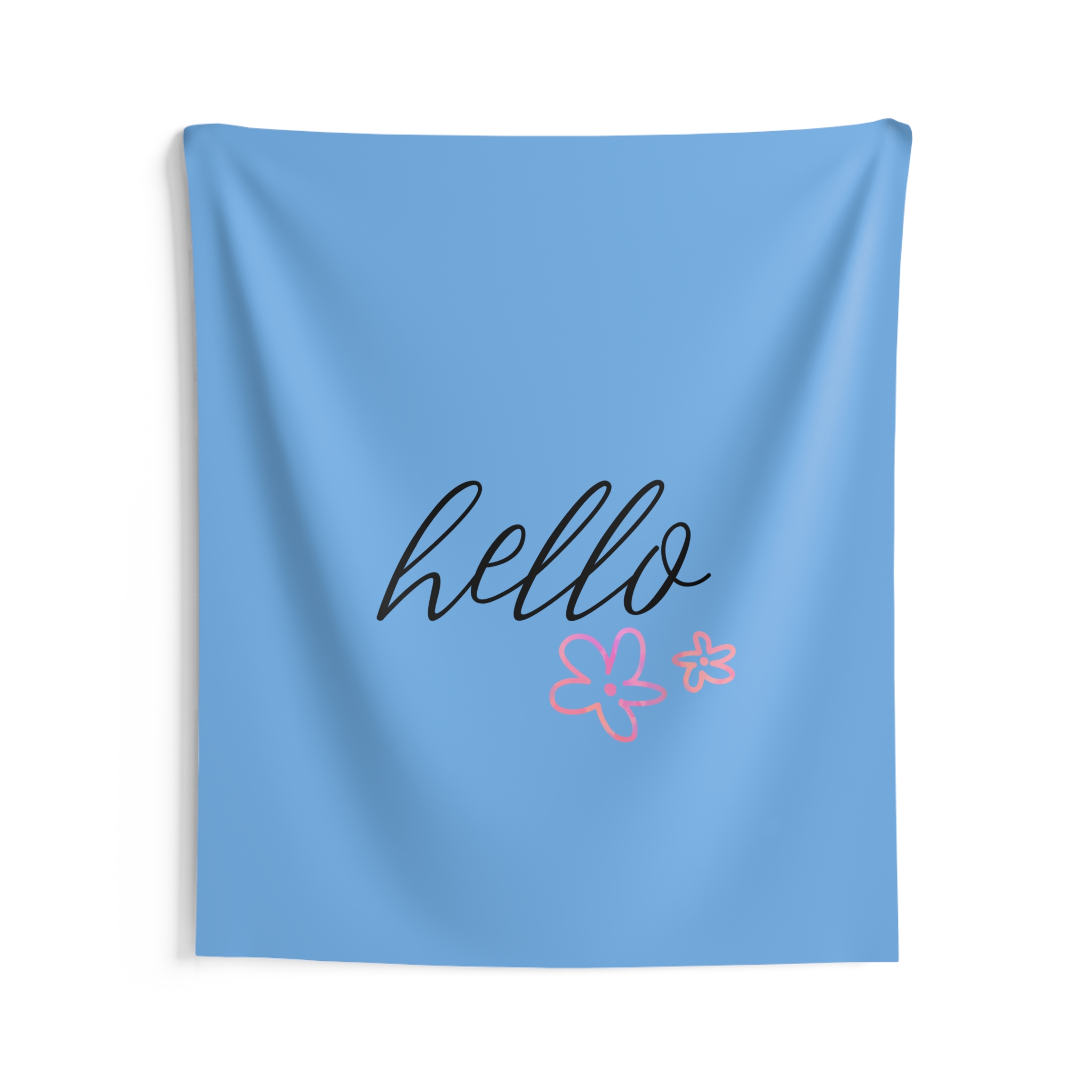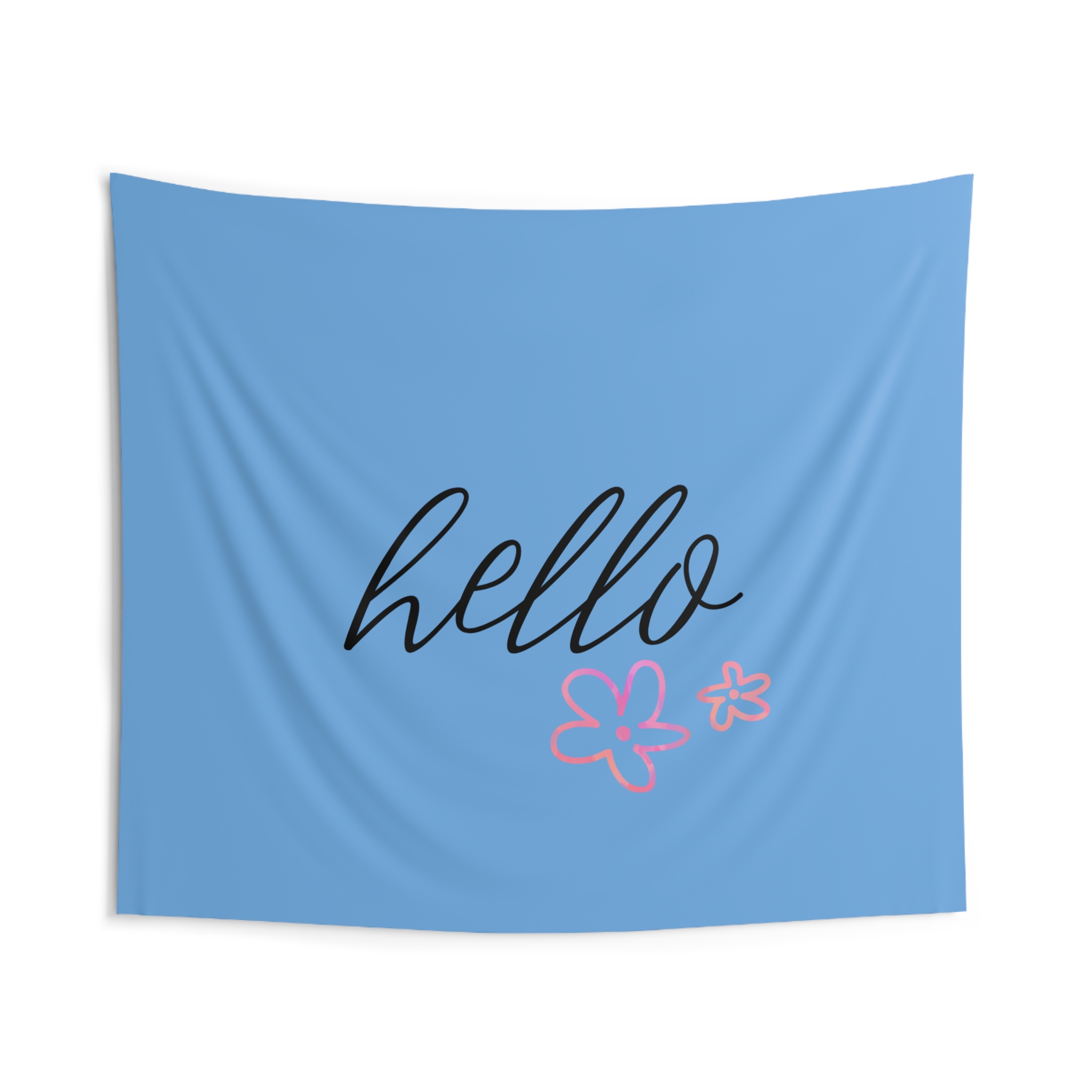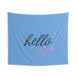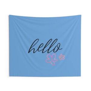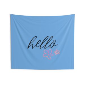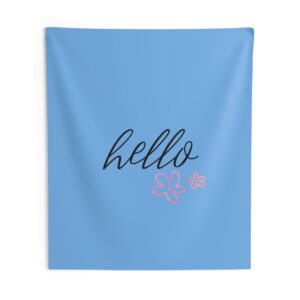 A soft, breezy wall tapestry that greets your space with casual warmth. The sky-blue field and handwritten “hello” float like a friendly note, while two simple pink blossoms add a playful, handmade touch. Lightweight polyester hangs smoothly, keeps its shape, and brings a gentle splash of color to bedrooms, home offices, dorm rooms, or shared living areas. Draped above a bed or pinned over a desk, it reads like a small, steady reminder to slow down and smile.