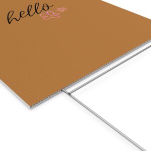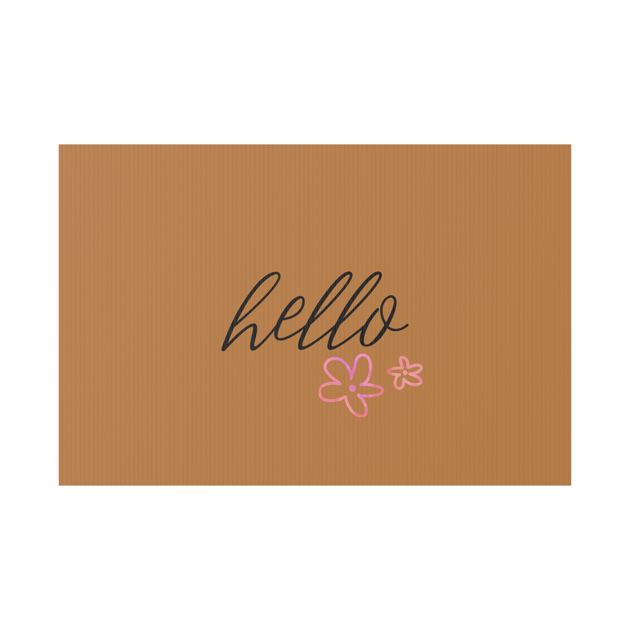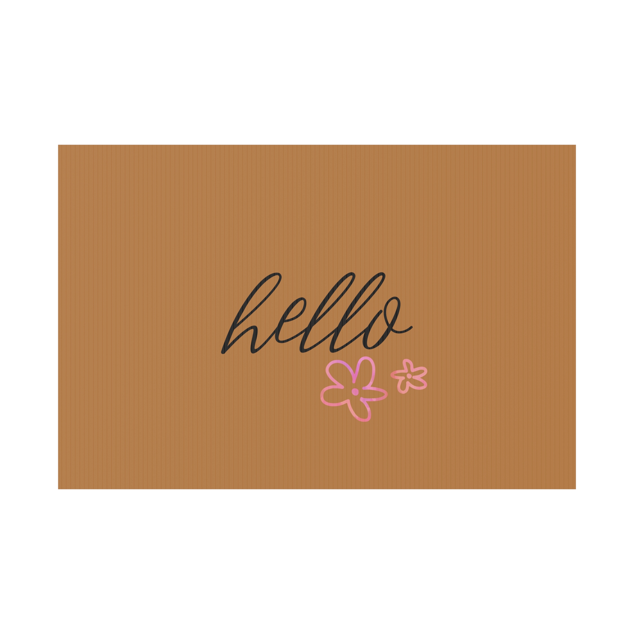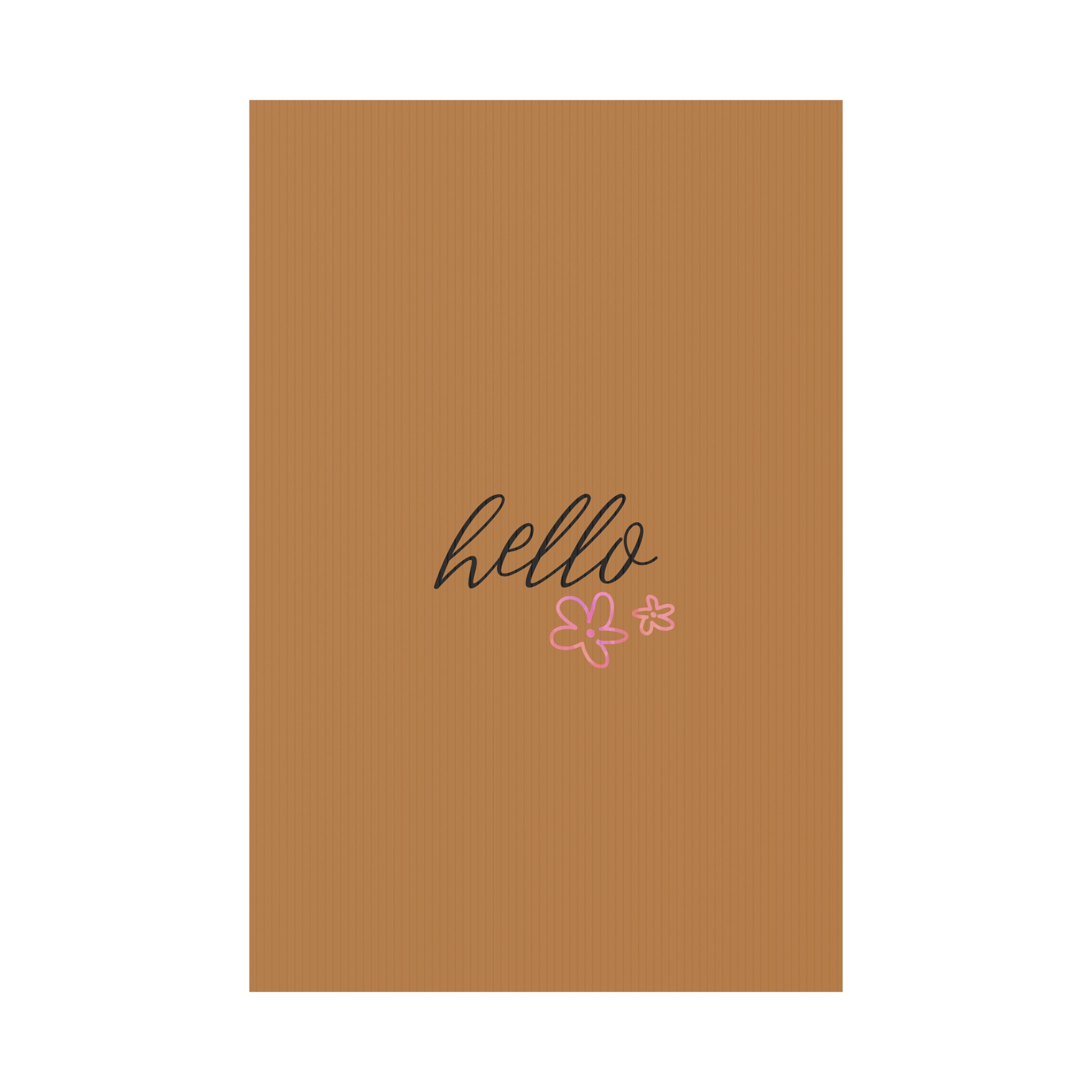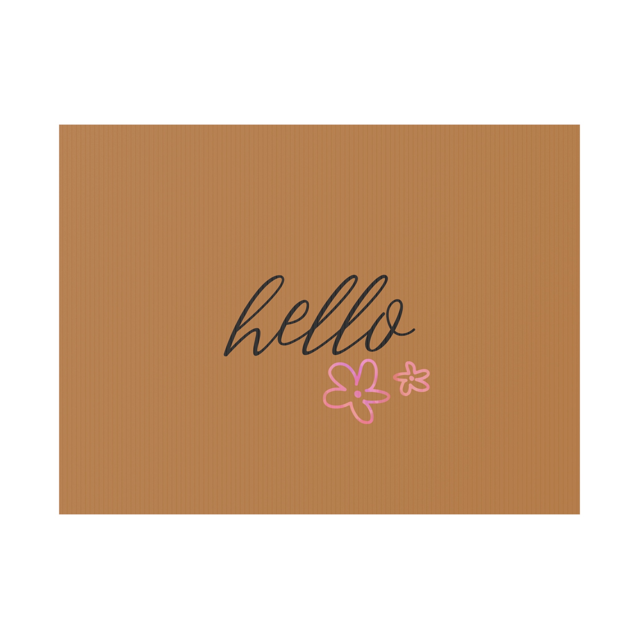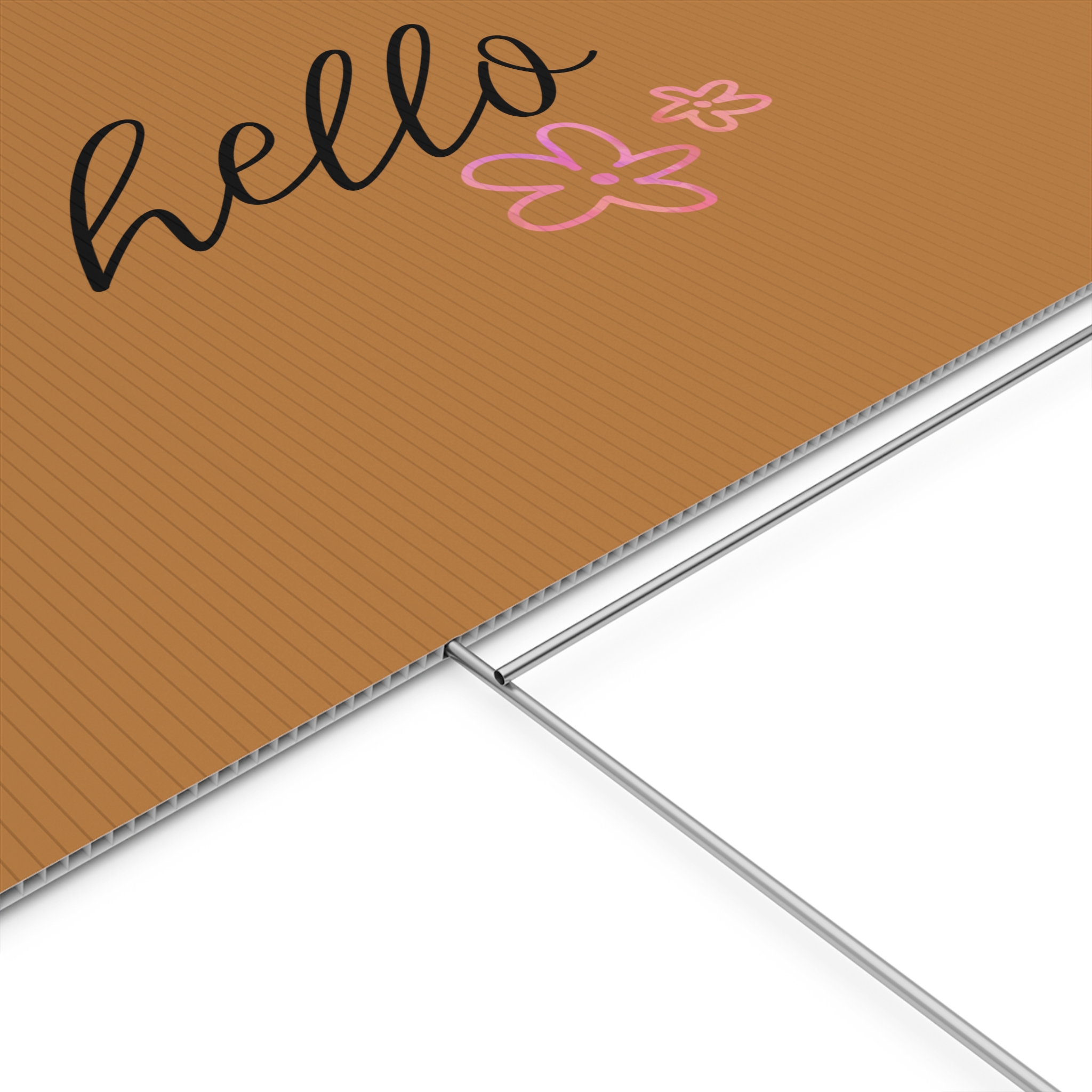 A warm, welcoming yard sign that brings a gentle, handmade touch to your front lawn. The matte, earthy background sets off a casual hand-lettered “hello” paired with two simple pink blooms — a soft hello to neighbors, visitors, and passersby. Weather-ready and printed on both sides, this low-key design reads clearly from either direction and settles into gardens, porches, or pathway beds without shouting. It feels friendly and calm, like waving from a sunlit porch on a slow morning.
